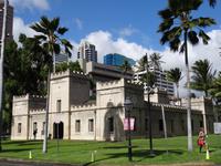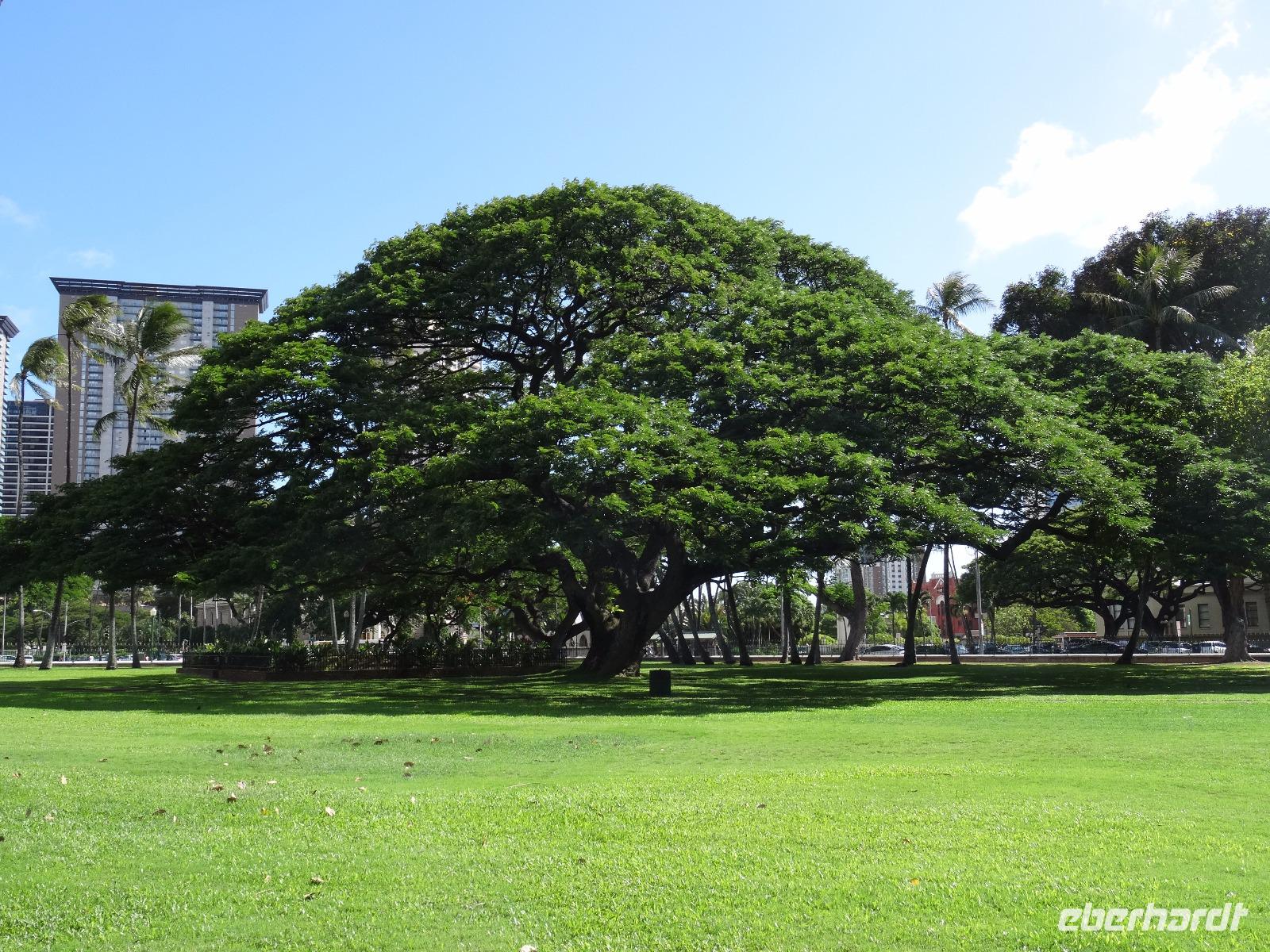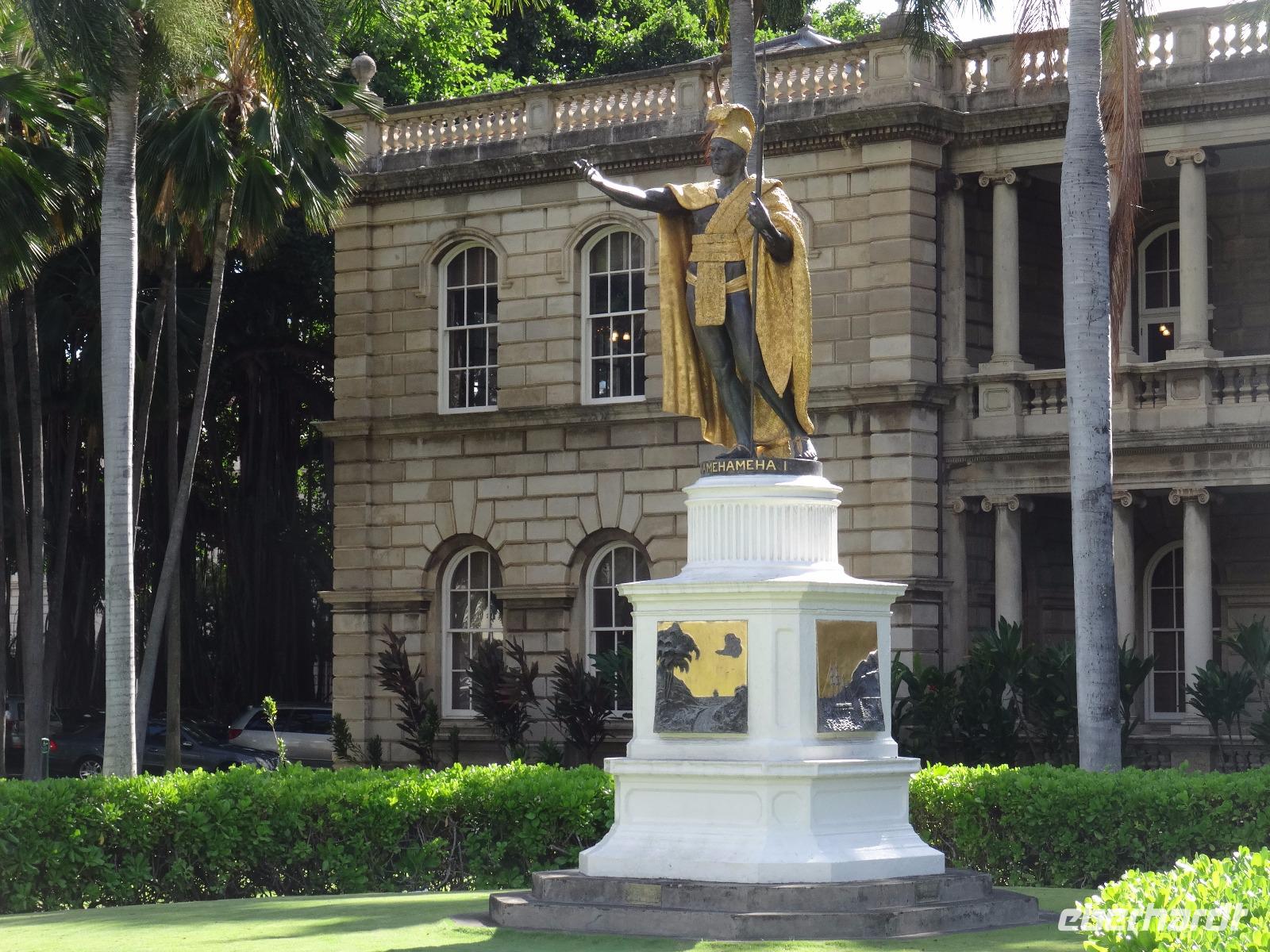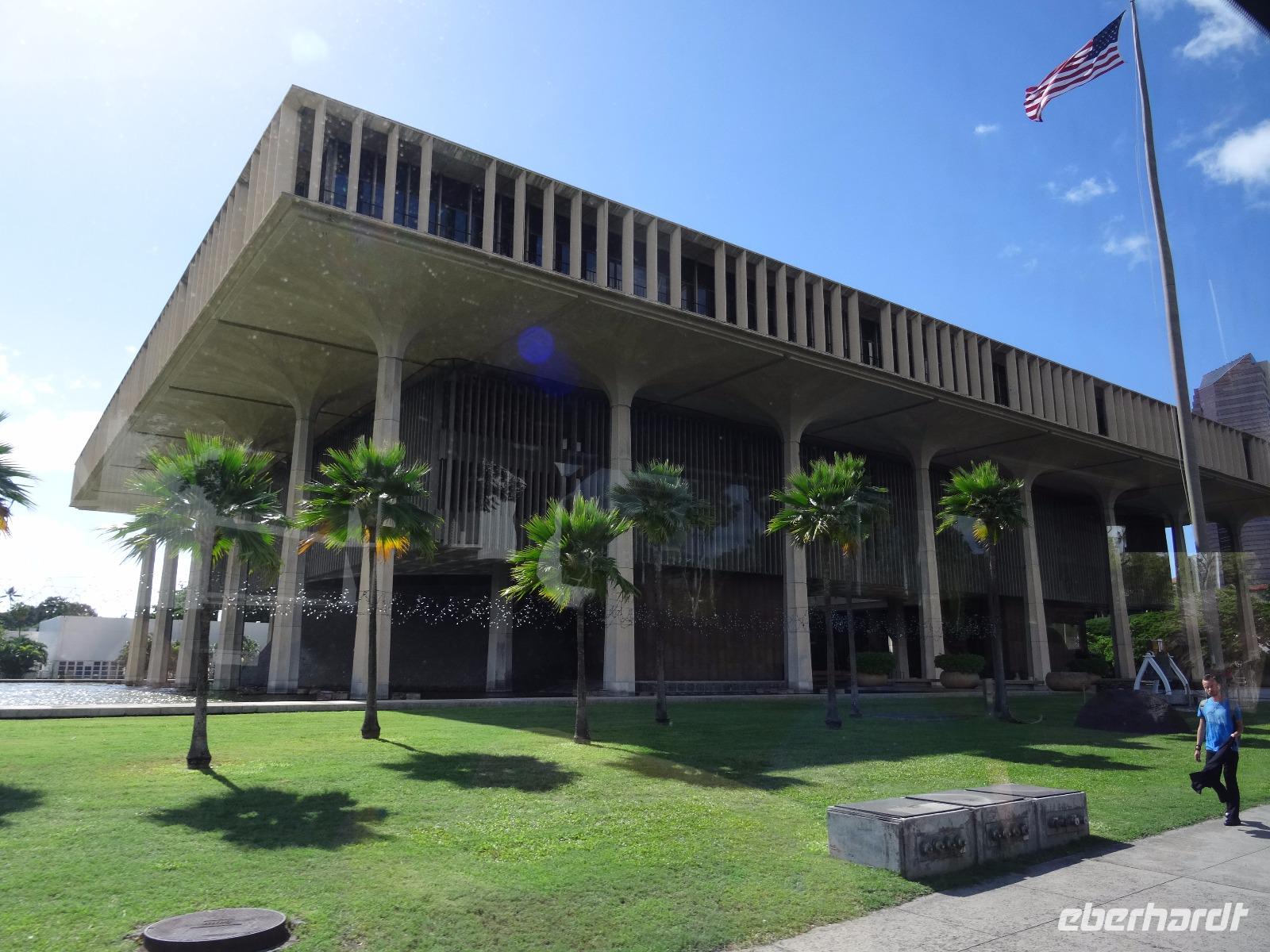 Mit dem Geschichtsunterricht ging es am Nachmittag weiter. Brigitte zeigte uns ein kleines Stück des alten Honululus- wobei alt nur ca. 100 Jahre bedeutet - mit dem Parlament, dem Iolani Palast -der ehemaligen Residenz der hawaiianischen Könige- sowie dem Denkmal König Kamehameha I. Vorbei an der ältesten Kirche Hawaii's, die aus Korallenblöcken erbaut wurde, fuhren wir nun zum Aussichtspunkt am Diamond Head. Hier bekamen wir einen malerischen Blick auf den Pazifik geschenkt.