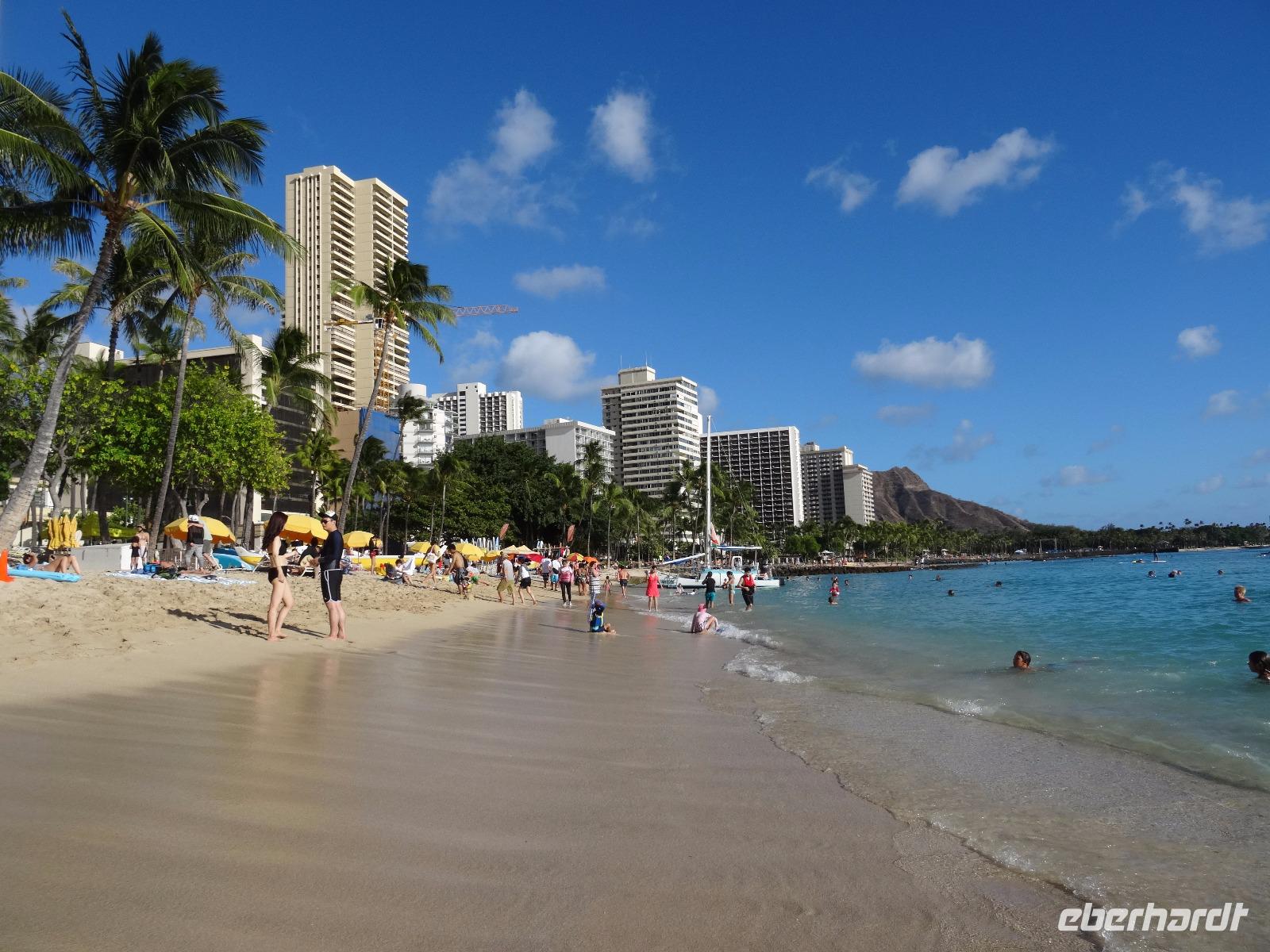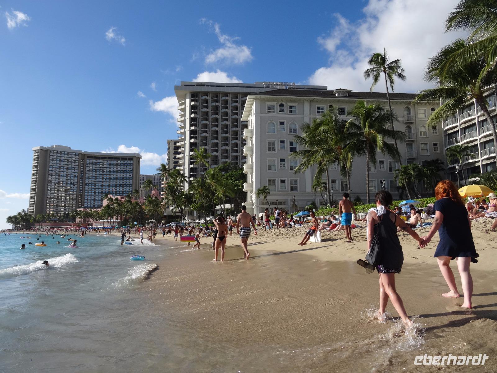 Mit dem Bus ging es dann sofort zu unserem Hotel im weltbekannten Stadtteil Waikiki. Es befand sich an einer Strandpromenade und dahinter war der bekannte traumhafte Strand - Waikiki Beach.