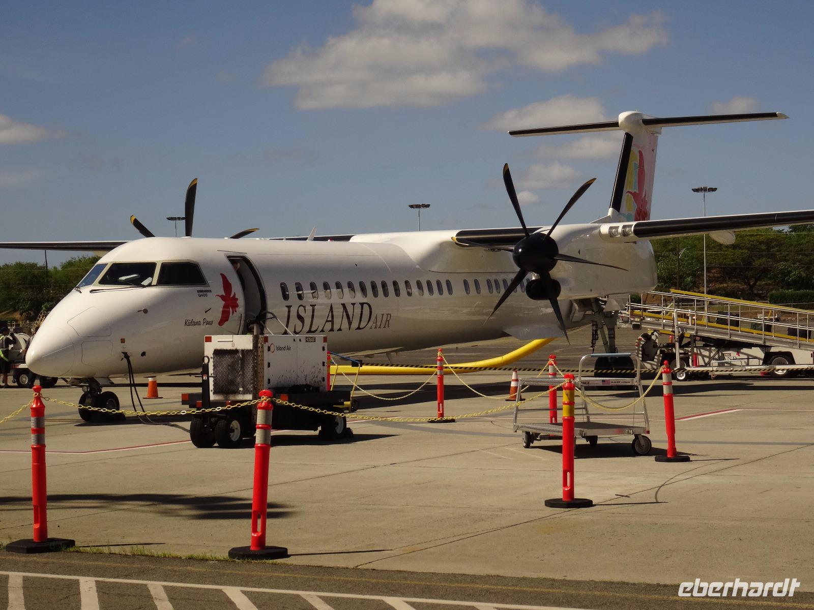 Martina begleitete uns noch zum Flughafen und mit United Airlines starteten wir dann zu den Inseln, die sich weltweit am weitesten entfernt vom Festland befinden.