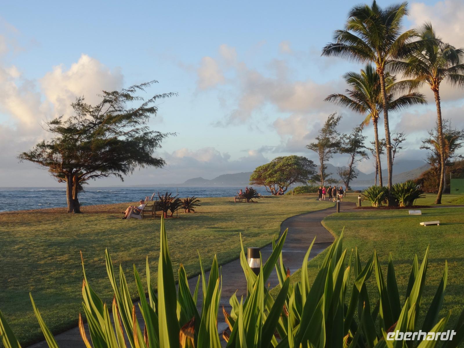 Nicht mal 25 Minuten dauerte der Flug von Honululu nach Lihue, genau so lange wie unser Transfer zum Hotel. Es lag direkt am Meer. Durch die vielen Riffe war es hier zu gefährlich für ein Bad im Pazifik. Deshalb verbrachten wir den Nachmittag entspannt an der einladenden Poollandschaft oder mit einem Spaziergang am Strand oder mit der Erkundung der näheren Umgebung.