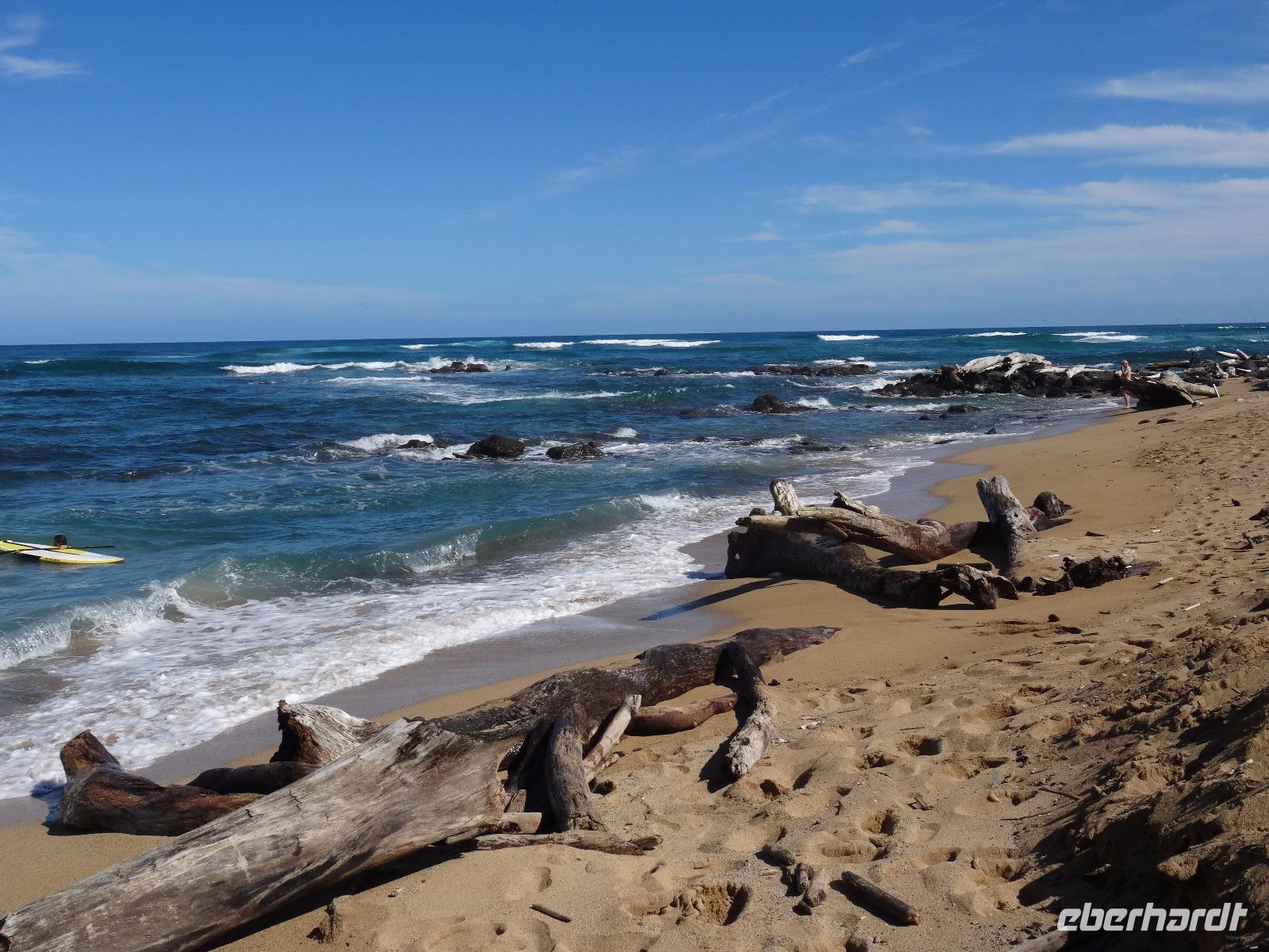Bevor wir einen Tag einmal komplett um die Insel fuhren, nahmen einige Reisegäste noch schnell ihr erstes Bad im Pazifik bei angenehmen 26 Grad.