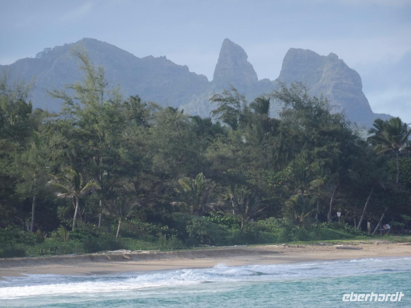 Sandy Beach rechts liegend lassend, verließen wir die trockene Seite der Insel und erreichten die "Regenwald"- Seite.