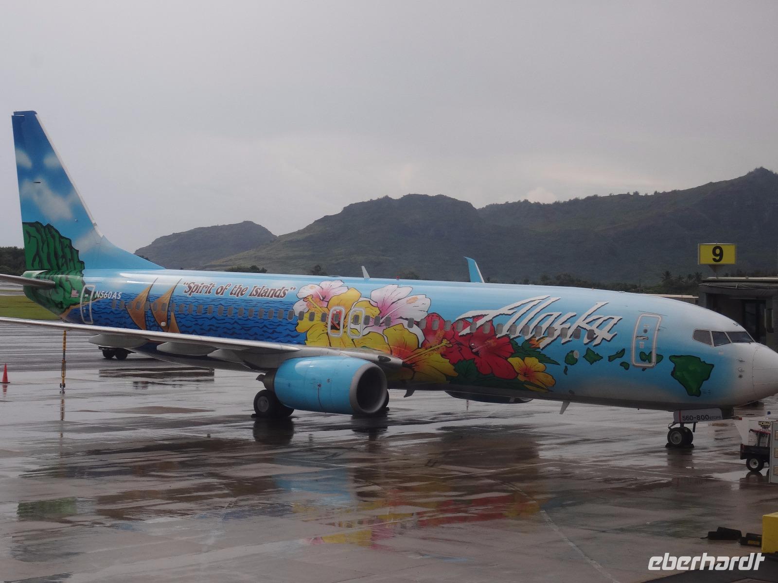 Heute verließen wir Oahu, diese hektische vom Trubel gekennzeichnete Insel und flogen in das dazugehörige Gegenteil - die ruhigste und mit 69.000 Einwohnern am wenigsten besiedelte Insel = Kauai. Kauai wird auch Garteninsel genannt und sie hat auch den Ort, wo es am meisten auf der Welt regnet.