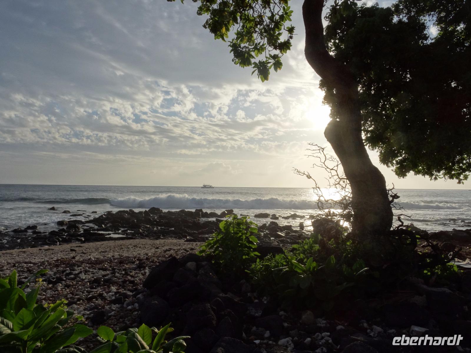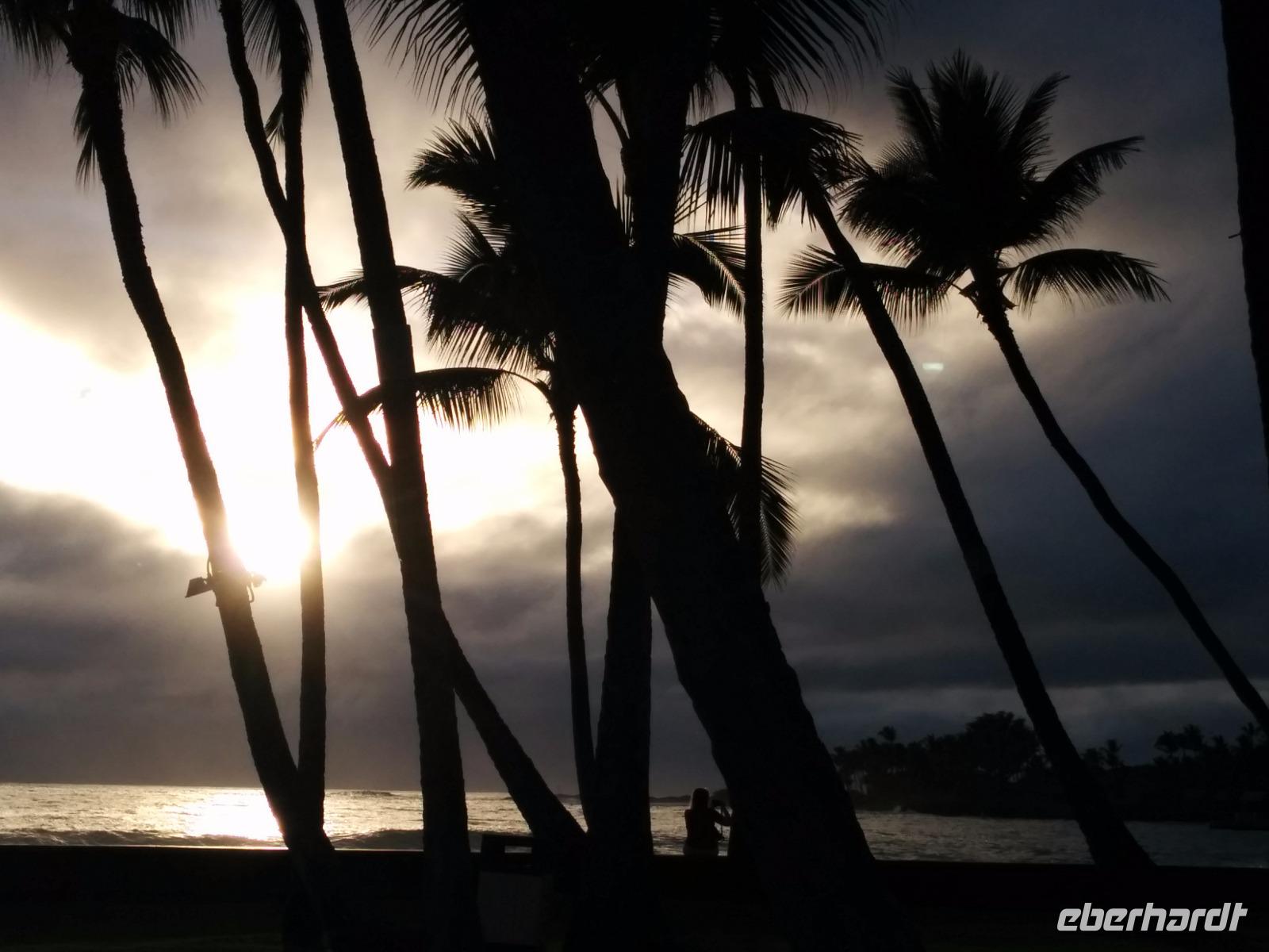 Unser Hotel=das Royal Kona Resort lag direkt an der belebten Küstenpromenade von Kailua - Kona. Sehr viele Geschäfte und Restaurants befinden sich hier. Man kann stundenlang bummeln und immer wieder etwas Neues entdecken oder sich in eines der Strandrestaurants setzen und einen zauberhaften Sonnenuntergang verfolgen. Dazu ließen sich einige Reisegäste unserer Reisegruppe nicht zweimal bitten.
