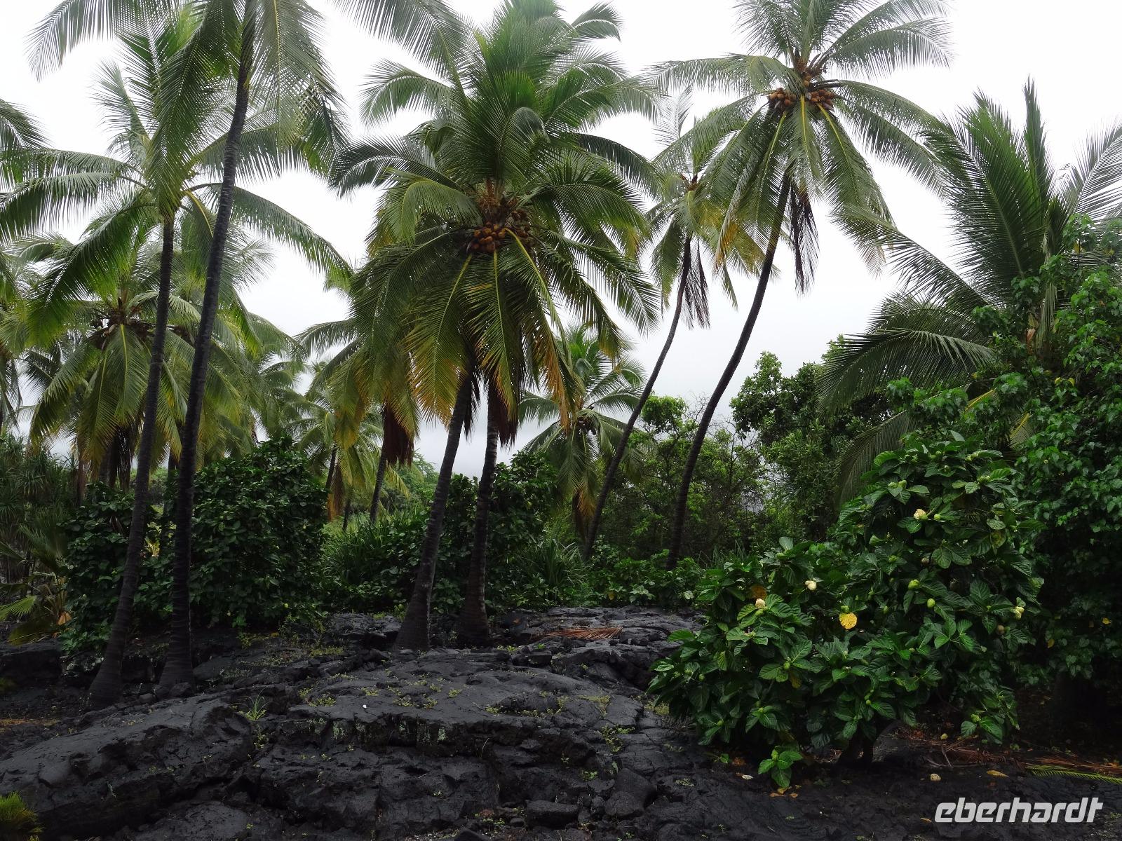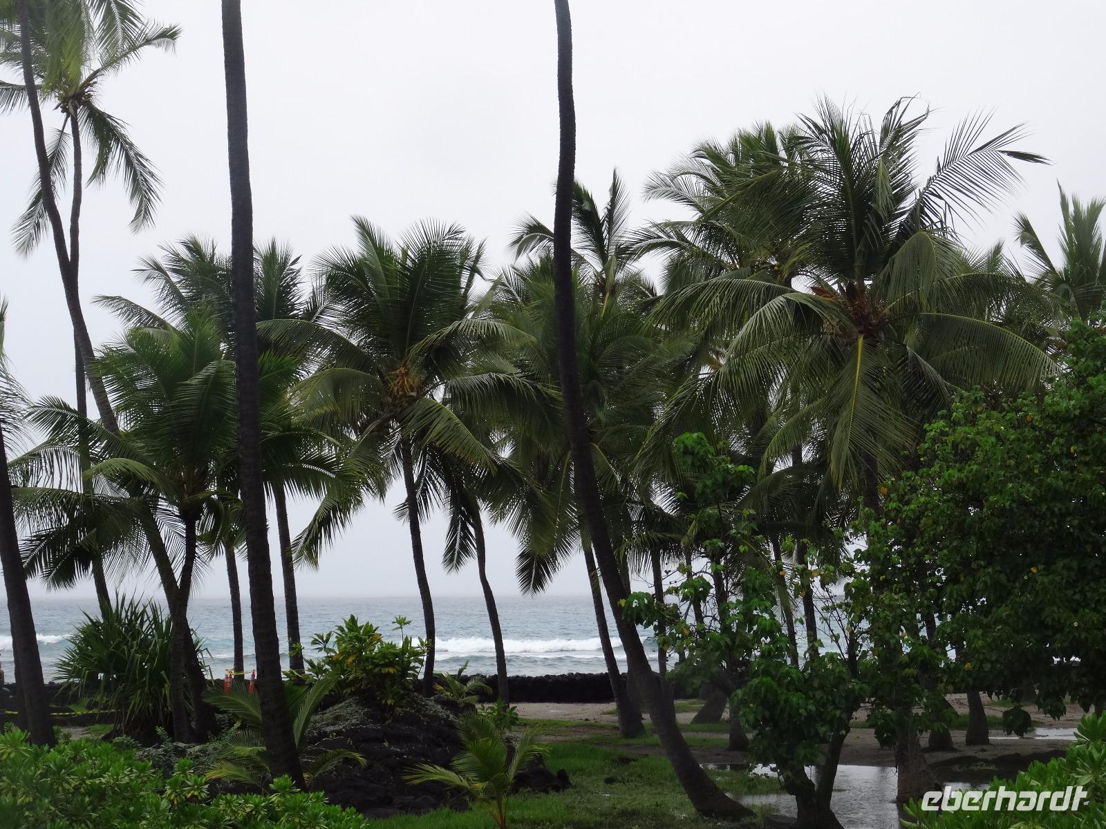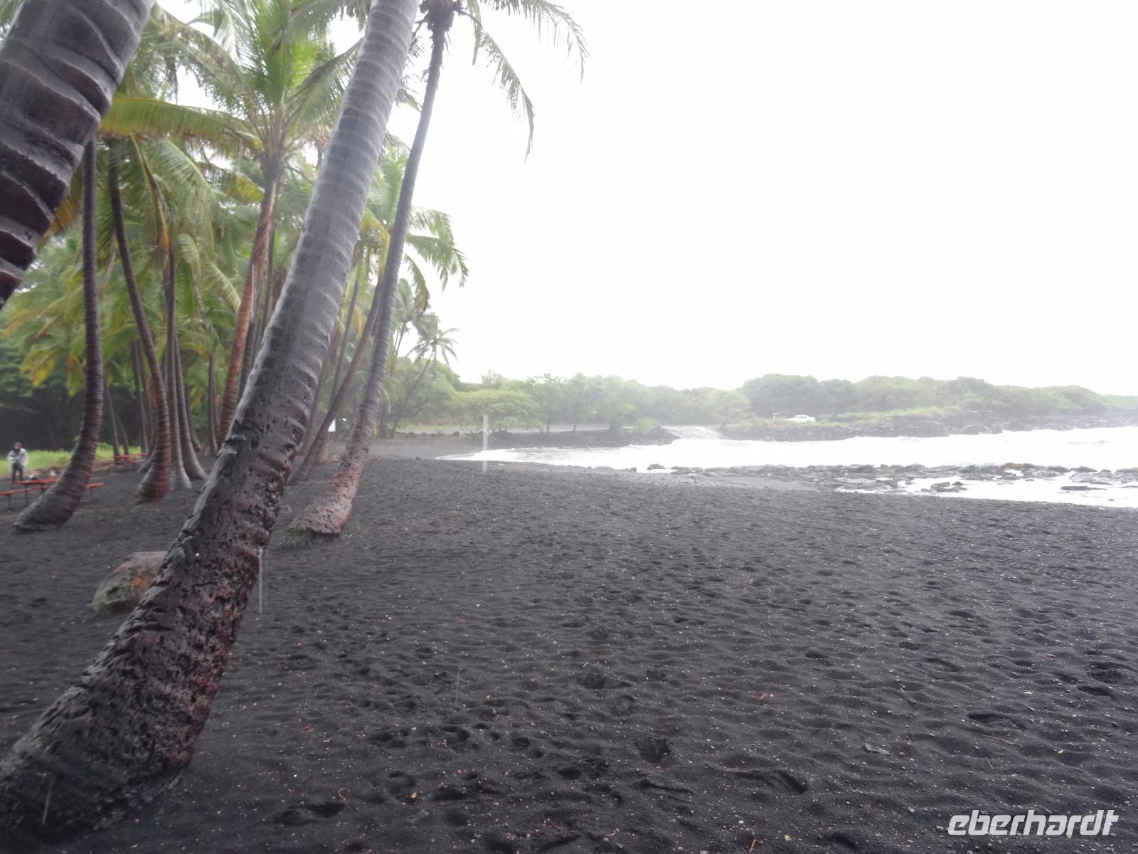 Danach suchten wir am schwarzen Strand bei Punalu'u nach Wasserschildkröten und wurden nur vereinzelt fündig. Denn die meisten zogen es wohl vor, bei diesem Wetter nicht " ihr Haus" zu verlassen. Wir konnten es ihnen nachvollziehen.