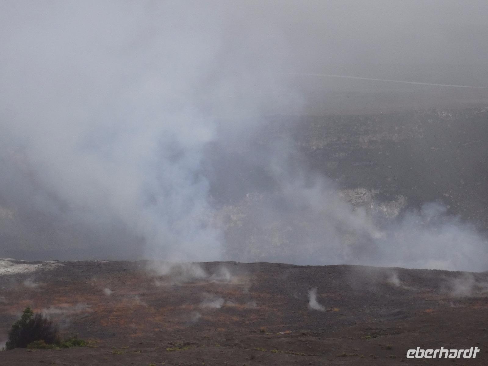 Nun erreichten wir den Volcano Nationalpark und fuhren gleich zum riesigen Krater des noch aktiven Vulkans Kilauea , in welchem sich ein weiterer Krater - der Halemaunau befindet.