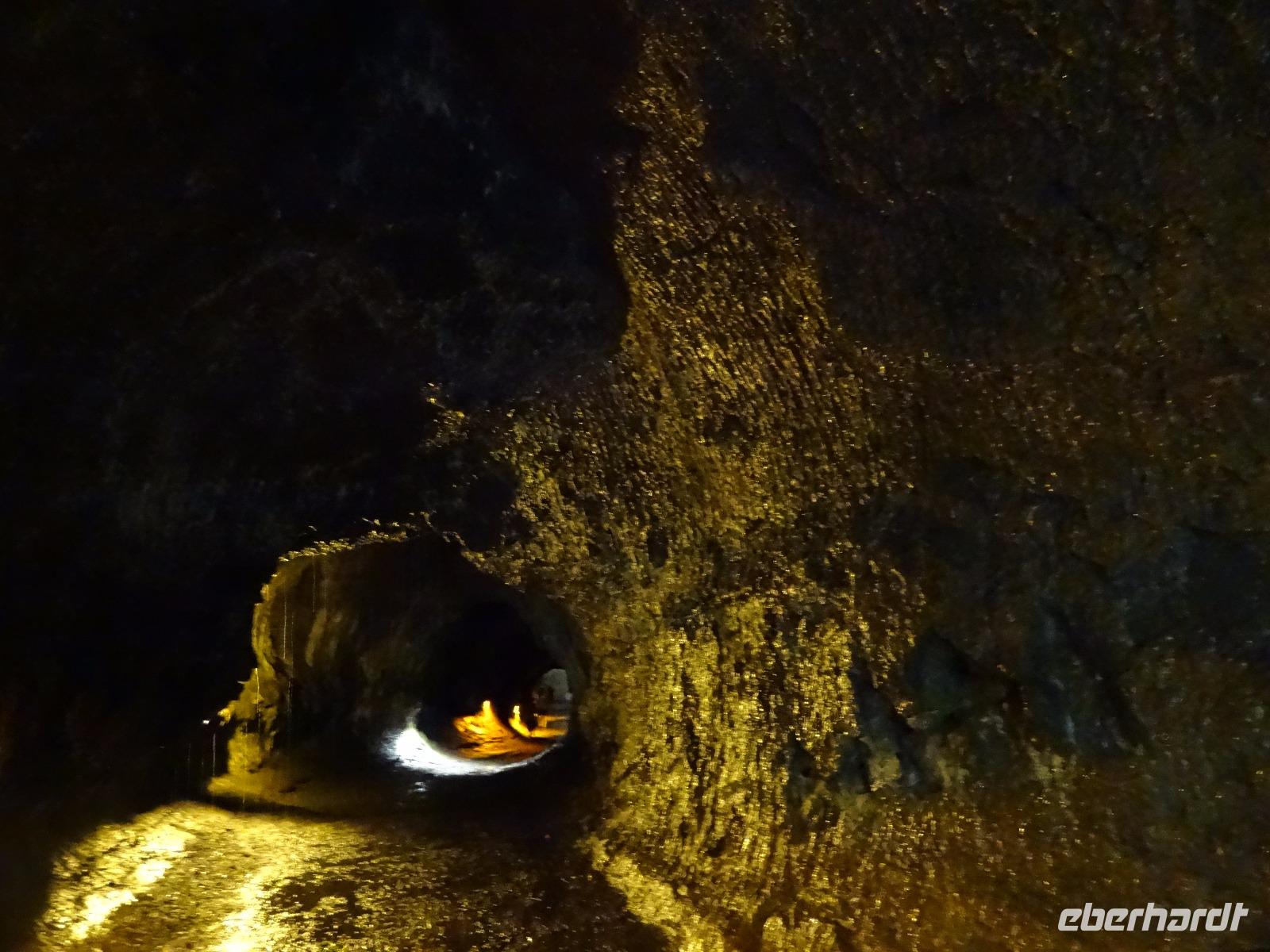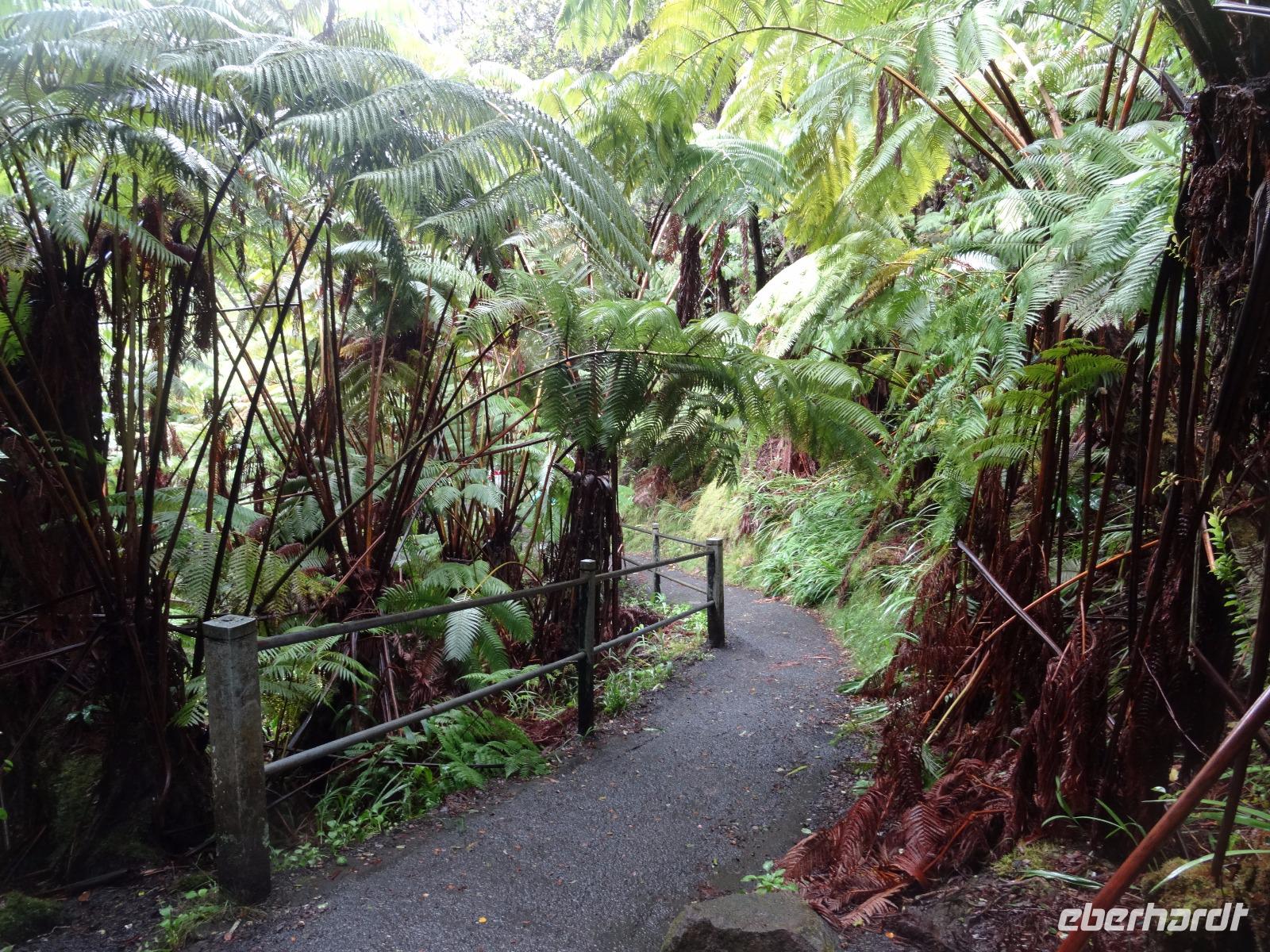 Vorbei an "Steam Bluffs" standen wir anschließend in einem grünen "Zauberwald". Ein gut ausgebauter Rundweg mit überirdisch großen Baumfarnen und Bäumen links und rechts des Weges führte uns zur versteckten "Thurston Lava Tube", welche wir natürlich auch durchliefen.