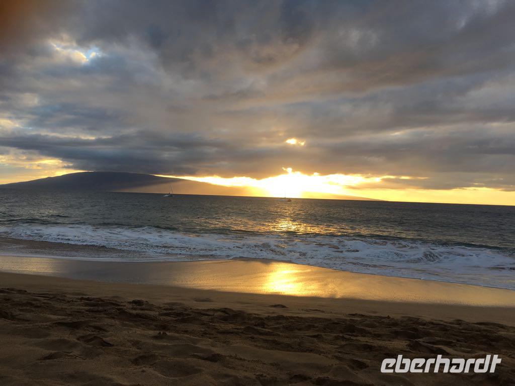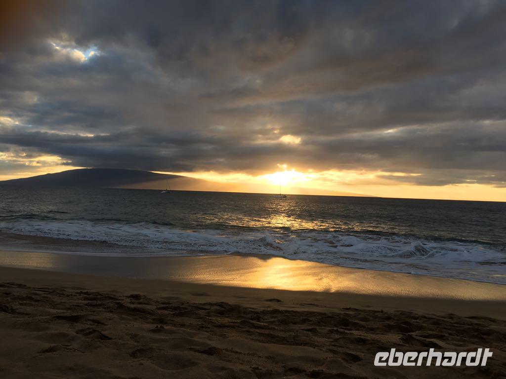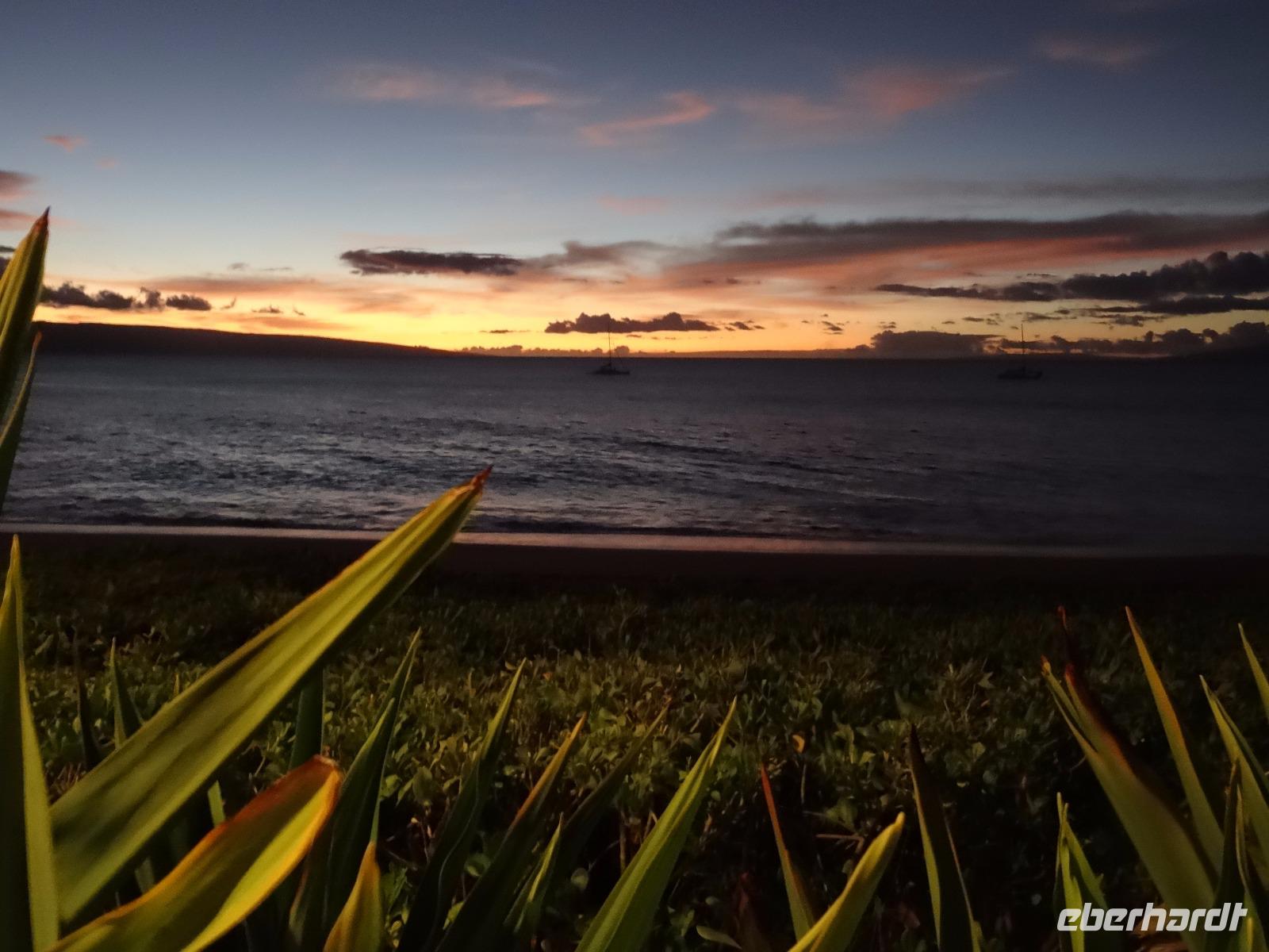 Ganz entspannt klang dann der erste Abend auf Maui mit einem wieder entzückenden -und auch wieder anders einzigartigen- Sonnenuntergang aus.