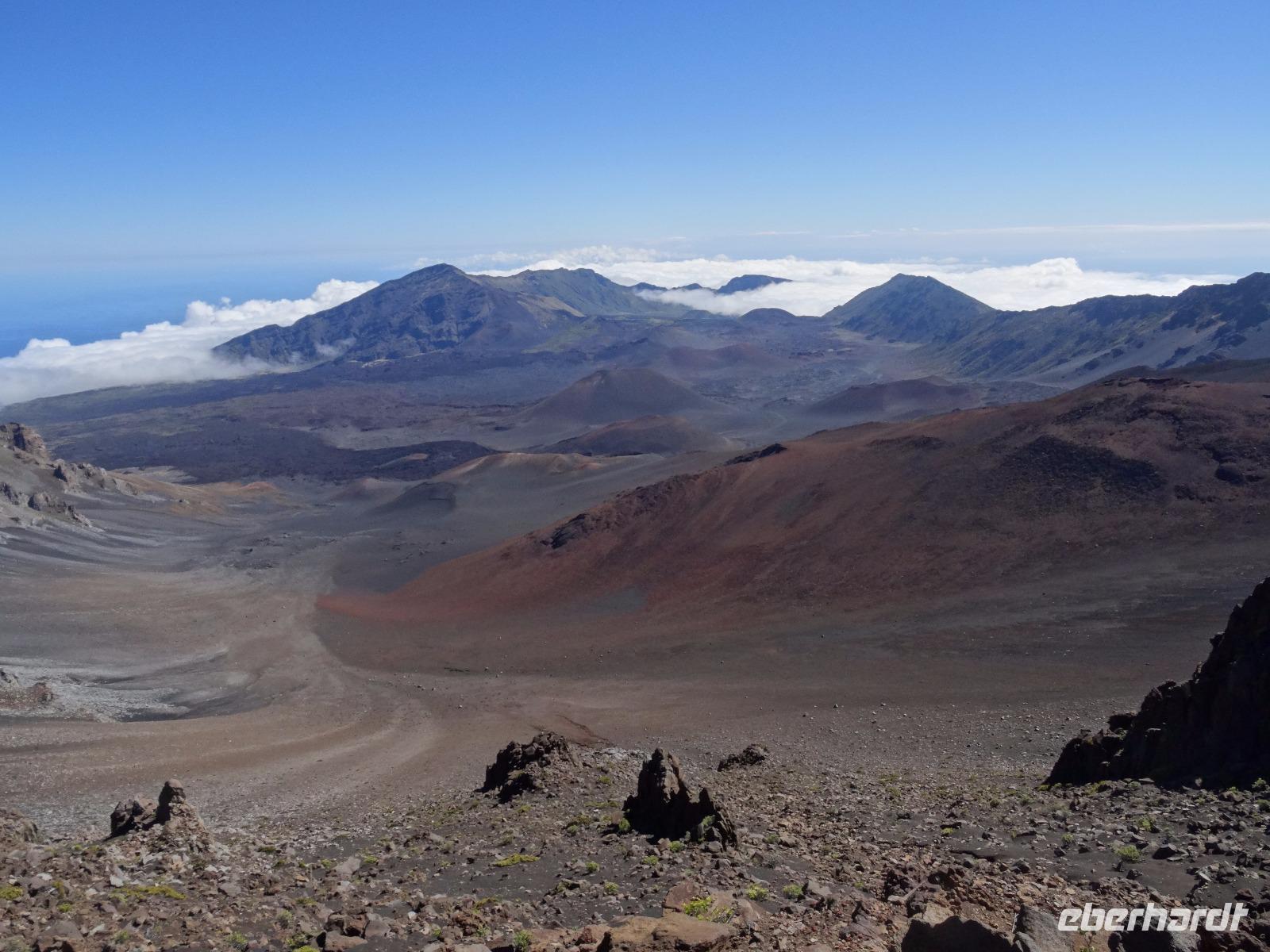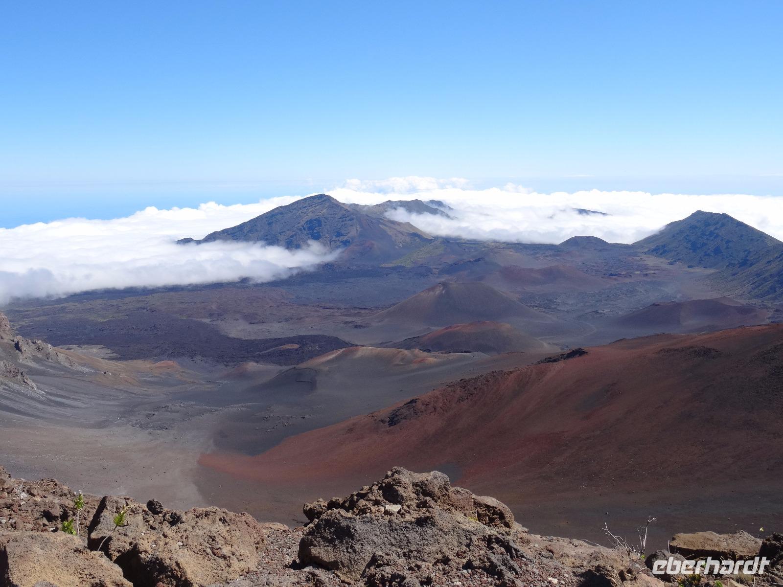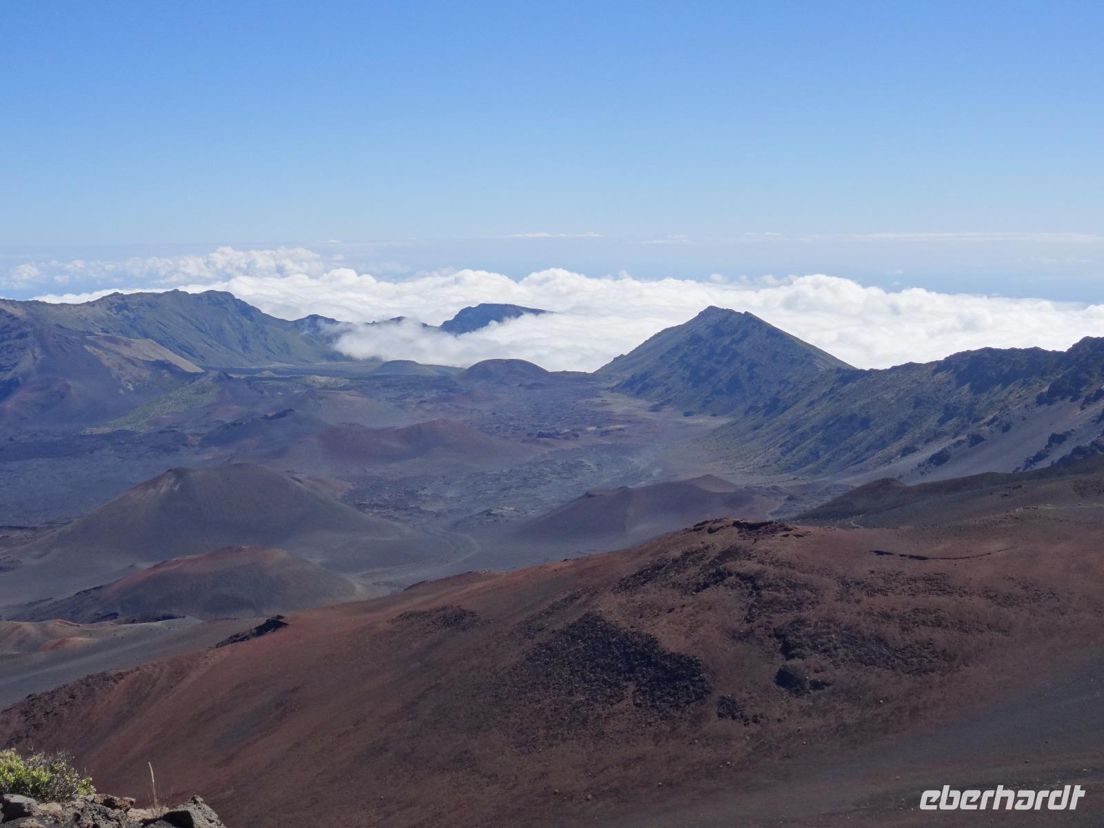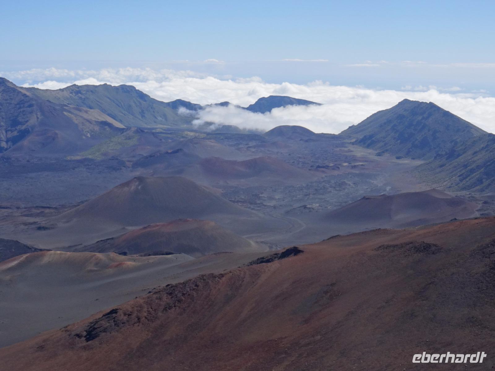 Die Sonne strahlte - beste Voraussetzung, um den weltgrößten schlafenden Vulkankrater Haleakala zu erobern. Er beeindruckt mit einer Tiefe von 915 Metern und umfasst stolze 33 Kilometer. Er ist der höchste Gipfel der Insel Maui mit 3.055 Metern.