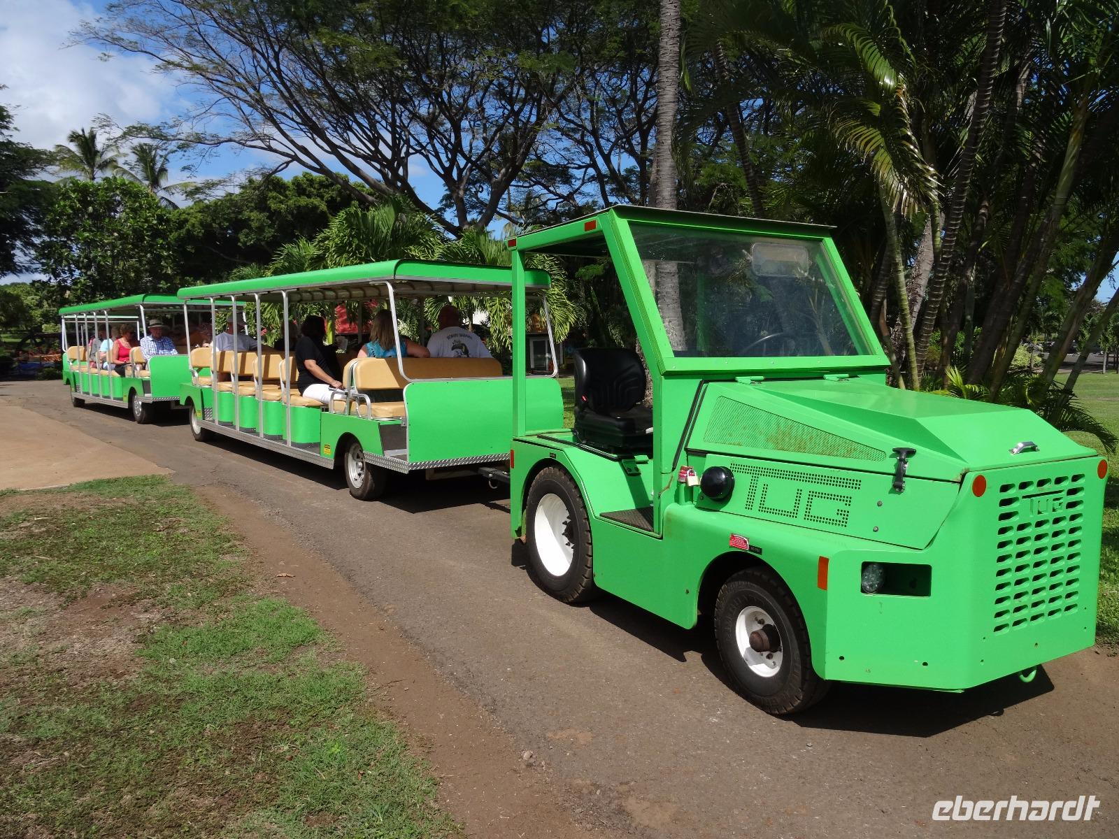 Wir fuhren weiter zu einer tropischen Plantage. Dort ging es mit einer kleinen Bahn durch diese und wie erfuhren, was hier alles angebaut wird - Ananas, Papaya ,Avocado, Jackfruit, Kaffee, Macadamia...