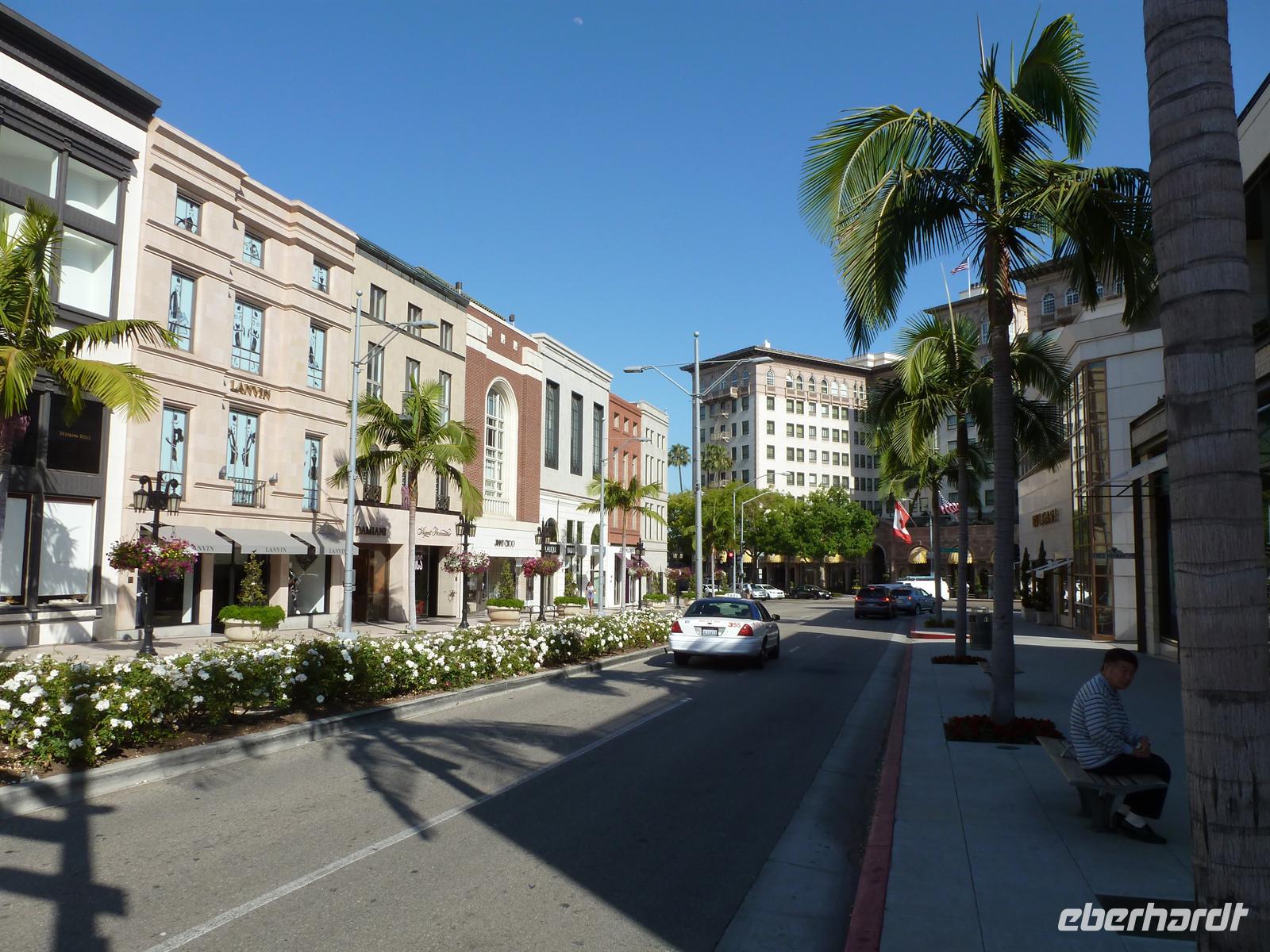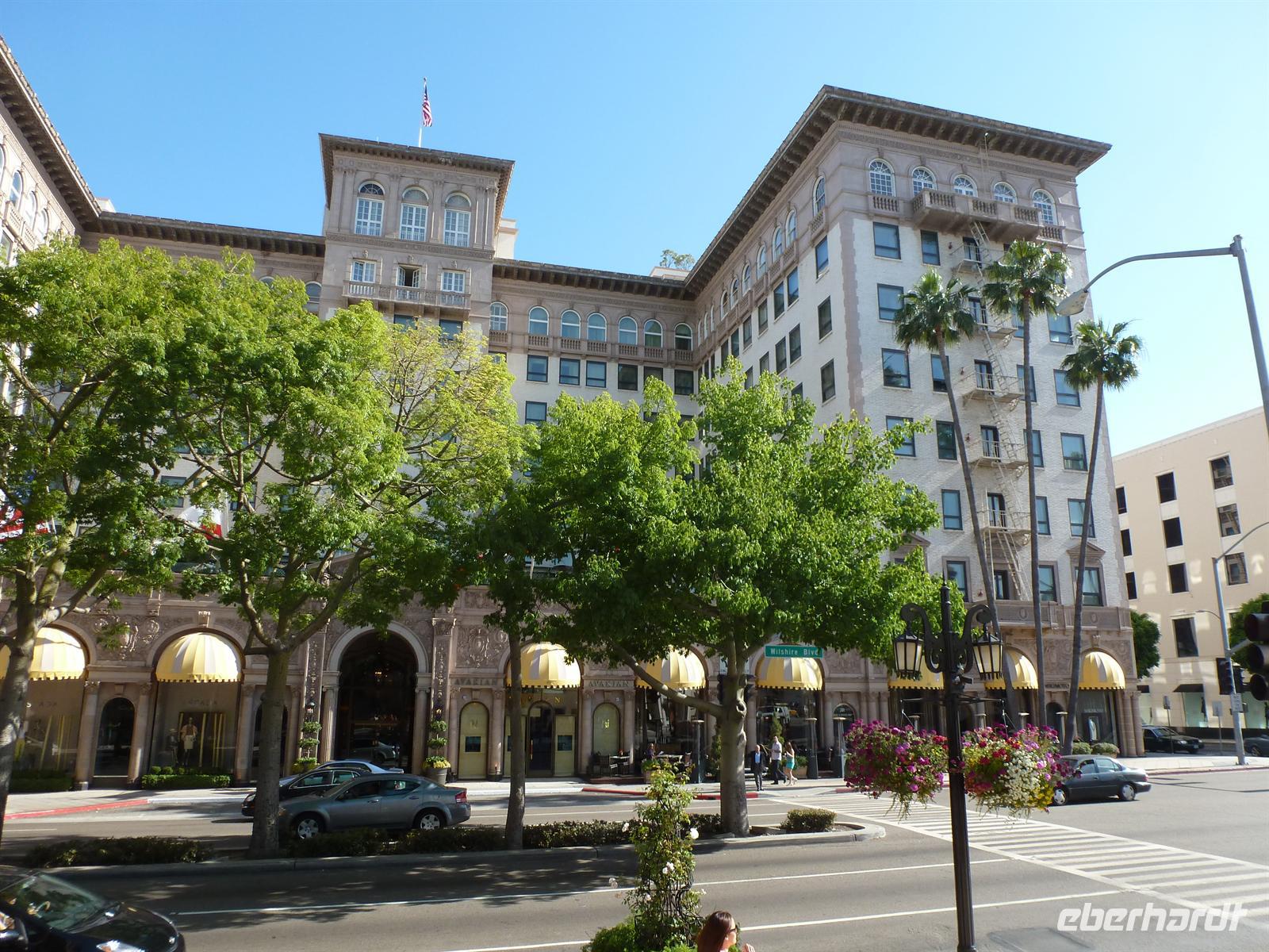 Es ging in die Hollywood Hills, in den Stadtteil Hollywood, Zentrum der amerikanischen Filmindustrie und Pilgerstädte für Millionen Cineasten aus aller Welt. Wir schritten über den berühmten Walk of Fame, besichtigten die Hand- und Fußabdrücke der größten Stars vor dem altehrwürdigen Grauman`s Chinese Theater und fotografierten den weltbekannten Hollywood-Schriftzug hoch oben in den Hügeln. Den Hollywood-Boulevard von Stern zu Stern entlang schreitend, sahen wir in Gedanken die Limousinen der Stars und Sternchen bei der alljährlichen Oscar-Verleihung vorfahren und uns einem Johnny Depp oder einer Meryl Streep die Hand schütteln. Doch leider war das nur Wunschdenken und selbst entdeckt wurden wir von den sicherlich anwesenden Talente-Scouts auch nicht. So setzten wir unsere Fahrt fort, über den Sunset Boulevard durch Beverly Hills zum nicht minder bekannten Rodeo Drive, der Shopping-Meile der Reichen und Schönen. Wir verweilten kurz am Beverly Wilshire, dem Hotel, in dem sich Julia Roberts und Richard Gere im Film „Pretty Woman“ nahe gekommen sind und flanierten anschließend ein kurzes Stück entlang der nicht ausgepreisten Auslagen der Luxusboutiquen. Wie unsere Reiseleiterin Janny sagte: Wenn Du nach dem Preis fragen musst, gehörst du nicht in dieses Geschäft. Hier wird nicht nach dem Preis gekauft, sondern ausschließlich nach Gefallen. Soweit in die Geheimnisse der Society eingeweiht, ging es in den Stadtteil Culver City, wo wir unsere Hotelzimmer bezogen. Nach kurzer Verschnaufpause begaben wir uns nach Downtown L.A., dem modernen Zentrum der Stadt. Wir fuhren mit dem gläsernen Lift in den 35. Stock des Hotels Westin Bonaventure, wo sich ein Drehrestaurant befindet und wir einen fantastischen Blick auf die Stadt genießen konnten. Am Staples-Center vorbei ging es zum Abendessen in das historische Hotel Figueroa, wo wir in marokkanischem Ambiente und angenehmer Atmosphäre ein saftiges Steak New York gegessen und dabei ein, zwei Gläschen kalifornischen Wein genossen haben. An Körper und Geist gestärkt ging es zu einer kleinen Lichterfahrt durch das nächtliche L.A., mit Stopps am höchsten Gebäude der Stadt sowie am Opern- und Theaterplatz mit seinen schönen Wasserspielen und der Disney Music Hall um die Ecke. An diesem Tag gingen wir sehr spät zu Bett, den Kopf voller neuer Eindrücke, Bilder und Erlebnisse.
