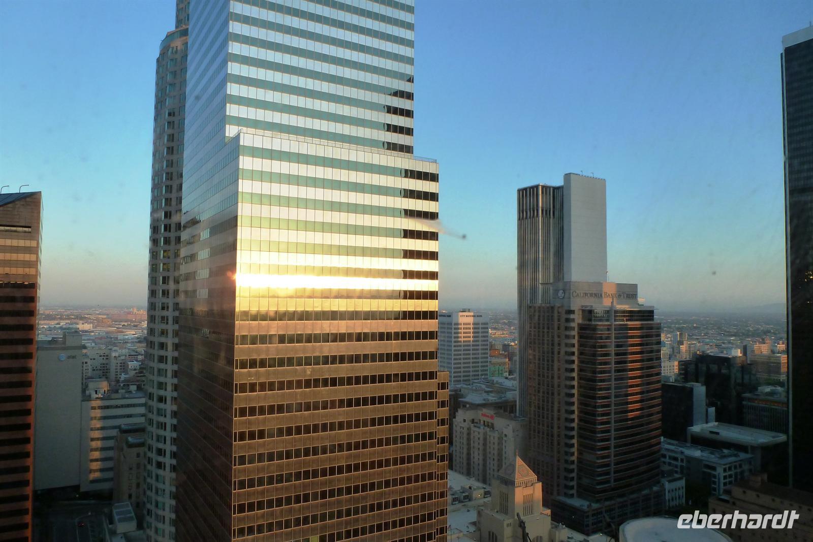 Und weiter ging unser Treck gen Westen. Wir verließen das Spielerparadies über den Las Vegas Boulevard und fuhren durch die Mojave Wüste nach Galico zur Ghost Town. In diesem kleinen Wüstenstädtchen kann man in der Zeit über einhundert Jahre zurück gehen und das Leben der einstigen Siedler in den historischen Häuschen, Saloons und Stores entlang der Mainstreet nachvollziehen. Stilecht liefert sich der örtliche Sheriff zu jeder vollen Stunde eine wilde Schießerei mit dem ansässigen Outlaw. Dem geschätzt zwölfmaligen Tod im Laufe eines Tages folgt deshalb gleichzeitig die umso notwendigere Wiederauferstehung. Wie im Märchen, respektive .Wilden Westen. Solcherart mit den Gepflogenheiten der ehemals ansässigen „Wüstenratten“, wie sie sich heute noch nennen, vertraut gemacht, ging es weiter durch die Wüste Richtung Los Angeles. Dabei durchquerten wir die San Bernardino Mountain, die es den Wintersportlern unter den 17 Millionen „Engeln“ an sechs Monaten im Jahr gestattet, Ski oder Snowboard zu fahren. Das Stadtgebiet von Los Angeles erstreckt sich auf 1200 km², entsprechend lange brauchten wir auf den dicht befahrenen Stadtautobahnen, um ins alte Zentrum zu gelangen und unsere Stadtrundfahrt zu beginnen. Wir sahen das Civic Center und stoppten an der Olvera Street, wo die ehemals mexikanische Grundsteinlegung stattfand und die Stadt ihr rasantes Wachstum aufnahm. Wer Lust hatte, ist zur historischen Union Station, dem alten Bahnhof in Los Angeles, gelaufen. Doch für viele kam der eigentliche Höhepunkt der Stadtrundfahrt erst im Anschluss.