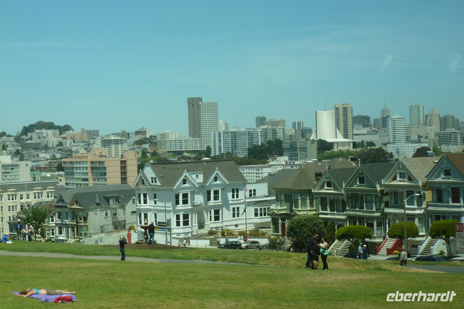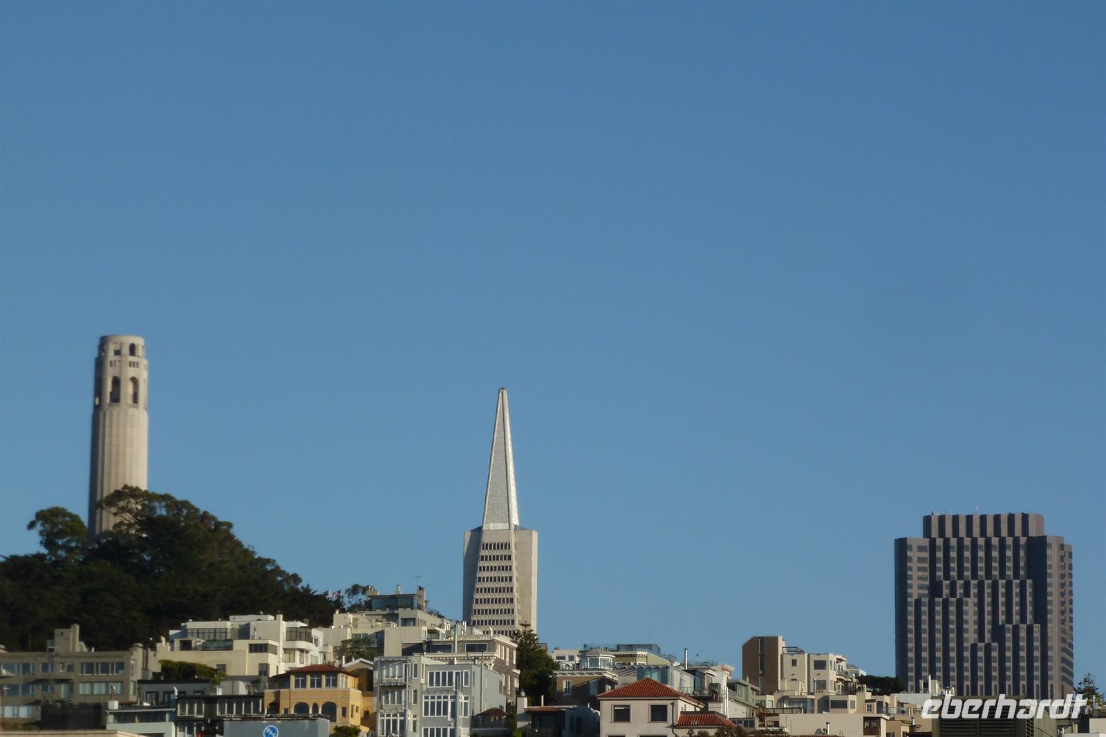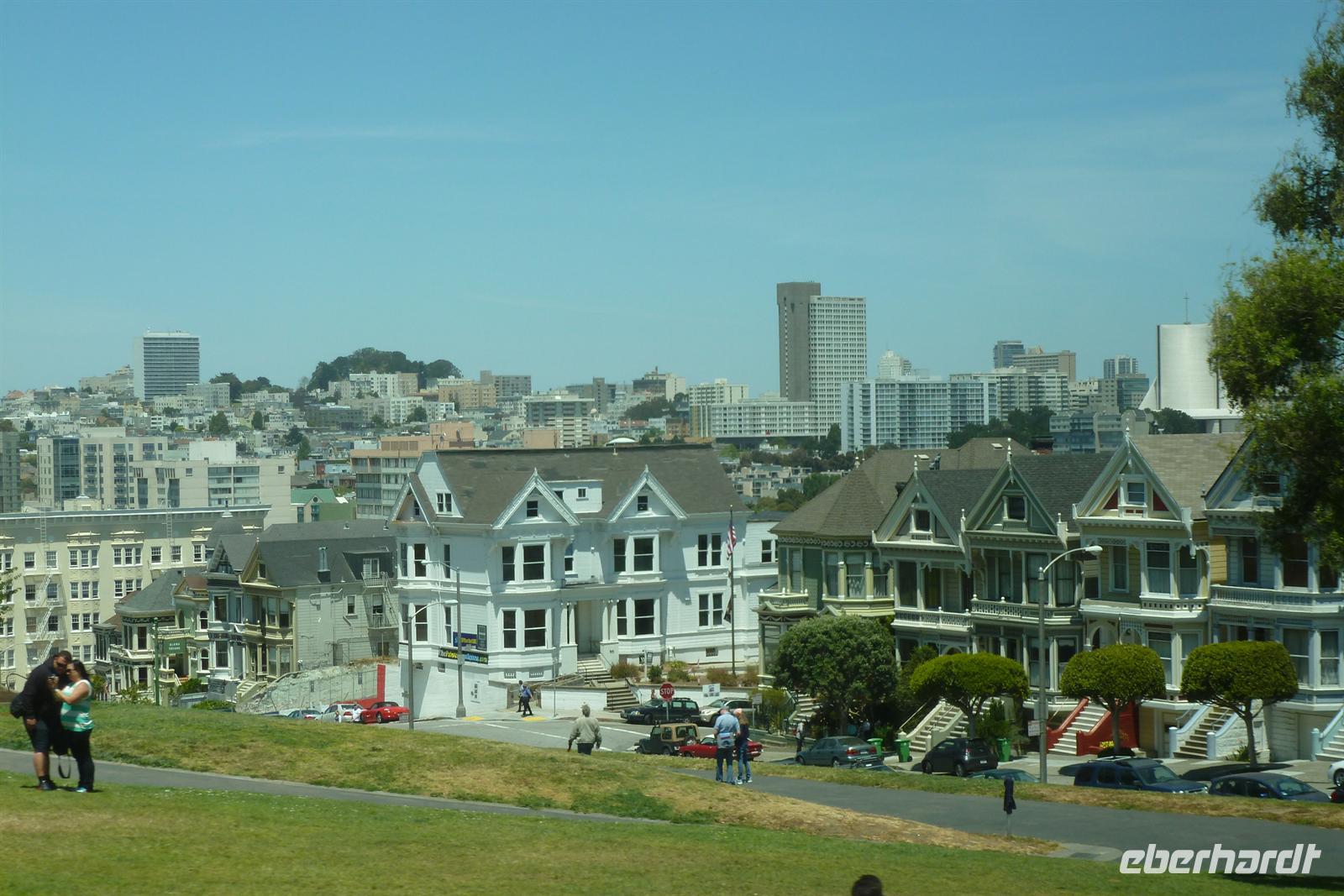 Vorbei am Silicon Valley, Cupertino und Stanford ging es in die ehemalige Stadt der Blumenkinder, die Scott McKenzie 1967 mit seinem Hit „San Francisco“ musikalisch weltberühmt gemacht hat. Gegen Mittag erreichten wir unser erstes Ziel in der Stadt. Am Hafen, genauer gesagt am Ferry Building, welches heute auch einen gern besuchten Wochenmarkt beherbergt, legten wir eine halbstündige Mittagspause ein, bevor wir unsere Stadtrundfahrt begannen. Diese führte uns ins Finanzzentrum mit der Transamerica-Pyramide, zum Union Square, nach Chinatown, vorbei am Civic Center zum Alamo Square mit den berühmten Painted Ladies, viktorianische, mehrfarbig