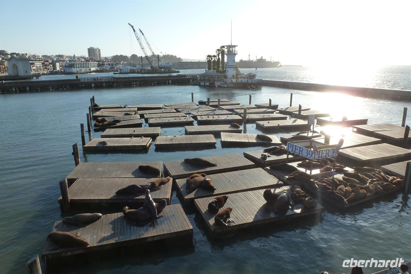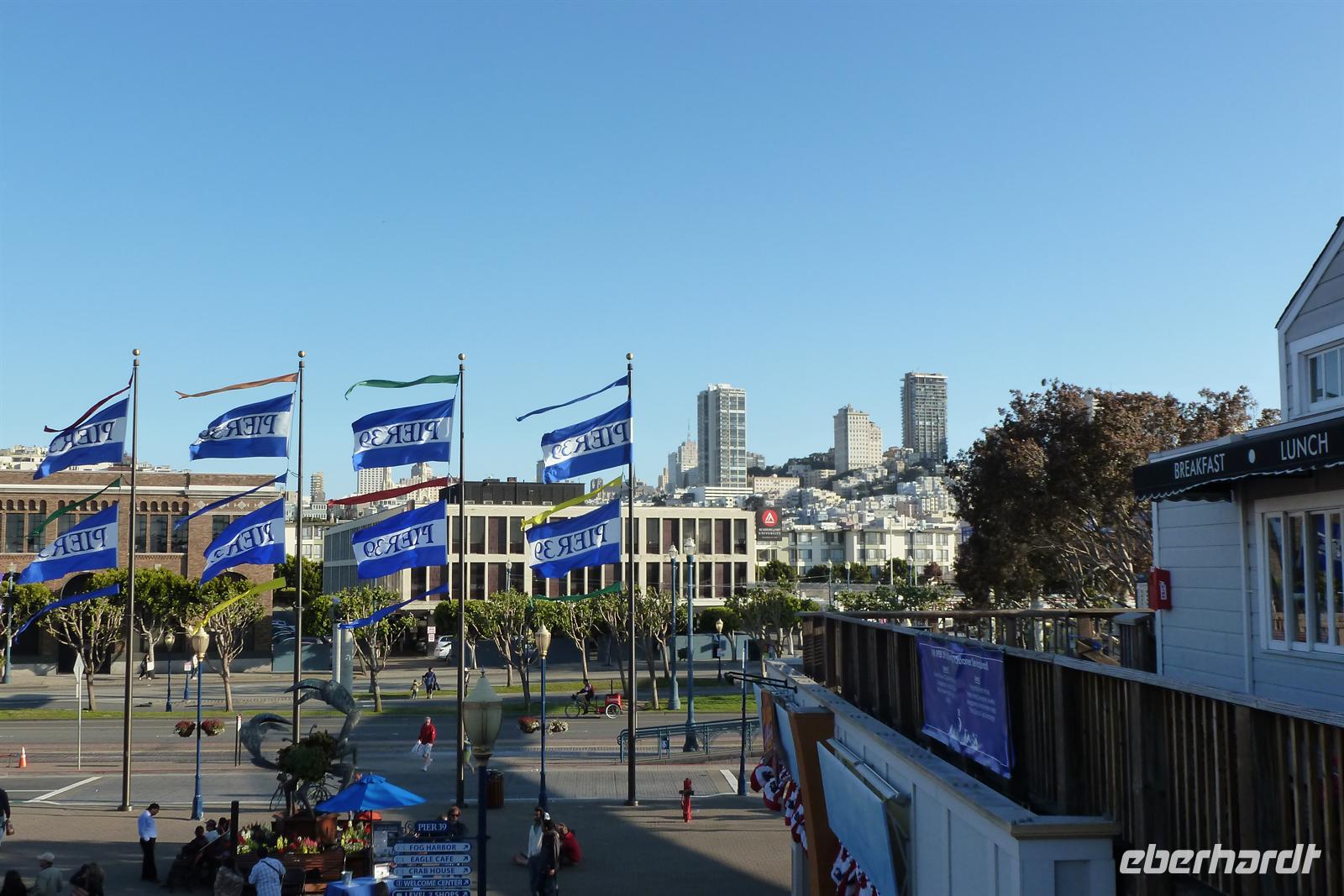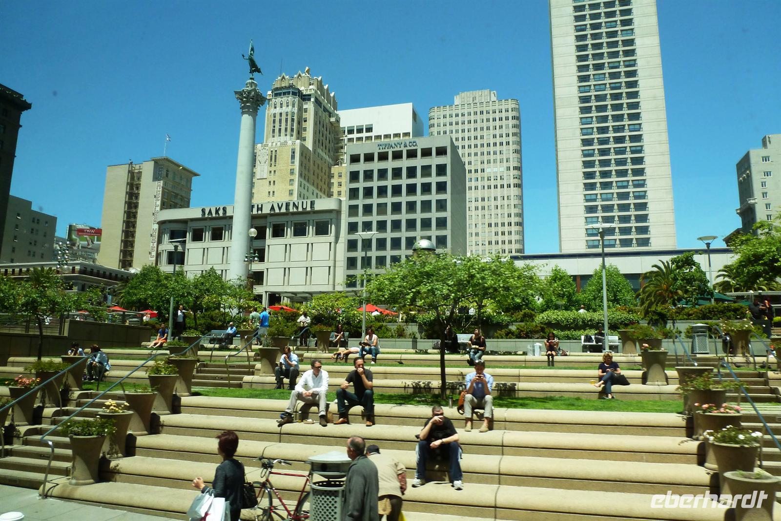 Vorbei am Silicon Valley, Cupertino und Stanford ging es in die ehemalige Stadt der Blumenkinder, die Scott McKenzie 1967 mit seinem Hit „San Francisco“ musikalisch weltberühmt gemacht hat. Gegen Mittag erreichten wir unser erstes Ziel in der Stadt. Am Hafen, genauer gesagt am Ferry Building, welches heute auch einen gern besuchten Wochenmarkt beherbergt, legten wir eine halbstündige Mittagspause ein, bevor wir unsere Stadtrundfahrt begannen. Diese führte uns ins Finanzzentrum mit der Transamerica-Pyramide, zum Union Square, nach Chinatown, vorbei am Civic Center zum Alamo Square mit den berühmten Painted Ladies, viktorianische, mehrfarbig