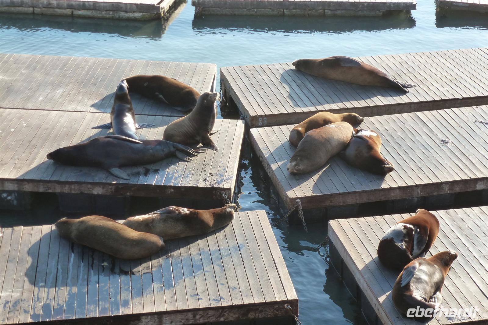 Heute brach der vorletzte Tag unserer Reise durch die Vereinigten Staaten an und ein weiterer Höhepunkt dieser Tour wartete auf uns. Doch bevor wir ins schöne San Francisco aufbrachen, begannen wir den Tag mit einer Fahrt auf dem spektakulären 17-Miles-Drive zwischen Monterey und Carmel. Wunderschöne Buchten, ein traumhafter Blick aufs Meer und noble Anwesen zeichnen diesen kleinen Teil der kalifornischen Küste aus. Howard Hughes (Milliardär) wohnte hier, Alfred Hitchcock (Regisseurs) drehte hier, Sharon Stone (Schauspielerin) mordete hier (Basic Instinct), Tiger Woods (Golfprofi) puttete hier und Clint Eastwood lebt noch heute nicht weit von hier. Am Pebbles Beach gibt es dazu einen Golfplatz von internationalem Format, wo bereits das eine oder andere Mal die US-Open ausgetragen wurden. Mit zwei Fotostopps am Bird Rock und an The Lone Cypress rundeten wir die Fahrt über den 17-Miles-Drive ab und machten uns anschließend auf den Weg nach San Francisco.