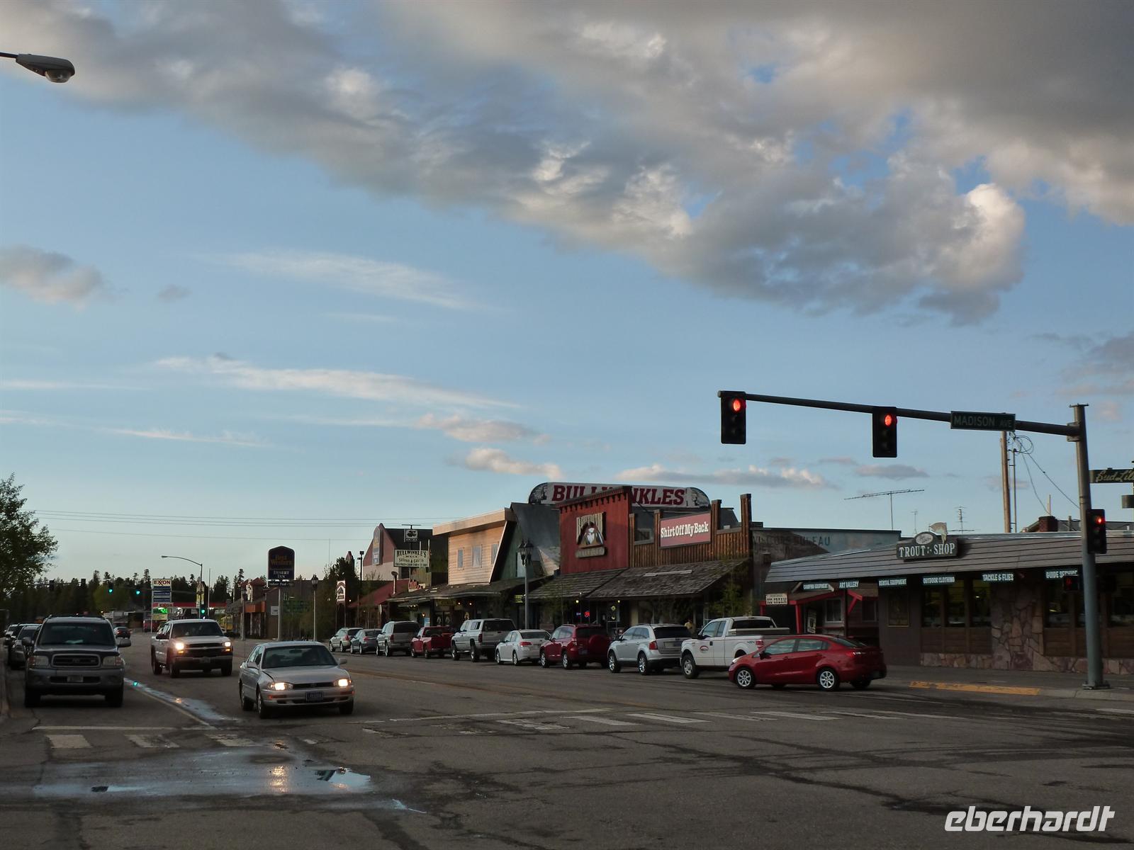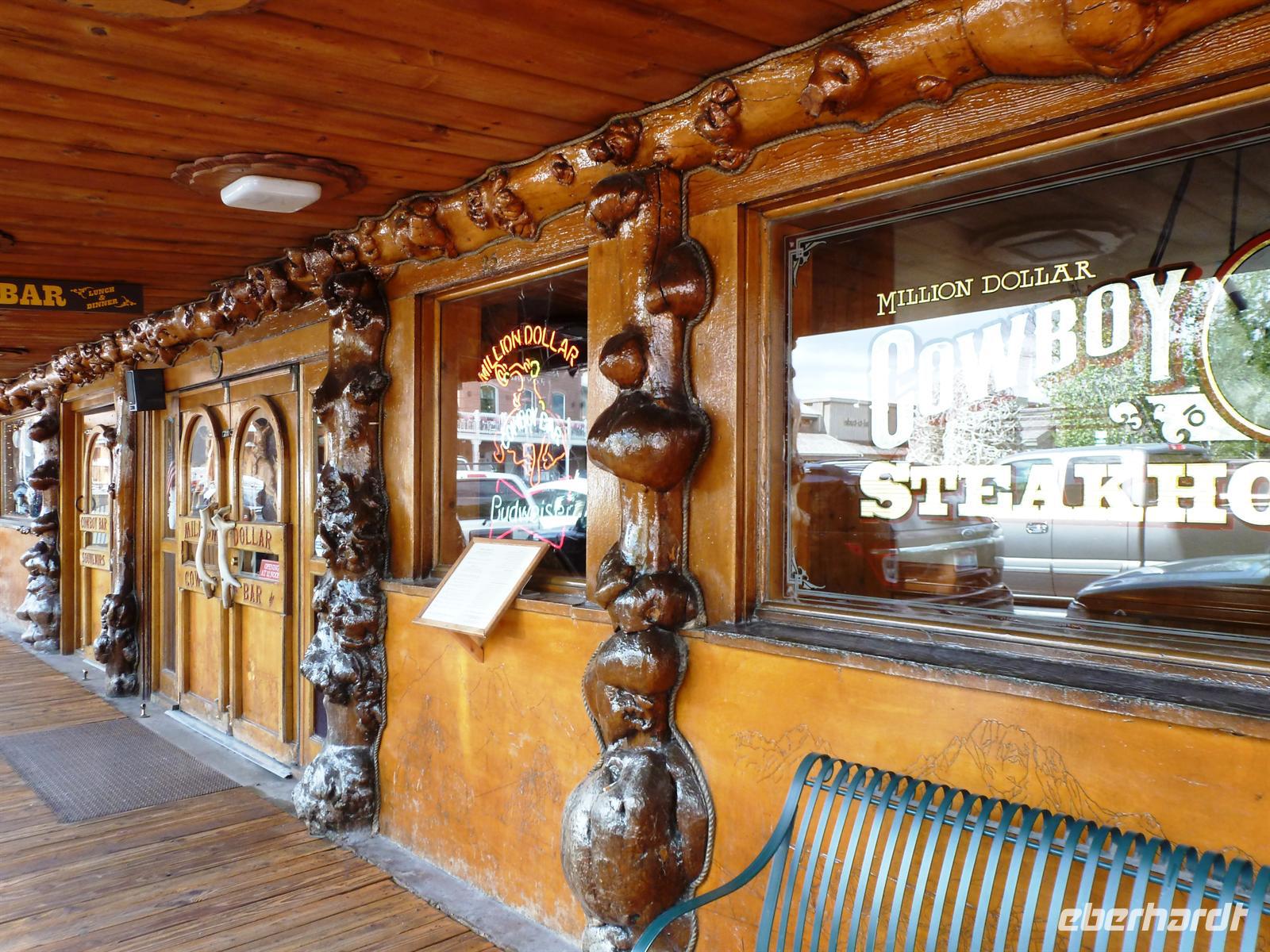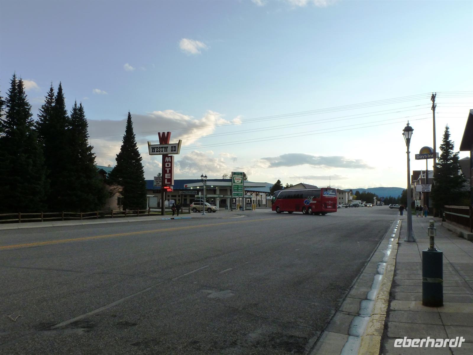 Wir starteten letztendlich mit einer knappen Stunde Verspätung, da der Flugkapitän nicht pünktlich zu seiner Maschine gelangt war! Nach einer Zwischenlandung in Denver/Colorado landeten wir alle wohlbehalten in Billings/Montana. Wir wurden schon von unserem (neuen) Fahrer Stanley erwartet, der mit uns die gesamte Reise durch den amerikanischen Westen machen würde. Von Billings aus ging es sofort weiter nach Cody/Wyoming. Das kleine Westernstädtchen im Bighorn-Basin gelegen, war der ideale Ausgangspunkt für unsere Aktivitäten im Yellowstone Nationalpark. Nach dem Zimmerbezug erkundeten wir die Handvoll Häuser entlang der Mainstreet, was sich erwartungsgemäß als sehr überschaubare Angelegenheit herausstellte. Cody war ein charmantes, kleines Westernstädtchen, wo die Uhren nach der Hektik im Osten glücklicherweise etwas langsamer gingen.