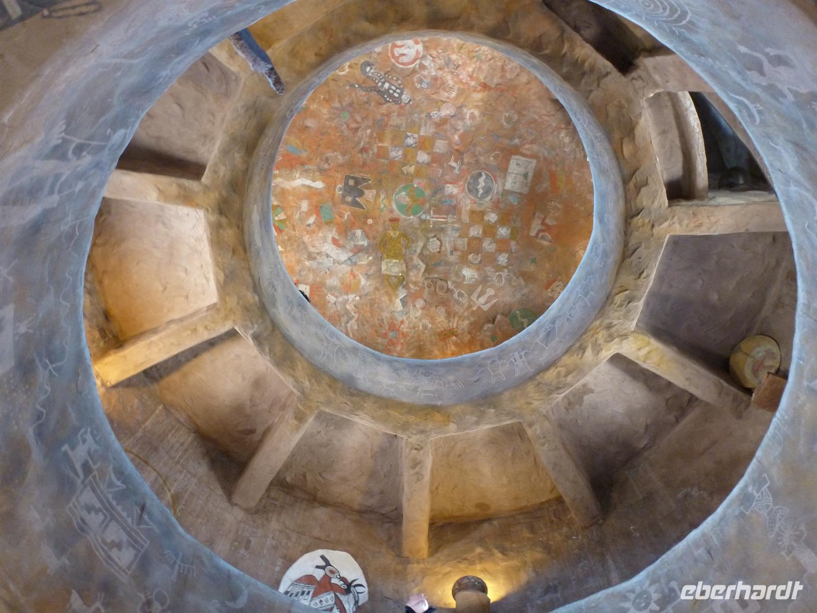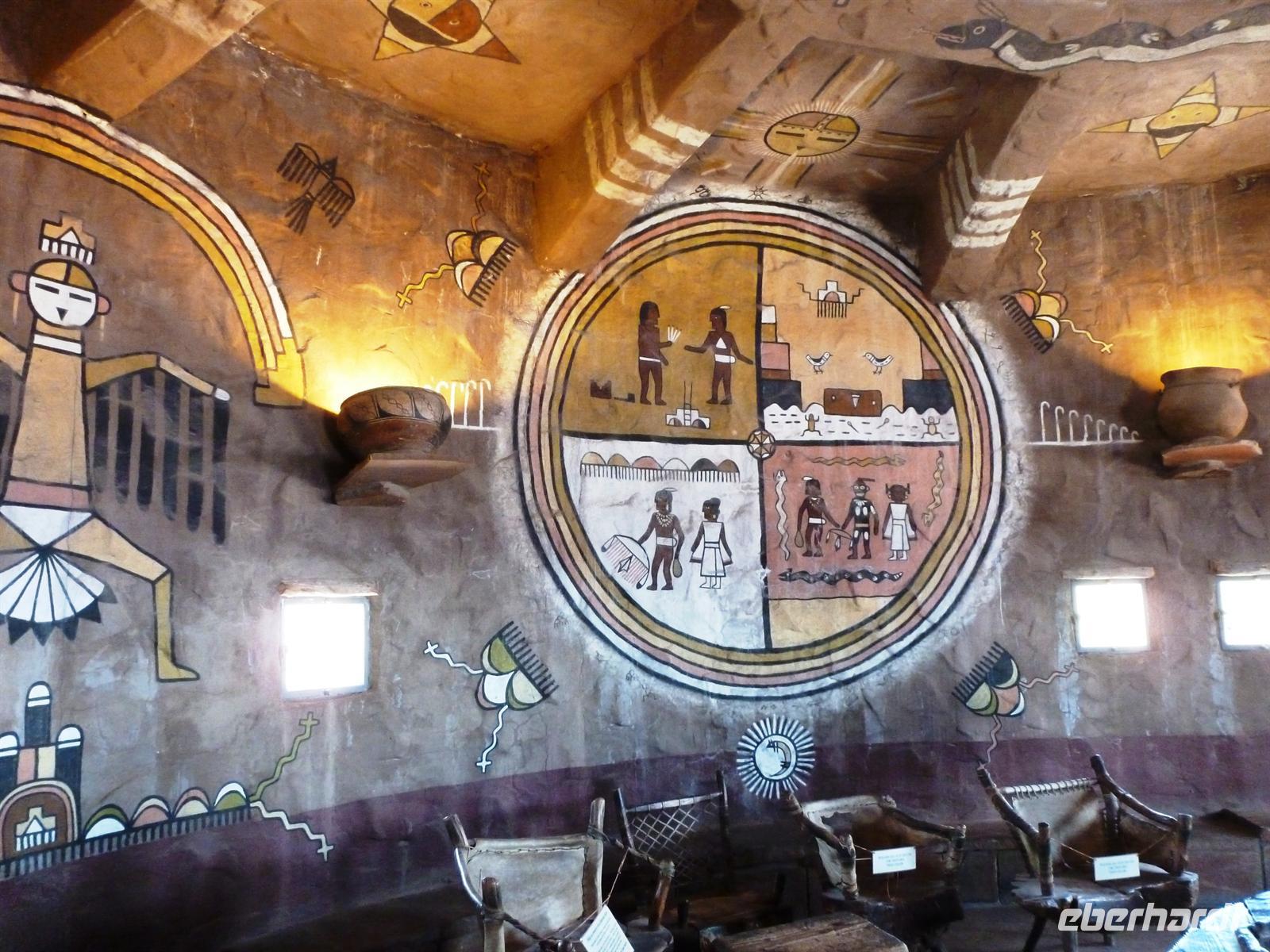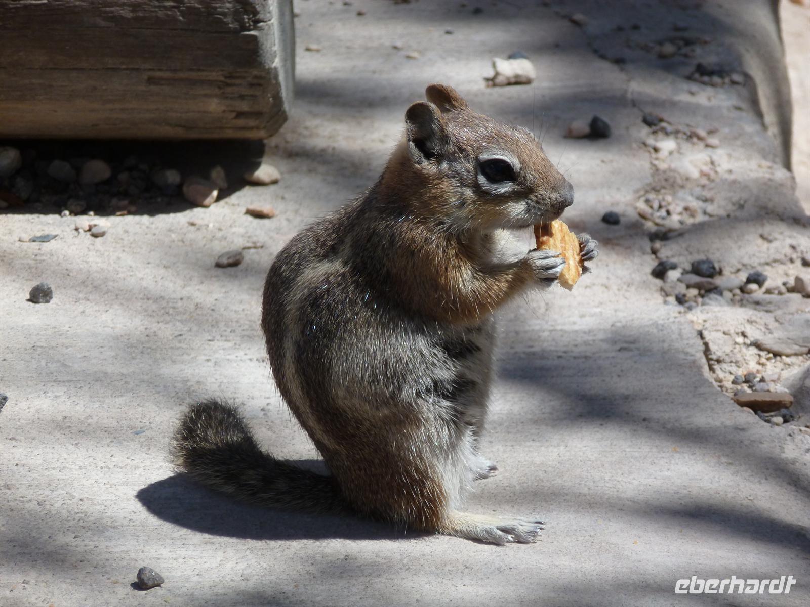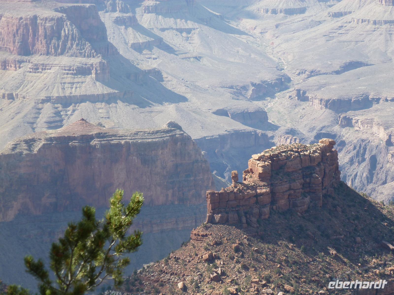 Powell und besichtigten den beeindruckenden Glen Canyon Damm, welcher eine Breite von 387 Metern erreicht und den Colorado River in Arizona anstaut. Nicht weit vom Damm spannt sich die 213 Meter lange Glen Canyon Brücke über den Fluss. Überquert man diese, befindet man sich nicht viel später auf Indianerland, in der Navajo-Reservation. Hin und wieder sieht man mal einen Hogan, die traditionelle Behausung der Navajos. In der Sprache der Navajos bedeutet das Wort Hogan „Zuhause“. In heutiger Zeit ist es meist eine sechseckige Hütte aus Balken, Erde und Lehm mit einem nach Osten gewandten Eingang. Ansonsten bekamen wir eher ärmliche Trailer und heruntergekommene Häuser zu Gesicht. Was leider eher der indianischen Realität entspricht. Durchs Painted Desert, wo uns ein Sandsturm und eine Windhose streifte und unseren Bus kräftig durchschüttelte, ging es weiter in Richtung Grand Canyon Nationalpark, welchen wir gegen Mittag erreichten. Welch überwältigender Ausblick erwartete uns hier! Der Colorado River hat auf einer Länge von mehr als 400 Kilometern im Laufe von Jahrmillionen eine gigantische Schneise in das Hochplateau geschnitten und diesen fantastischen Canyon geschaffen. Nicht nur die schiere Größe beeindruckt, sondern gleichsam das immer wieder wechselnde Spiel von Licht und Schatten. In Zeiten von analogen Filmrollen hätte man wahrscheinlich einen Rucksack voller Filme gebraucht, um alles aufs Bild zu bannen. Heute braucht es nur eine kleine Speicherkarte und man fängt die Großartigkeit des Seins in vielen Facetten ein. Von Mothers Point aus wanderten wir zur vier Kilometer entfernten Bright Angel Lodge, immer entlang der steil abfallenden Canyon-Wände und immer das großartige Panorama vor Augen. Spektakulär, Beispiellos, Unvergesslich. Aber mit Worten lässt sich die Aussicht, die sich dem Besucher bietet, unmöglich beschreiben. Eigentlich war zum Abschluss dieses einzigartigen Tages noch ein Helicopterflug über den Grand Canyon geplant, doch mussten wir diesen wegen zu starken Windes auf den nächsten Morgen verschieben. Auf dem Weg zu unserem Hotel in der Nähe des Canyons sahen wir noch einige Wapitis im Wald stehen, die sich durch unsere Anwesenheit glücklicherweise nicht stören ließen.