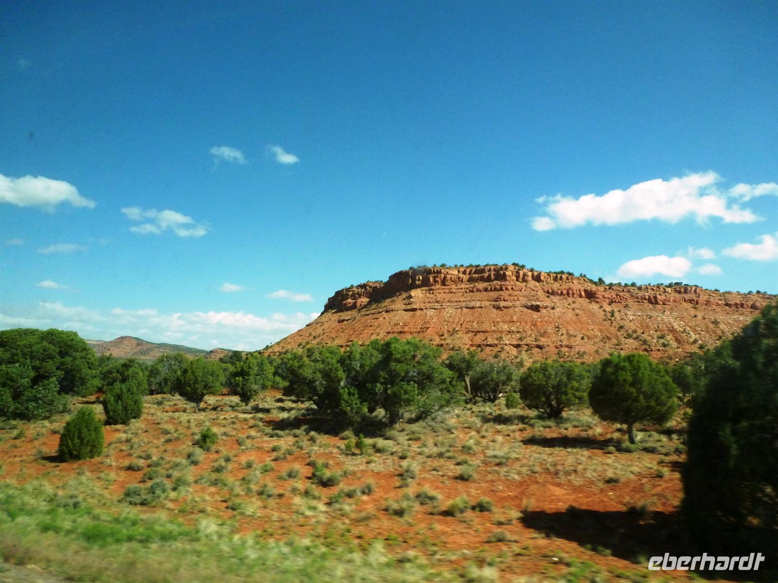 Wieder stand eine weite, relativ eintönige Strecke auf dem Programm. Dieses Mal ging es nicht aus den Bergen Wyomings über Idaho nach Utah, sondern wir blieben im Mormonenland und durchquerten die großen Prärien wie einst die Indianer und Trapper und Siedler, nur heute nicht mehr mit einem PS hoch zu Ross sondern mit unserem feuerroten 350 PS starken Setra-Luxusreisebus aus deutscher Fertigung. Was aber der Landschaft rings umher völlig egal war.