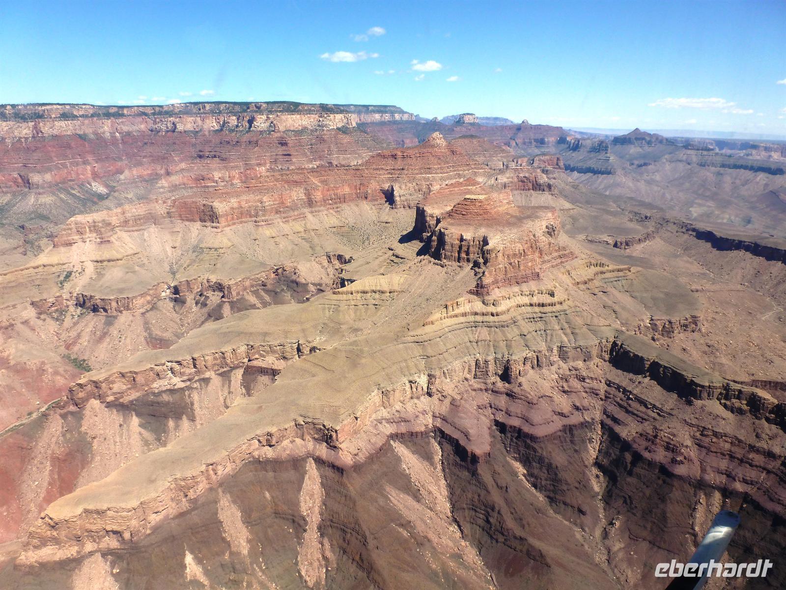 Unser heutiges Aufwachen war begleitet von dem hoffnungsvollen Blick in den Himmel und dem Wunsch, möge das Wetter mit uns sein. Und tatsächlich, uns begrüßte ein strahlend blauer und windstiller Morgen, der die Vorfreude auf unseren Helicopterflug weiter nährte. Der Flugplatz lag nur einen Steinwurf vom Hotel entfernt, so dass wir keine großen Strecken zurücklegen mussten, um einmal den Grand Canyon an Bord eines Hubschraubers zu überfliegen. Die Formalitäten waren schnell erledigt und alsbald schwangen wir uns in Sechsergruppen hoch in die Luft. Welch ein Erlebnis! Am frühen Morgen über den majestätisch daliegenden Canyon zu schweben ist ein unfassbar eindrucksvoller Moment. Die Vergänglichkeit allen irdischen Seins wird uns Angesichts der Schöpferkraft von Mutter Natur bewusster denn je. Wohl nur an wenigen Stellen der Welt fühlt man sich winziger als hier. Dem gegenüber steht nur die Erhabenheit des Fluges, die Überwindung der Schwerkraft an solch exponierter Stelle. Leider ging auch dieses beeindruckende Erlebnis irgendwann einmal zu Ende und wir setzten unseren Weg an die Pazifikküste fort.