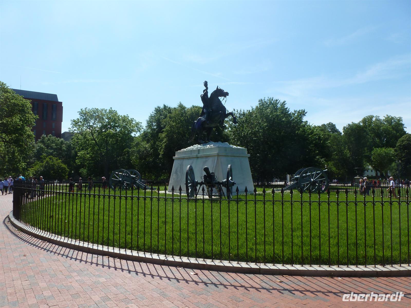 Unser Rundgang führte uns bis zum Lafayette-Park und zur St. Johns Church, wo eine auffällige Zahl schwarzer Limousinen und Polizisten auf Motorrädern vor dem gegenüberliegenden Hotel parkten. Der G-8-Gipfel tagte in Camp David und man hatte hier offensichtlich den einen oder anderen Regierungschef untergebracht. Nach Abfahrt der Eskorte mit Blaulicht und Sirene waren einige aus unserer Gruppe sicher, Angela Merkel und Barack Obama gesichtet zu haben… Aber man weiß es nicht genau. Unsere Fahrt ging ohne Blaulicht weiter am Washington Monument vorbei zum Lincoln Memorial, wo wir die Stufen zur übermannsgroßen Statue Abraham Lincolns erklommen und den Blick über „The Mall“ bis zum Capitol schweifen ließen. Nach der Besichtigung der verschiedenen Kriegsdenkmäler aus dem Korea- und dem Vietnam-Krieg fuhren wir zur Union-Station, wo wir unsere Mittagspause einlegten und unsere örtliche Reiseleiterin Beate verabschiedeten. Am Nachmittag stand ein Besuch des Arlington-Friedhofes auf dem Programm. Wir besichtigten das Grab von John F. Kennedy und erlebten eine Wachablösungszeremonie am Grabmal des unbekannten Soldaten. Vorbei am Pentagon und am Jefferson Memorial ging es für eine kurze Pause zurück zu unserem Hotel in den Südwesten der Stadt, bevor wir in einem Fischrestaurant im trendigen Stadtviertel Georgetown bei Lobster-Suppe und gebratenem Lachs den Tag in der amerikanischen Hauptstadt ausklingen ließen. Einziger Wermutstropfen sind die deutlich teureren Preise für Wein und Bier, die uns die gesamte Ostküste entlang verfolgten und den Genuss der Mahlzeiten etwas schmälerten.