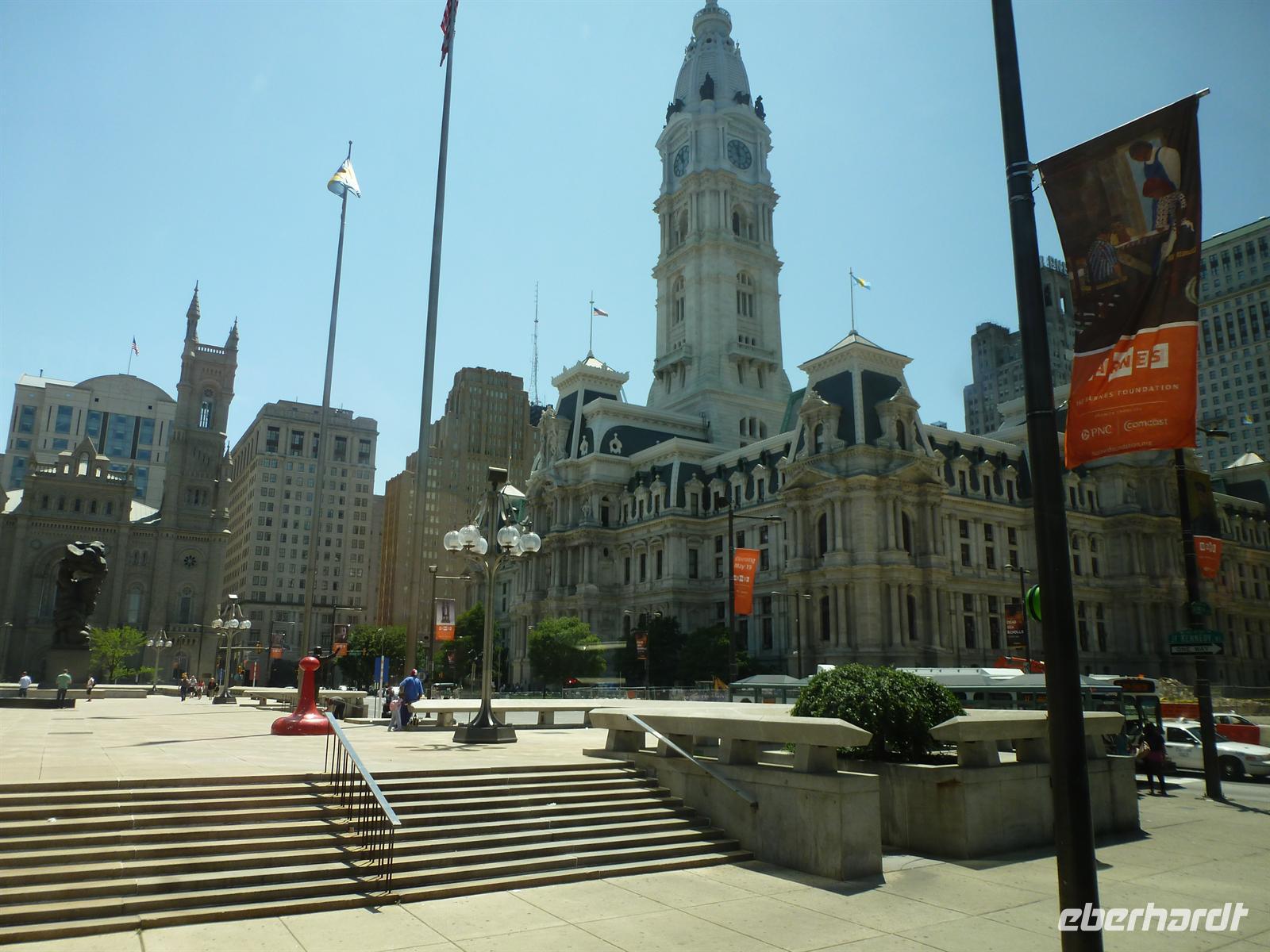 Kaum angekommen hieß es nun schon wieder Abschied nehmen. Am Ende des heutigen Tages wollten wir den Big Apple erobern, aber bevor es so weit war, ging es an Baltimore vorbei zuerst einmal zur Wiege der amerikanischen Nation, nach Phillie, wie die Stadt liebevoll von ihren Einwohnern genannt wird. Hier wurde nicht nur die Unabhängigkeit erklärt, sondern hier feierte zwei Jahrhunderte später auch Rocky Balboa seine größten Triumphe. Zumindest im Film. Unser örtlicher Guide Nick aus Leipzig geleitete uns auf einer Stadtrundfahrt durch Philadelphia, bevor wir als Höhepunkt der Tour die Independence Hall besichtigten und einen Blick auf die