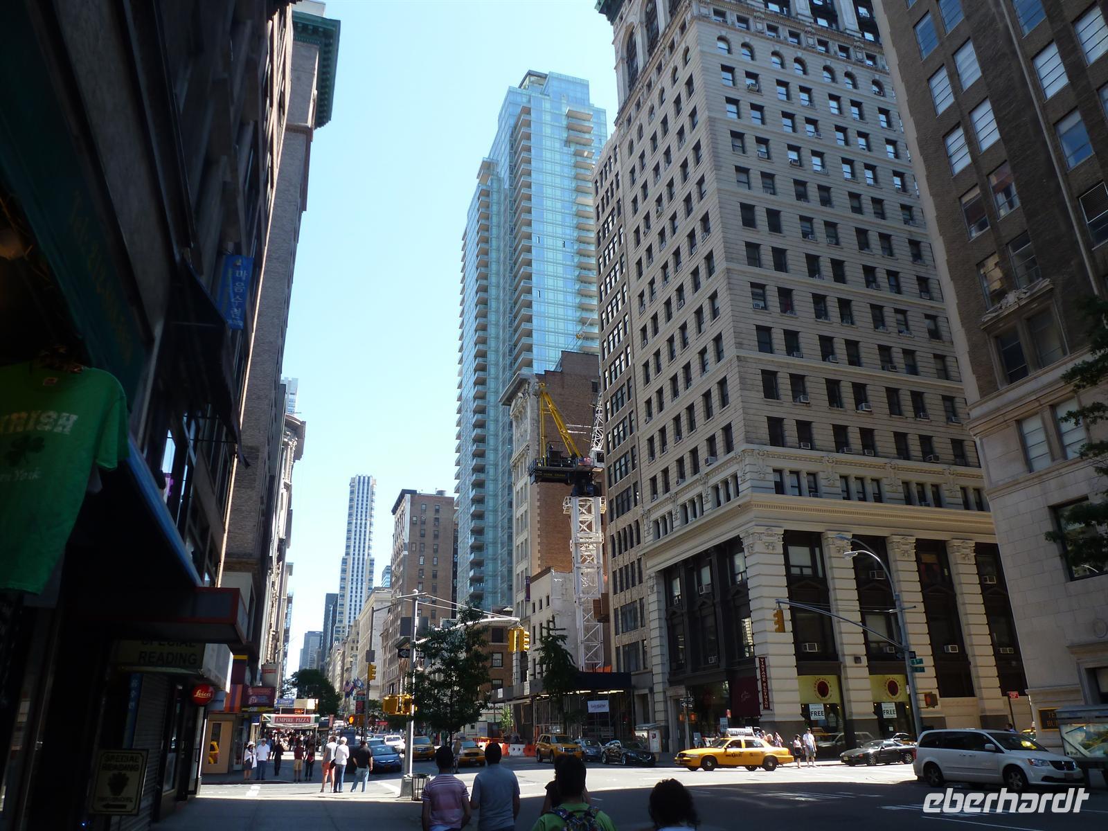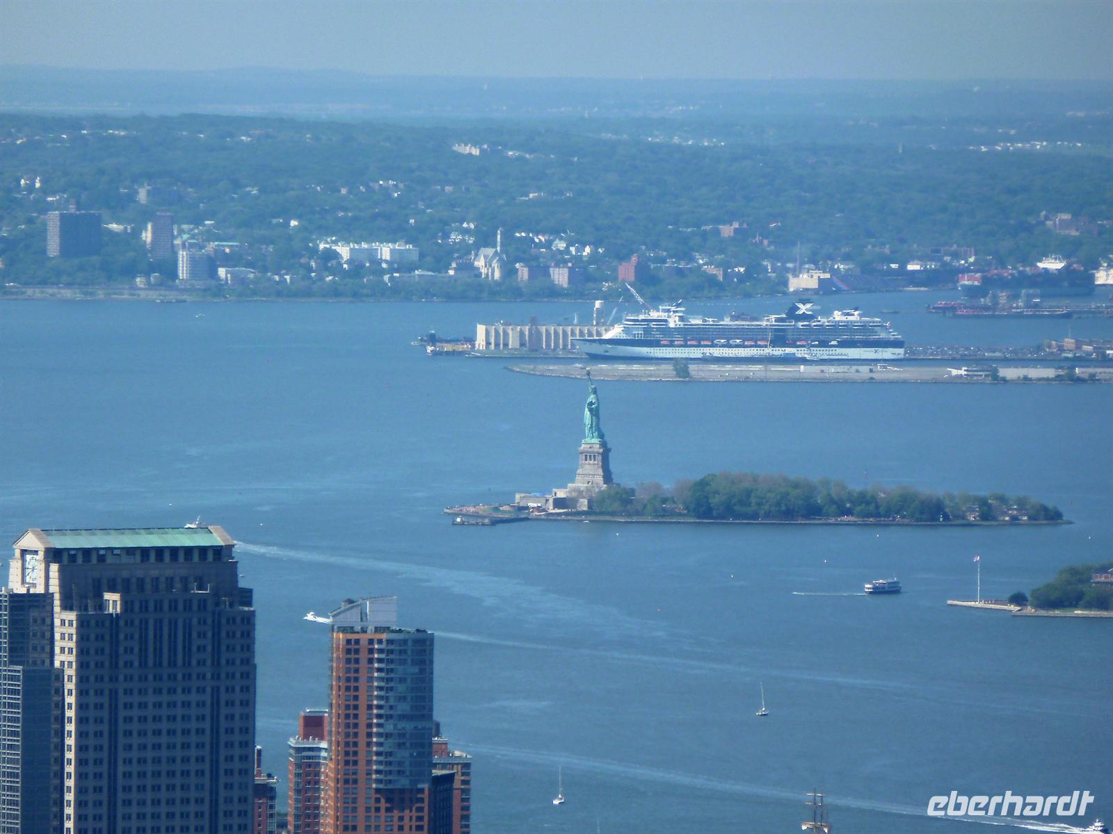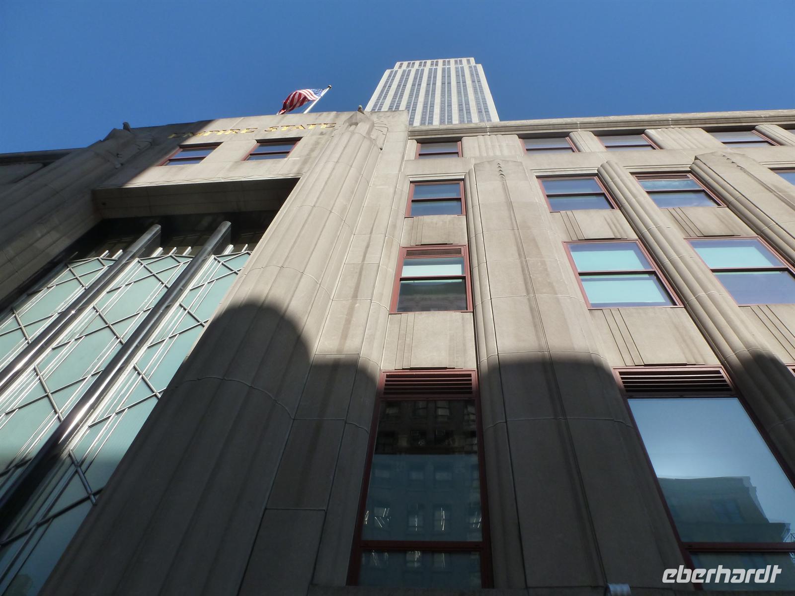 Unser Frühstück nahmen wir nicht in unserem New Yorker Hotel ein, sondern in einer kleinen Trattoria gleich um die Ecke. Ist es für uns Deutsche vielleicht etwas ungewohnt, außerhalb zu frühstücken, gehört es für viele New Yorker zum morgendlichen Ritual. Solchermaßen gestärkt ging es anschließend durch die Straßenschluchten Manhattans direkt zum Empire State Building. Jetzt hieß es, sich einen Überblick zu verschaffen. Und was wäre dazu nicht besser geeignet als der Blick von der 86. Etage eines Wolkenkratzers aus. Nach Sicherheitscheck und Schlange stehen vor den Fahrstühlen wurden wir in kurzer Zeit in 320 Meter Höhe „katapultiert“ (in Wahrheit merkt man davon fast nichts) um dann von der Aussichtsplattform einen atemberaubenden Blick über New York und New Jersey zu genießen. Das Wetter meinte es auch gut mit uns und so konnten wir bei wenig Wind und guter Sicht den Blick lange Zeit rundum schweifen lassen.