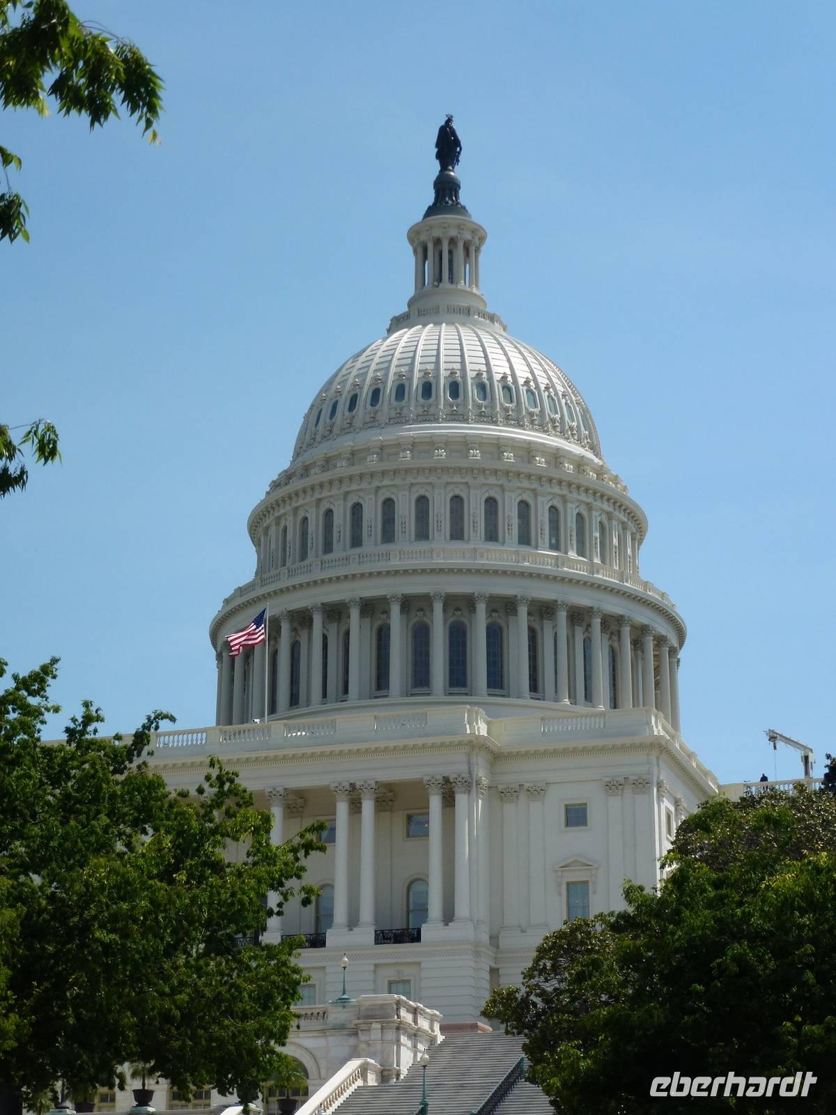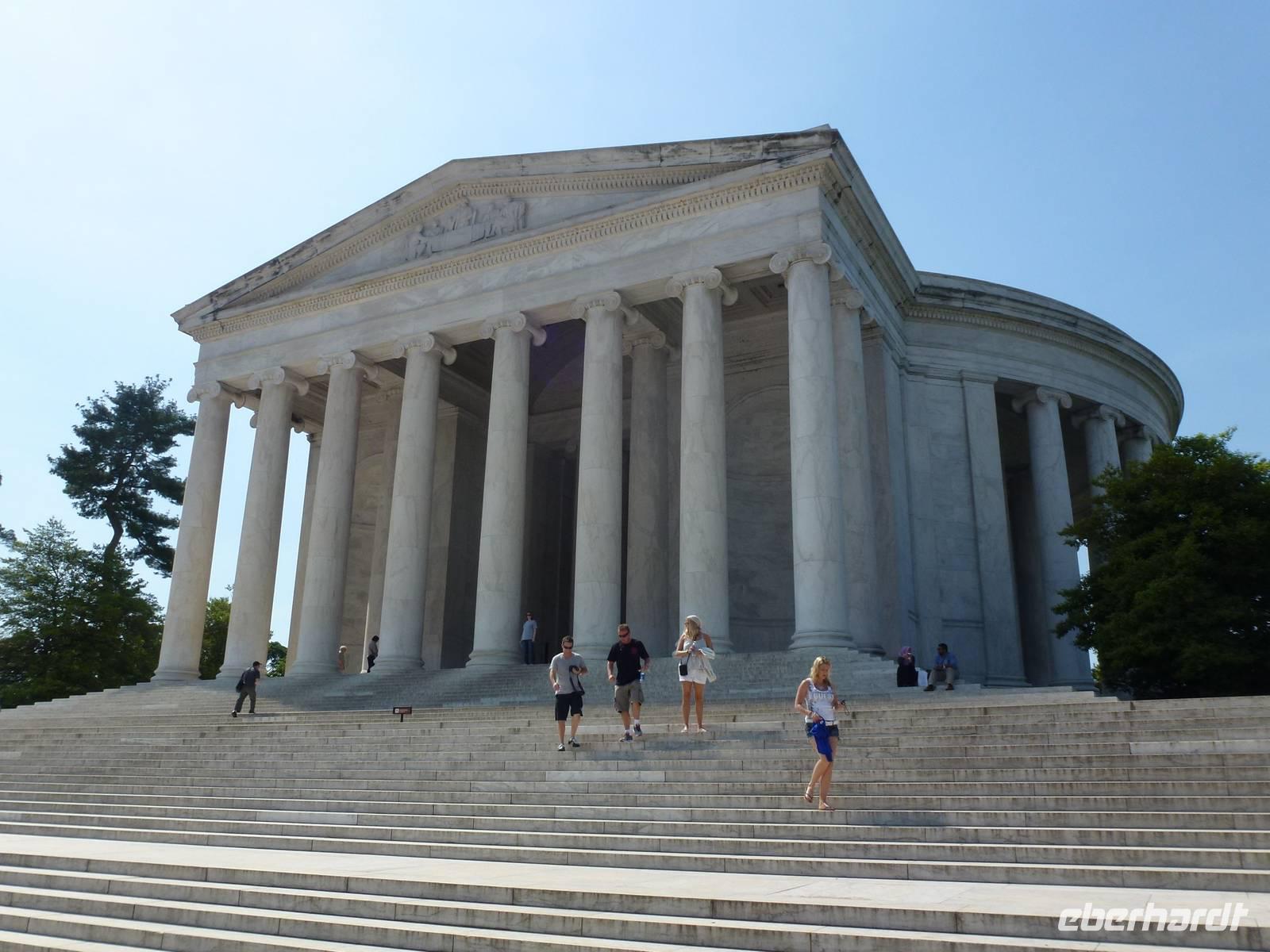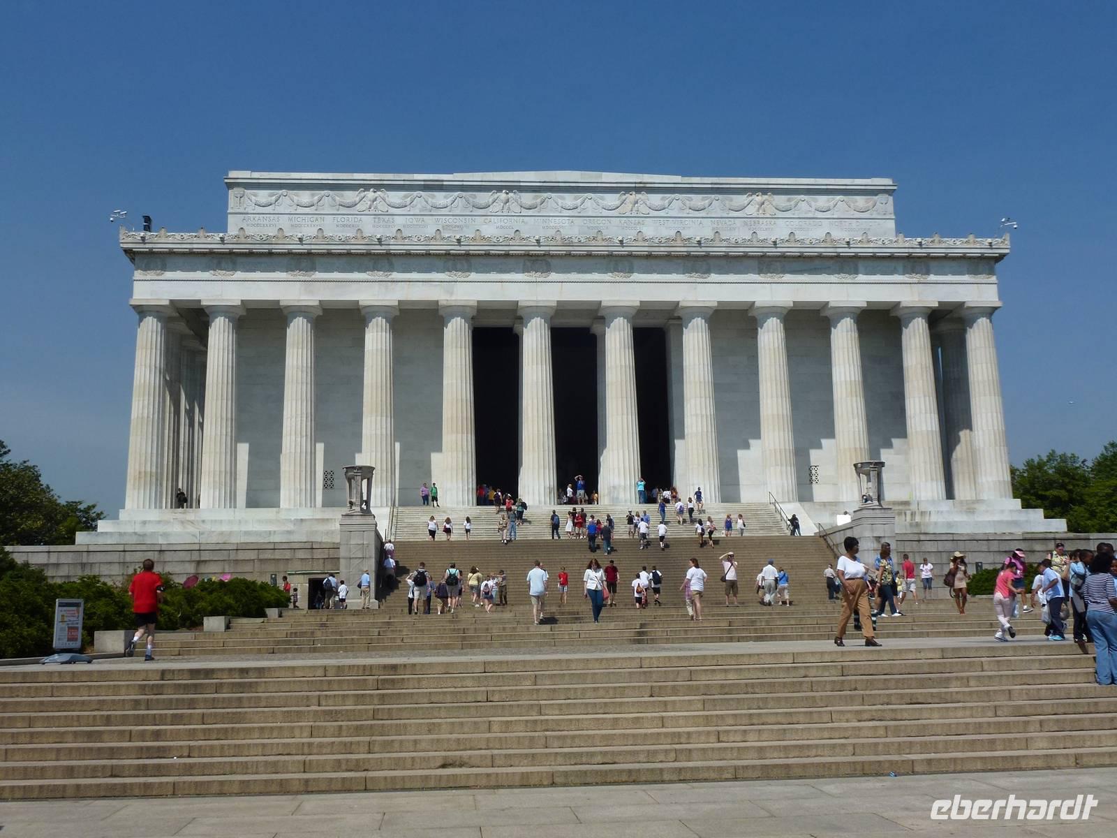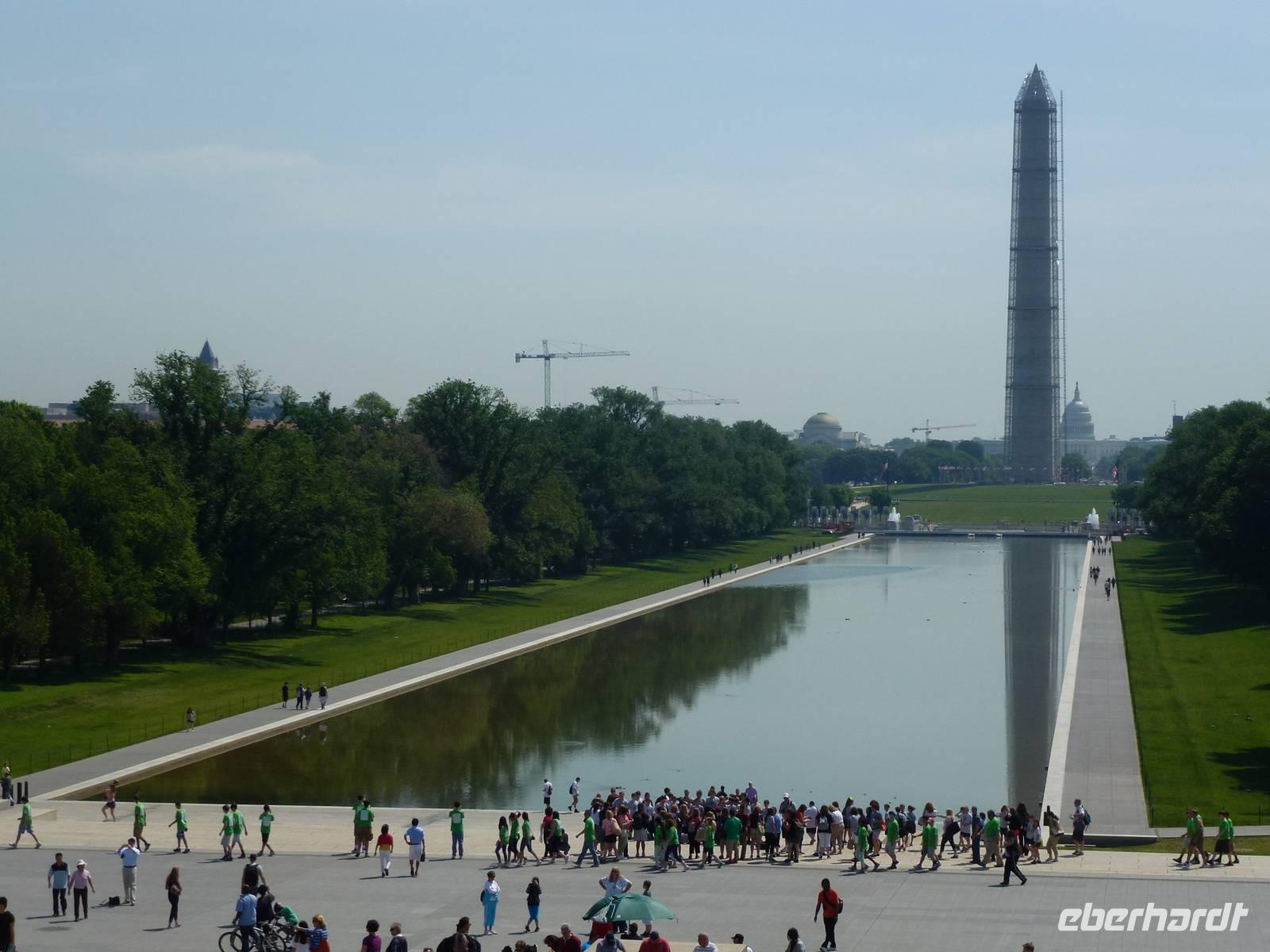 Nach dem ersten gewöhnungsbedürftigen Frühstück nach amerikanischer Art - damit meine ich das Plastebesteck und Pappgeschirr - starten wir 08.30 Uhr zu unserer Stadtrundfahrt durch die Hauptstadt der USA. Wir wollen zumindest starten, aber unser Fahrer findet uns erst gegen 09.00 UHr. Schuld war der englische Prinz Harry, der gerade in der Stadt weilt und für einige Straßensperrungen sorgt. Nun starten wir mit unserem amerikanischen Stadtführer Bill und der erste Weg führt uns direkt zum "Zentrum der Macht" - dem Weißen Haus. Hoch gesichert - heute ist Präsident Obama auch wirklich in der Stadt - und umlagert von Hunderten Schülern in gleich T-Shirts, die die Zugehörigkeit zu einer Schule oder einer Klasse verdeutlichen, haben wir die Chance auf erste "Beweisphotos". Ganz nebenbei erklärt uns Bill so ziemlich alles zur Geschichte der Stadt und der einzelnen Monumente. Nach Station I nehmen wir Kurs auf weitere Sehenswürdigkeiten der Stadt und statten dem Jefferson- und Lincoln-Memorial jeweils einen Besuch ab. Überdimensionale Statuen der ehemaligen Präsidenten schmücken die tempelartig wirkenden Monumente von denen es über die Stadt verteilt für jeden Unions-Präsidenten eines gibt. Zur Geschichte und den einzelnen Präsidenten hat Bill immer eine Anekdote parat und so wird die Geschichtsstunde sehr unterhaltsam. Bei strahlendem Sonnenschein und 30 Grad fangen wir uns alle ein paar gerötete Hautpartien ein, vor allem beim kurzen Spaziergang zum und um das Capitol, vielleicht das schönste, auf alle Fälle ein sehr sehenswertes, Gebäude-Ensemble der Stadt. Mit Bibbliothek und Bundesgerichtshof bildet es eine wunderbare Trilogie. NUn sind wir ziemlich geschafft und haben uns eine Mittagspause redlich verdient. Diese bekommen wir in der Union Station, dem Washingtoner Hauptbahnhof. Die Zeit nutzt jeder individuell für erste Postkarten-Besorgungen oder einfach zum Mittagessen, wobei die auswahl der Mittagsverpflegung bei ca. 30 unterschiedlichen Geschäften nicht leicht fällt. Nach der Stärkung sind wir bereit für neue Taten und fahren in den Bundeststaat Maryland, nach Arlington. Hier befindet sich der berühmteste Soldatenfriedhof der USA auf dem ca. 250.000 Soldaten begraben liegen. Die Schülergruppen konnten wir den ganzen Tag nicht abschütteln und so begleiten sie uns auch auf unserem Weg zur letzten Ruhestätte der Familie Kennedy und zum Monument für den "Unbekannten Soldaten". Es ist ein sehr beeindruckender Besuch. Jetzt haben wir wirklich viel - wenn auch bei Weitem nicht alles - von Washington gesehen und kehren zum Hotel zurück. Zum Abendessen verlassen wir aber unseren Stadtteil nochmal und fahren zum Abendessen nach Georgetown, besonders bekannt für seine Universität. Georgetown ist ein wunderbarer Stadtteil mit unzähligen Restaurants und Bars, die bei diesen lauen Temperaturen nahezu überfüllt sind. Wir essen heute im Restaurant Seacatch, in einem wunderbaren Ambiente, auch wenn nicht alle vollkommen von der Kochkunst - neben Salat und Schokotorte kann man heute Zwischen Mahi-Mahi, Lachs, Huhn und einem schönen Rindsteak wählen - des Restaurants überzeugt werden können. So geht ein wunderbarer Tag mit einem wunderbaren Abend zu Ende und der Abschied von Washington naht.