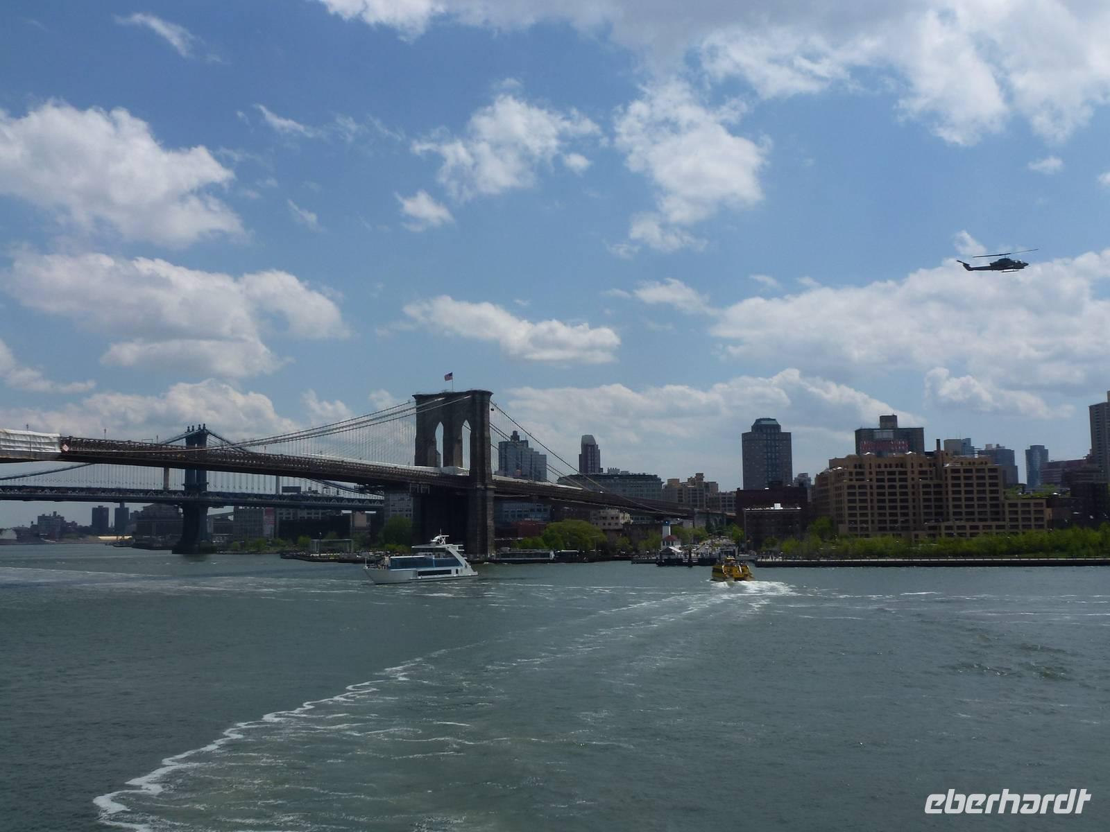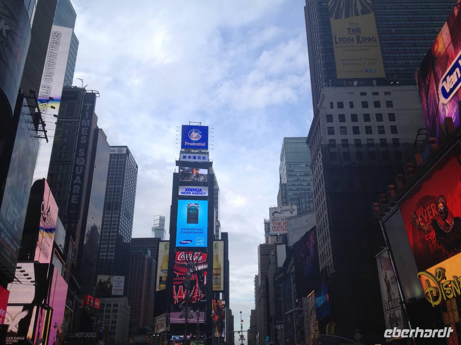 Nach unserer ersten Nacht im Big Apple lernen wir heute eine weitere Art der Frühstückskultur kennen. Wir essen nicht im Hotel sondern im benachbarten Restaurant Daniela's. Man wird platziert und wer sich nicht für ein karges continental breakfast entscheidet, bestellt ein american breakfast und bekommt seinen deftigen Frühstücksteller direkt serviert. Stärkung ist heute wichtig, schließlich steht noch die Erkundung New Yorks auf dem Programm. Diese beginnt mit einer 4-stündigen Stadtrundfahrt bei der wir die wichtigsten Sehenswürdigkeiten vom Bus aus erleben können. Uns begrüßt im Bus die gebürtige Erfurterin Sigrid und brennt ein wahres Feuerwerk an Informationen, Anekdoten und kleinen Spässchen ab. Wir sind begeistert, denn all die Besonderheiten des Big Apple erläutert Sigrid mit viel Herzblut aber auch immer mit einem zwinkernden Auge. Die meiste Zeit der Stadtrundfahrt verbringen wir bei der Größe der Stadt natürlich im Bus, aber bei kleinen Spaziergängen, z.B. zur Metropolitan Opera - die auch das Jubiläum Richard Wagners feiert - zum Rockefeller Center, durch Chinatown und den Finanzdistrikt um Ground Zero lernen wir viel über die Geschichte, die Gegenwart, aber auch die Zukunft New Yorks. So erleben wir einen fachlich und menschlich hervorragenden, amüsanten Vormittag und Sigrid bringt uns bis zum Empire State Building, dessen Besuch noch auf dem Programm steht. Durch die Sicherheitskontrolle und über diverse Fahrstühle und durch diverse Räumlichkeiten erreichen wir endlich die Aussichtsplattform in der 86. Etage. Hier in einer Höhe von 320 Metern, hat man bei dem Wetter welches wir uns heute verdient haben, einen fantastischen Blick über Manhattan, die angrenzenden Stadtteile und sogar bis New Jersey. Im Anschluss an den Besuch steht Freizeit auf dem Programm. Fast die gesamte Gruppe hat heute die Abenteuerlust gepackt und wir begeben uns auf einen Ausflug nach Staten Island, um noch ein paar Blicke auf die Freiheitsstatue werfen zu können. Der Ausflug wird zum kleinen Abenteuer... Alles beginnt mit dem Erwerb der Metrokarten, die wir aber dank liebenswerter Beamten auf der Hinreise gar nicht einsetzen müssen. Dann sitzen wir in der richtigen Linie, leider biegt diese falsch ab, aber dafür genießen wir die Überfahrt nach Brooklyn mit Blick auf den East River... Aussteigen, Umsteigen und zurück nach Manhattan und dort zum Staten Island Fährterminal. Die Überfahrt ist kostenfrei, dauert ca. 25 Minuten und mit etwas Glück (und sauberen Scheiben bzw. offenen Fenstern) kann man hier einen guten Blick auf die Skyline von Manhattan und die Freiheitsstatue erhaschen. Angekommen in Staten Island müssen wir im Laufschritt die nächste Fähre zurück erreichen, damit nicht zuviel Zeit verloren geht. Zurück auf der bekannten Halbinsel wollen wir dann mit der Metro zurück. Die Wertkarte der Metro ist trotz aufgeladenem Gesamtentgelt immer nur für 4 Personen gültig - was aber niemand verrät - und so beginnt unsere Rückfahrt mit einer sportlichen Slapstick-Einlage meinerseits ... Nachdem wir dann auch noch eine Station verpasst haben, erreichen wir erschöpft das Hotel, gerade noch rechtzeitig, um uns für das Abendessen frisch zu machen. Heute gibt es im Steakhouse Gallagher, in dem schon Persönlichkeiten wie Churchill, die Kennedys oder Michael Jordan speisten, ein Menü aus Zwiebelsuppe, natürlich Rindsteak und Käsekuchen. Anschließend geht es ins Hotel zurück und alle müssen sich aufgrund der kurzen bevorstehenden Nacht entscheiden: schnell ins Bett oder vielleicht doch gar nicht...