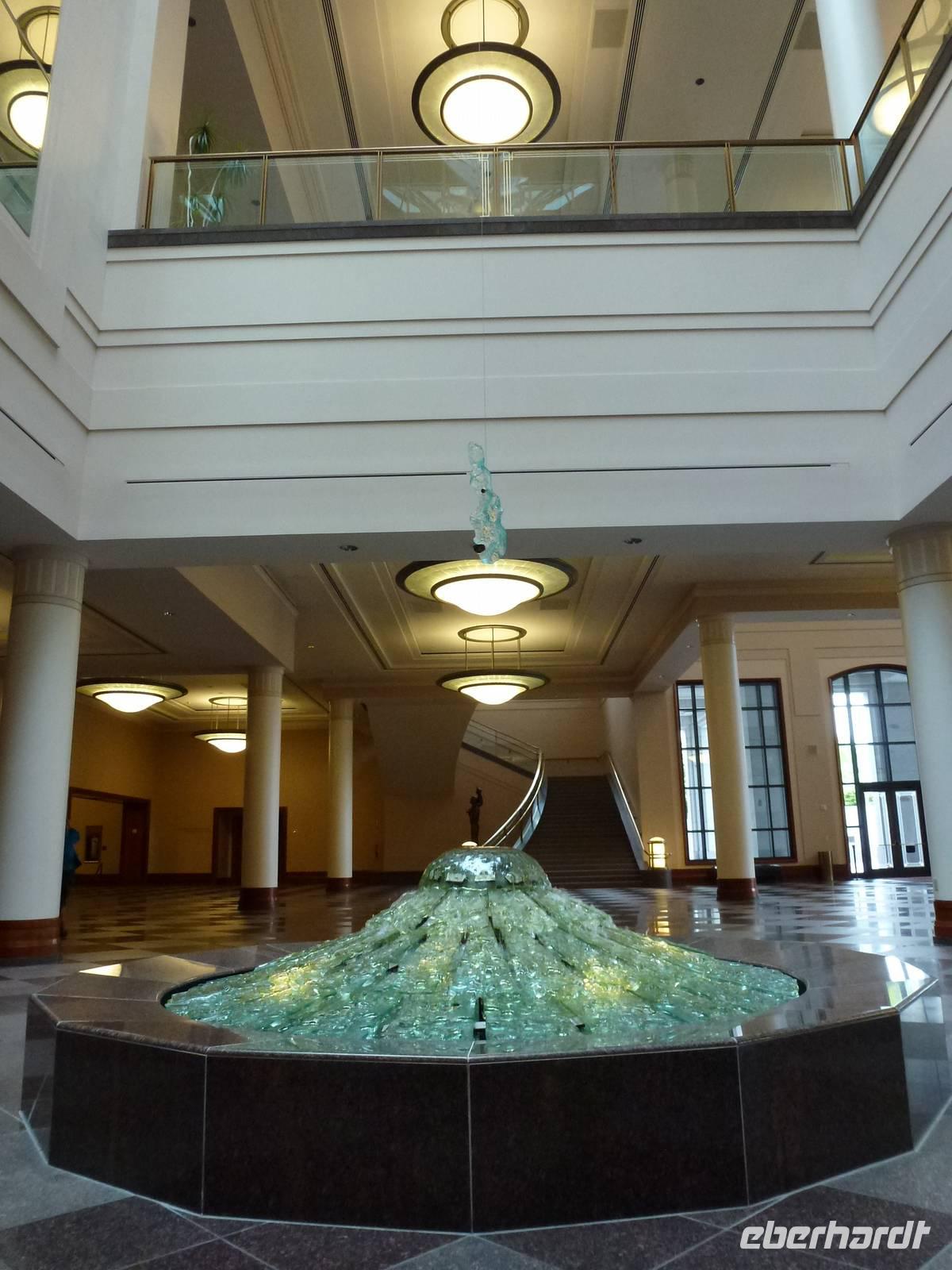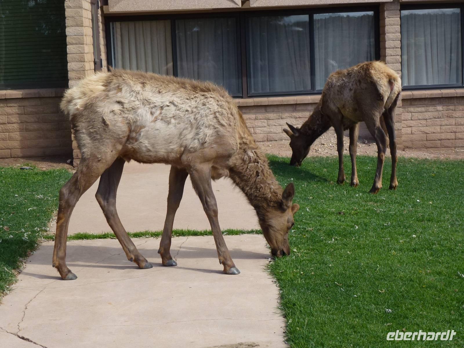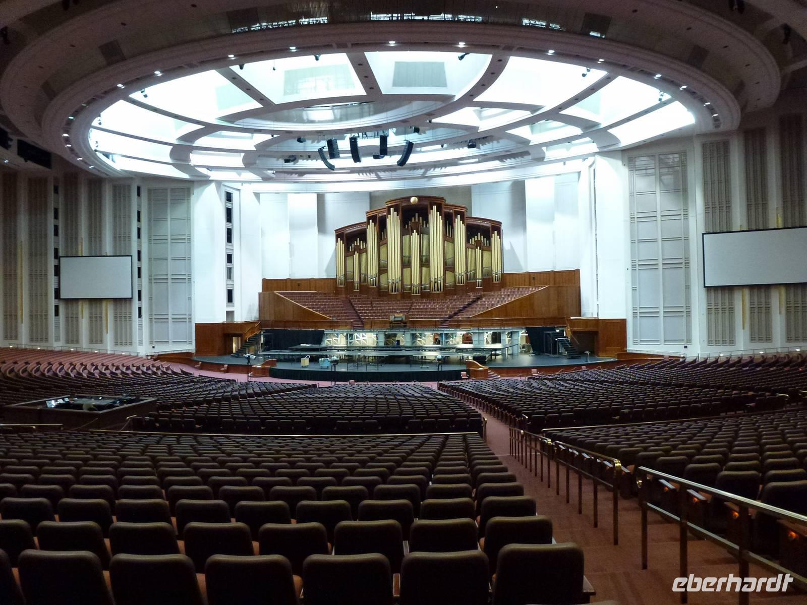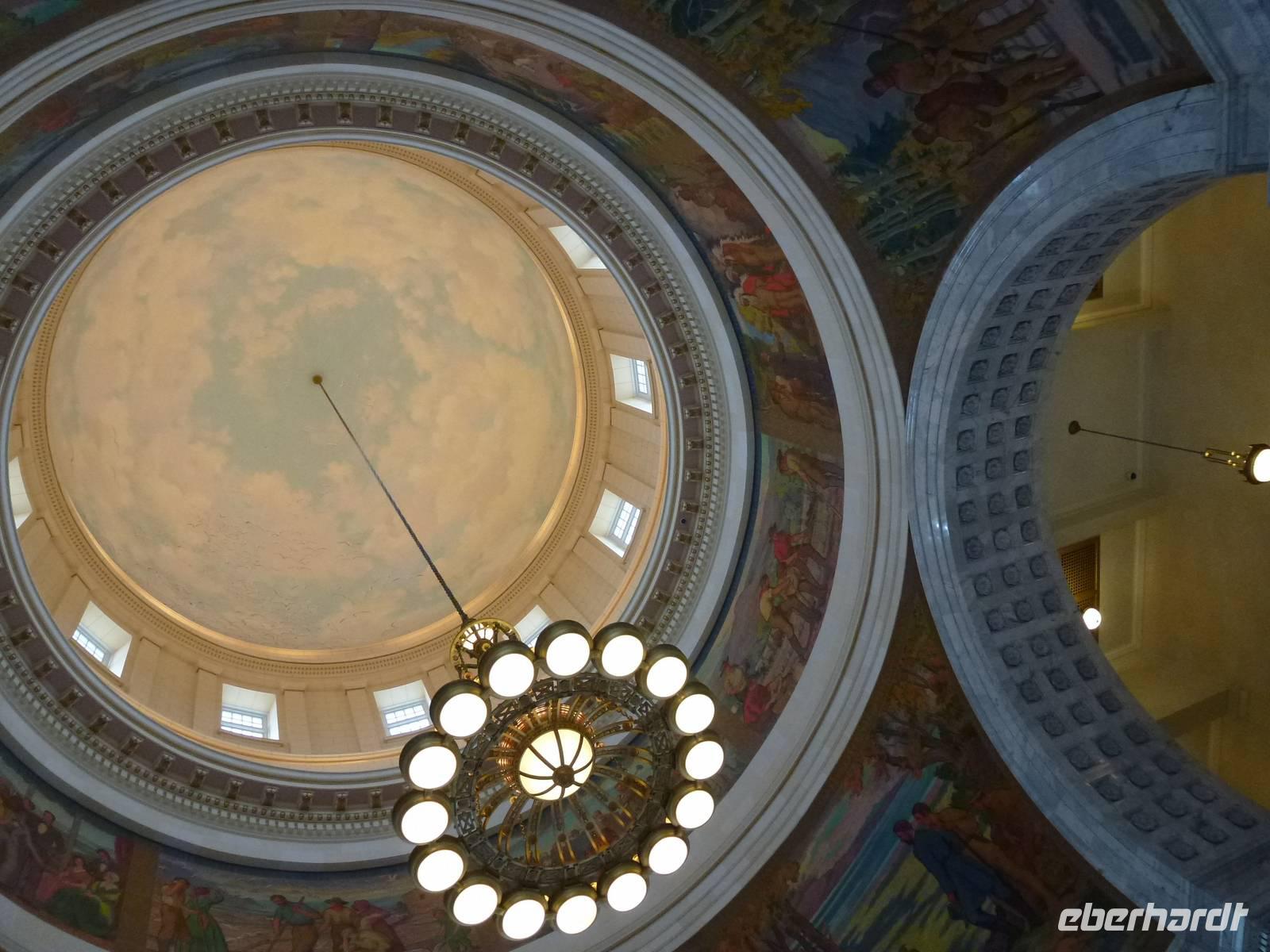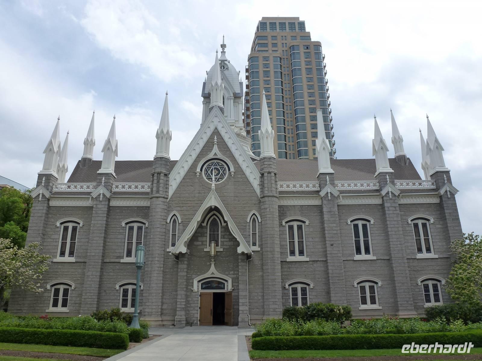 Heute Morgen brechen wir alle gemeinsam auf, d.h. erst verladen wir Koffer, bevor wir gemeinsam in unser Frühstückslokal E.LEAVEN fahren. Es erwarten uns einige Kilometer und wieder mehrere Bundesstaaten auf dem Weg in die Mormonen-Hauptstadt. Nach dem Frühstück stoppen wir erst noch einmal kurz, um am Supermarkt die Tagesversorgung zu sichern. Anschließend starten wir auf die heutige Fahrtstrecke, wobei wir auf den ersten Meilen scheinbar zwischen den Bundesstaaten Wyoming und Idaho pendeln. Die Zeit während der Fahrt entlang des Snake Rivers zwischen endlos groß scheinenden Ranches überbrückt Janny mit vielen Informationen zu Krankenversicherung, Einkommens- und Steuersituation und Immigration, so dass keine Langeweile aufkommt. Und jetzt die schlechteste aller Nachrichten: Wir verlassen "Bear-Country" ohne wirklich einen Bären gesehen zu haben... Traurig, aber man kann nicht alles haben... Unterwegs stoppen wir "zum Beine vertreten" und beim zweiten Stopp empfängt uns ein Schild "Welcome to Utah" - den heutigen Zielbundesstaat haben wir also schon erreicht. Unsere kurze Mittagspause verbringen wir mit zahlreichen Erdhörnchen auf dem Rastplatz, bevor wir in Richtung Hauptstadt Utahs, nach Salt Lake City, weiterfahren. Die Olympiastadt der Winterspiele von 2002 lassen wir zuerst aber noch kurz hinter uns und fahren an den riesigen Salzsee, den Great Salt Lake, der auch der Stadt ihren Namen gegeben hat. Wenn der See vollkommen ausgetrocknet ist erreicht er eine Größe von 6.000 km². Momentan hat er noch Wasser und wir schießen Fotos von der Salzkruste. Anschließend bringt uns Don in die Innenstadt, ins Zentrum der Mormonen-Religion. 1847 gründete Brigham Young hier eine Niederlassung für die verfolgten Anhänger der Kirche Jesu Christi der Heiligen der Letzten Tage. Heute gilt Salt Lake City als das spirituelle Zentrum der Glaubensgemeinschaft und zieht Anhänger aus der ganzen Welt an. Am Temple Square, dem Hauptplatz der Stadt, findet sich dann auch ein erstaunliches Ensemble sehenswerter Mormonen-Gebäude, die wir bei einer Führung - soweit es Nicht-Mormonen gestattet ist - kennenlernen. Schwester Klemm und Schwester Roffler erklären uns die Grundsätze ihrer Relegion und nebenbei die Bauwerke. Den Tempel der Mormonen - das Zentrum der Religion - dürfen wir nicht betreten, dafür werfen wir einen Blick in das Tabernakel - einen großen Versammlungssaal, dessen hervorragende Akustik wir bei Orgelklängen bewundern. Anschließend zeigen uns die beiden Missionare, die einen freiwilligen, ehrenamtlichen Dienst im Moment absolvieren, unter starker Kontrolle das neue Versammlungsgebäude der Glaubensgemeinschaft. Hier haben in einem fantastischen Saal 21.000 (!!!) Hörer Platz. Nach dieser sehr interessanten Führung übernimmt wieder Janny das Ruder und führt uns zum Capitol des Bundesstaates Utah. Vollkommen ohne Sicherheitskontrollen können wir das imposante Gebäude betreten und uns umschauen. Wir werfen einen Blick in das Repräsentanten-Haus und werden Zeuge bei der Stipendiats-Vergabe für die besten Highschool-Schüler in Mathematik durch den Gouverneur Utahs. Vom Capitol-Hügel liegt einem die Stadt Salt Lake City praktisch zu Füßen und mit ein paar Schnappschüssen im Gepäck, fahren wir zurück in die Innenstadt und checken im Hotel ein. Am Abend erwartet uns ein gemeinsames Abendessen im Restaurant Christopher's. Gediegenes Ambiente, aufmerksamer Service und ein köstliches Essen überzeugen uns wieder einmal von der sehr guten Restaurantauswahl seitens Eberhardt.