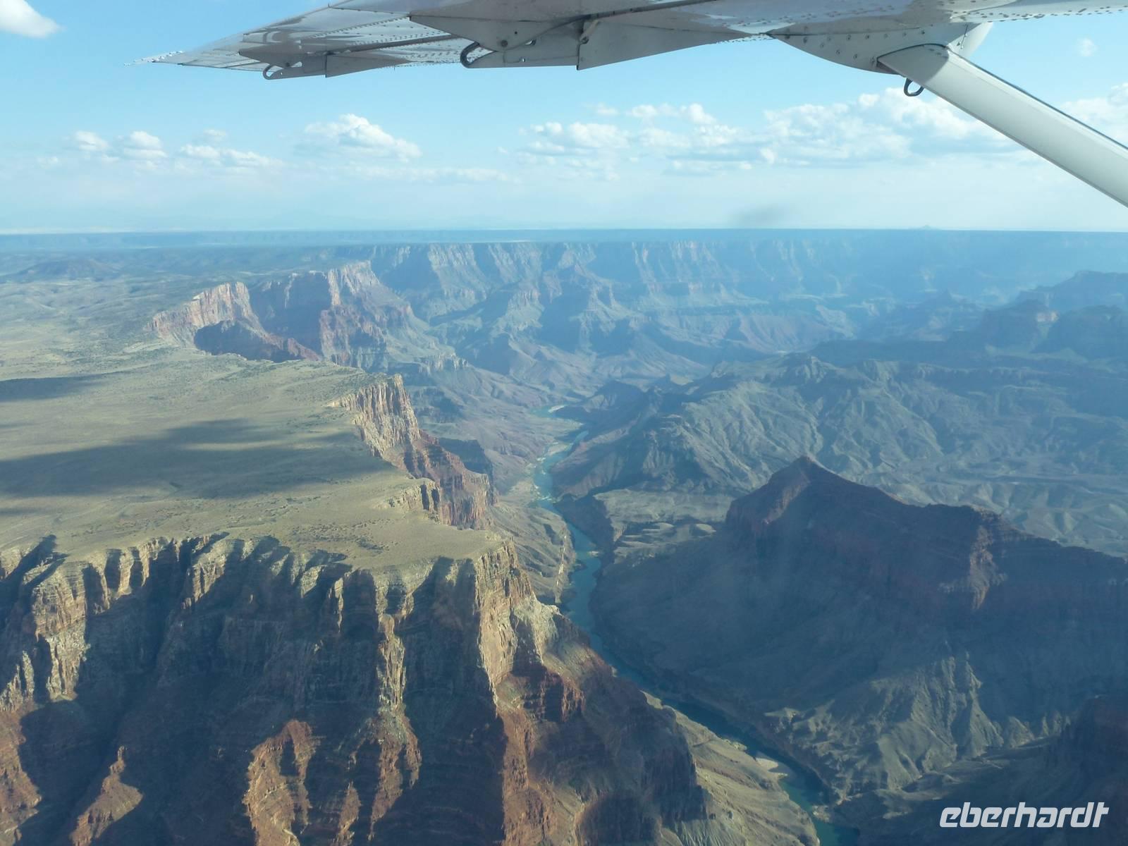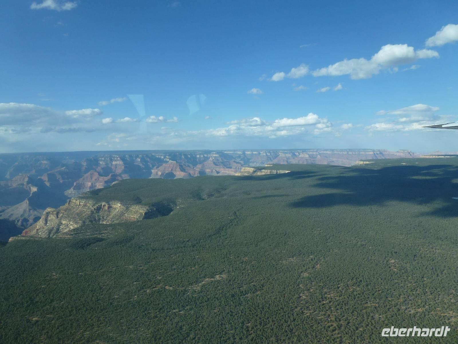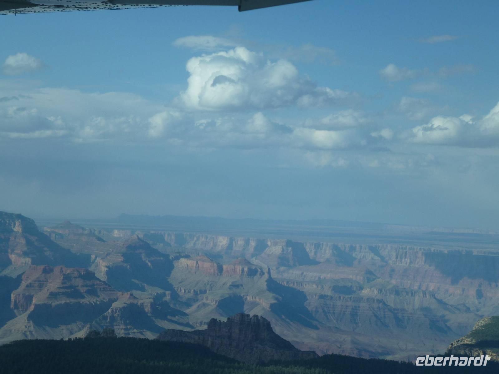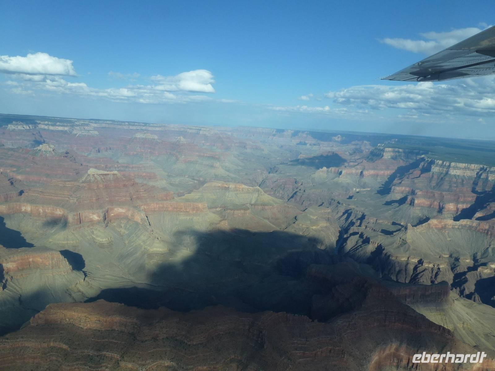 Nach der beeindruckenden Natur gestern, steigt heute der Adrenalinspiegel, denn es erwartet uns ein absolutes Highlight der Reise - der berühmte Grand Canyon. Doch bis wir da sind, haben wir noch einige Kilometer zu schaffen. Nach dem Frühstück geht es auch gleich los und in bewährter Form überbrückt Janny die Zeit mit Wissenswertem, meist verpackt in einer lustigen Anekdote aus ihrer längjährigen Reiseleitertätigkeit. Über Kanab, aufgrund der zahlreichen Dreharbeiten vor allem für Western "Little Hollywood" gennant und vorbei an etlichen Rinderzuchtfarmen erreichen wir den ersten Fotostopp am Glen Canyon und Lake Powell. Der künstlich angestaute See trägt seinen Namen nach dem Landentdecker John W. Powell. Er ist hinter einer riesigen Mauer angestaut, hinter der so ein toller Blick auf den Glen Canyon frei wird. Wir durchfahren das kleien Städtchen Page und wegen einer Straßensperrung müssen wir einen kleinen Umweg fahren. Wir befinden uns inzwischen in Arizonaund mussten die Uhren noch eine weitere Stunde zurückstellen. Nun befinden wir uns mitten im Navajo- Gebiet, einer der zahlreichen - in dem Fall mit 250.000 "Mitgliedern" der größte - Indianerstämme der USA. Heutzutage leben die Indianer nach wie vor in Reservationen, allerdings sind die Zustände zu den Berichten in Europa aus früheren Tagen doch normalisiert. Gelegentlichentdecken wir am Straßenrand noch originale "hogans", die traditionellen Lehm-Rundhäuser der Einheimischen, meist jedoch handelt es ich um ganz normale Siedlungen. Genau zur Mittagszeit rasten wir in der Cameron Trade Post und die meisten von uns gehen auf Souvenirjagd. Kurz nach diesem Stopp erreichen wir den Eingang zum Grand Canyon Nationalpark und die Spannung steigt.allerdings hängen Regenwolken genau über uns und auch im Canyon wie wir bei den ersten Blicken auf die Schlucht erkennnen müssen. Erster Stopp ist für uns am Grand View und sofort zieht uns dieses eine der "7 Natur-Weltwunder" in seinen Bann. Mit dieser Gruppe stimmt im positiven Sinne irgendetwas nicht. Kaum steigen wir für die ersten Fotos vom Grand Canyon aus, zeigt sich die Sonne und das Wetter wird so schön wie wir es uns nur wünschen können. Wir wechslen zum Mathers Point, schießen dort ein Gruppenfoto und beginnen unsere einfache vier Kilometer lange Wanderung entlang des Südufers des Canyons. ATEMBERAUBEND schön und unvorstellbar groß! Wir genießen die Bewegung in vollen Zügen und langsam aber sicher nähert sich für 20 von 24 Gästen der Höhepunkt des Tages. Don bringt uns zum Airport Grand Canyon und dort erwarten uns Cesnas für einen Panorama-Rundflug über den Canyon. Einige sind doch aufgeregt, aber mit unseren freundlichen Piloten Ryan, Pete und Chris und bei diesem Wetter kann nichts mehr schief gehen. Das Erlebnis an sich lässt sich nicht in Worte fassen. Wir genießen die Ausblicke bei ruhigem Wetter und nach knapp 45 Minuten erreichen wir alle wohlbehalten den Boden. Es war UNGLAUBLICH schön - wirklich ein Grand(ioser) Canyon. Euphorisert fahren wir zum Hotel und genießen ein köstliches Buffet bevor alle so ihrer Wege gehen.