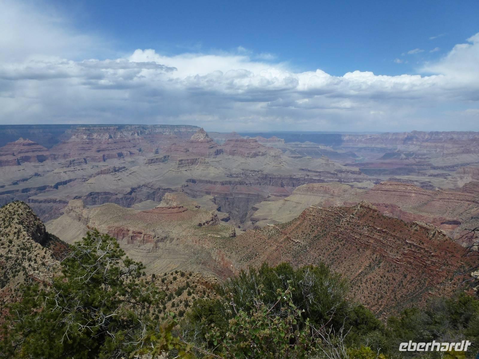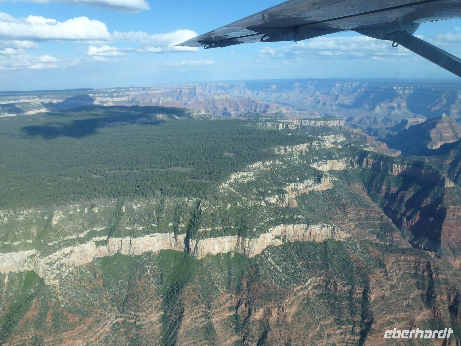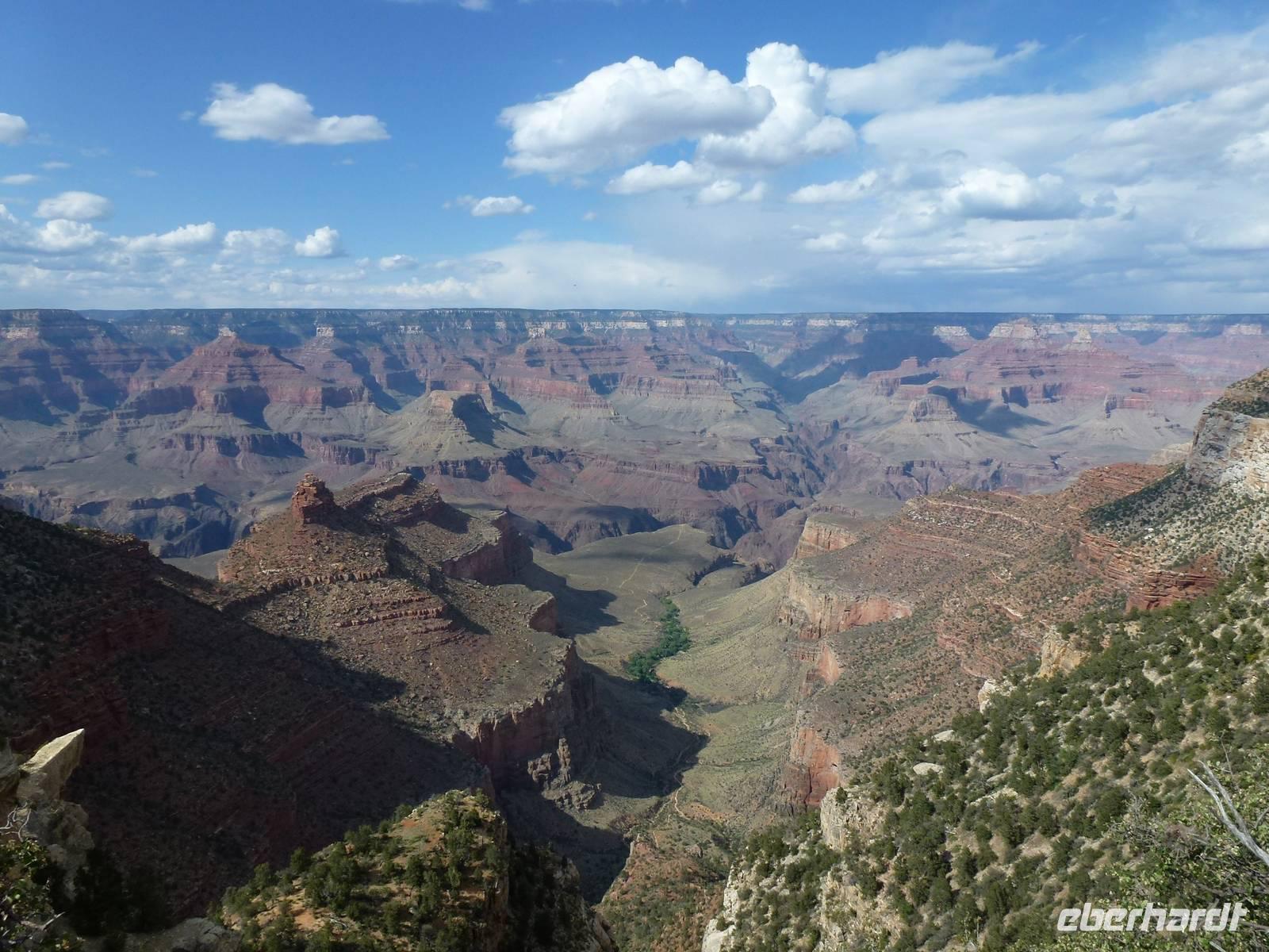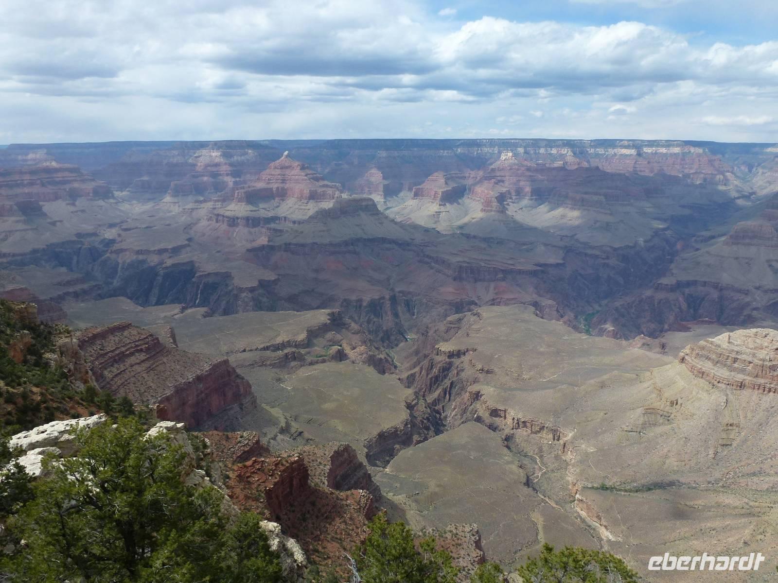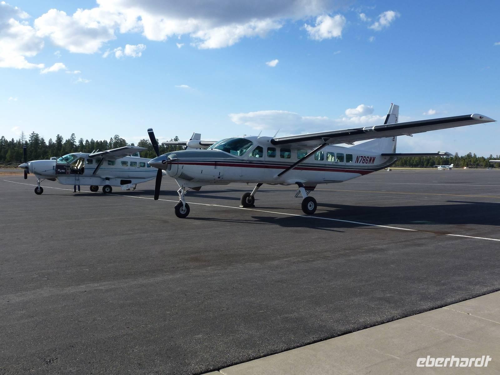 Nach der beeindruckenden Natur gestern, steigt heute der Adrenalinspiegel, denn es erwartet uns ein absolutes Highlight der Reise - der berühmte Grand Canyon. Doch bis wir da sind, haben wir noch einige Kilometer zu schaffen. Nach dem Frühstück geht es auch gleich los und in bewährter Form überbrückt Janny die Zeit mit Wissenswertem, meist verpackt in einer lustigen Anekdote aus ihrer längjährigen Reiseleitertätigkeit. Über Kanab, aufgrund der zahlreichen Dreharbeiten vor allem für Western "Little Hollywood" gennant und vorbei an etlichen Rinderzuchtfarmen erreichen wir den ersten Fotostopp am Glen Canyon und Lake Powell. Der künstlich angestaute See trägt seinen Namen nach dem Landentdecker John W. Powell. Er ist hinter einer riesigen Mauer angestaut, hinter der so ein toller Blick auf den Glen Canyon frei wird. Wir durchfahren das kleien Städtchen Page und wegen einer Straßensperrung müssen wir einen kleinen Umweg fahren. Wir befinden uns inzwischen in Arizonaund mussten die Uhren noch eine weitere Stunde zurückstellen. Nun befinden wir uns mitten im Navajo- Gebiet, einer der zahlreichen - in dem Fall mit 250.000 "Mitgliedern" der größte - Indianerstämme der USA. Heutzutage leben die Indianer nach wie vor in Reservationen, allerdings sind die Zustände zu den Berichten in Europa aus früheren Tagen doch normalisiert. Gelegentlichentdecken wir am Straßenrand noch originale "hogans", die traditionellen Lehm-Rundhäuser der Einheimischen, meist jedoch handelt es ich um ganz normale Siedlungen. Genau zur Mittagszeit rasten wir in der Cameron Trade Post und die meisten von uns gehen auf Souvenirjagd. Kurz nach diesem Stopp erreichen wir den Eingang zum Grand Canyon Nationalpark und die Spannung steigt.allerdings hängen Regenwolken genau über uns und auch im Canyon wie wir bei den ersten Blicken auf die Schlucht erkennnen müssen. Erster Stopp ist für uns am Grand View und sofort zieht uns dieses eine der "7 Natur-Weltwunder" in seinen Bann. Mit dieser Gruppe stimmt im positiven Sinne irgendetwas nicht. Kaum steigen wir für die ersten Fotos vom Grand Canyon aus, zeigt sich die Sonne und das Wetter wird so schön wie wir es uns nur wünschen können. Wir wechslen zum Mathers Point, schießen dort ein Gruppenfoto und beginnen unsere einfache vier Kilometer lange Wanderung entlang des Südufers des Canyons. ATEMBERAUBEND schön und unvorstellbar groß! Wir genießen die Bewegung in vollen Zügen und langsam aber sicher nähert sich für 20 von 24 Gästen der Höhepunkt des Tages. Don bringt uns zum Airport Grand Canyon und dort erwarten uns Cesnas für einen Panorama-Rundflug über den Canyon. Einige sind doch aufgeregt, aber mit unseren freundlichen Piloten Ryan, Pete und Chris und bei diesem Wetter kann nichts mehr schief gehen. Das Erlebnis an sich lässt sich nicht in Worte fassen. Wir genießen die Ausblicke bei ruhigem Wetter und nach knapp 45 Minuten erreichen wir alle wohlbehalten den Boden. Es war UNGLAUBLICH schön - wirklich ein Grand(ioser) Canyon. Euphorisert fahren wir zum Hotel und genießen ein köstliches Buffet bevor alle so ihrer Wege gehen.