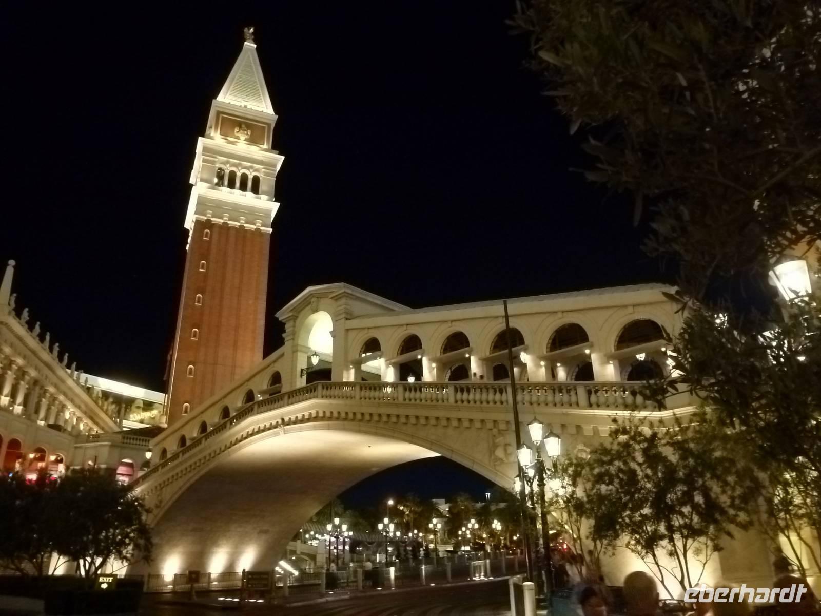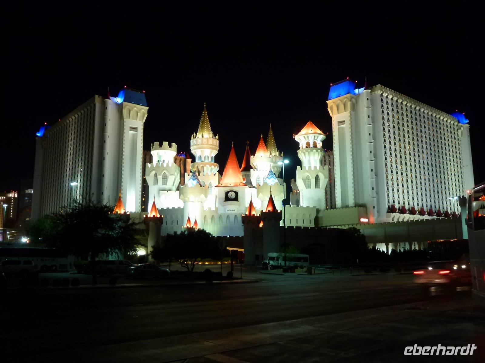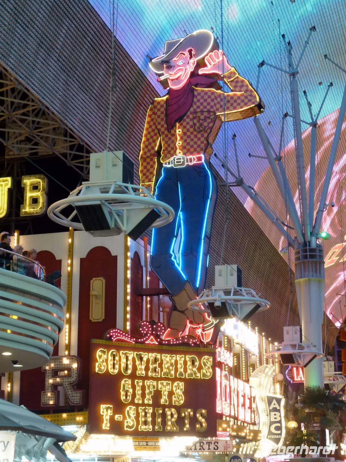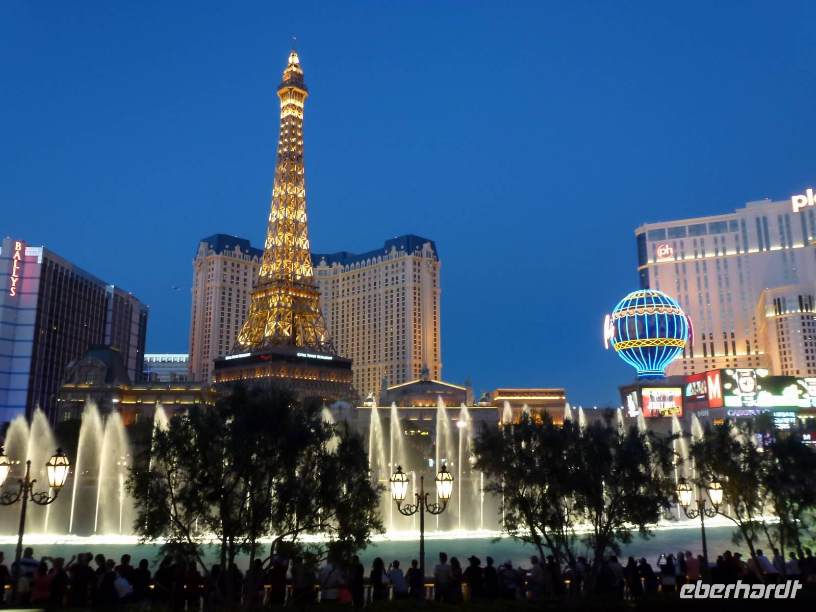 Nach dem Frühstücksbuffet - reichhaltige Auswahl aber bei der Vielzahl an Touristen nicht optimal organisiert - verlassen wir die Region des Grand Canyon und starten zu unserem Trip nach Las Vegas. Also nur noch schnell zum Bankautomat gehen Ein Kulturschock wahrscheinlich nach unseren letzten Tagen in der wunderbaren Natur... Unser erster Stopp für heute lässt das Herz der heimlichen Rocker unter uns höher schlagen. Wie einst Dennis Hopper als Easy Rider fühlen wir uns auf einem kleinen Stück der Route 66, die wir im Gebiet von Seligman - einer von deutschen Auswanderern gegründeten Siedlung - befahren. Die Route 66 wurde 1926 eröffnet und war damals die einzige richtige Ost-West-Verbindung in den USA. Heute hat sie leider kaum noch Bedeutung und wurde von großen Interstate-Highways abgelöst. Unsere Route führt uns über Kingman weiter in Richtung Nevada. Durch Wüstengebiete und begleitet von der einen oder anderen kleinen Windhose - gar kein Vergleich zu den aktuell in Texas, Kansas und Oklahoma wütenden Tornados - erreichen wir den größten Staudamm der USA, den Hoover-Dam. Von erreichen kann man vielleicht nicht sprechen, wir können aus der Entfernung einen Blick darauf werfen, für einen echten Besuch muss man sich anmelden. Unsere Reiseleiterin Janny will es trotzdem probieren, aber wegen unserer Koffer im Bus lässt man uns an der Sicherheitskontrolle nicht durch. So bleibt uns nur ein Abstecher zum Aussichtspunkt mit wunderbarem Blick auf den Lake Mead. Wir fahren weiter und dann ist es soweit: die Silhouette von Las Vegas taucht am Horizont auf und zu Led Zeppelins Klängen „Viva Las Vegas" rollen wir ins Spielerparadies ein. Jährlich 38 (!) Millionen Besucher füllen die gut 130.000 Zimmer der Wüstenstadt, hauptsächlich natürlich in den Themenhotels, die den Glauben an sinnvollen Einsatz von Geldern manchmal zweifeln lassen. Wir sind überwältigt und zwischen der Skyline von New York, am Eiffelturm vorbei, entlang des Canale Grande mit echten Gondolieri und am Ritterschloss Excalibur vorbei, fahren wir auf unser Hotel Luxor zu, eine ägyptische Pyramide mit einer Riesen-Sphinx und einem Obelisken als Wahrzeichen. Die ersten 20 Minuten im Hotel sind von Staunen, Kopfschütteln und der Angst, sich nicht zurecht zu finden, geprägt. Wir beziehen unsere Zimmer in der Spitze der Pyramide und nutzen die Freizeit zur Erkundung unseres Hotels und zum Abendessen am ebenso überdimensionierten Buffet. Um 19 Uhr treffen wir noch einmal auf Janny - alle haben es geschafft - um auf eine abendliche Erkundungsfahrt in der Glitzerwelt zu gehen. Wir bestaunen die riesigen Hotel- und Casinoanlagen und stoppen als erstes am Bellagio, einigen sicherlich bekannt aus dem Film „Ocean's 11", der hier gedreht wurde. Wir bestaunen die Wasserspiel-Symphonie vor der Kulisse des Eiffelturms des Hotels Paris und fahren dann weiter zum Hotel Venetian, wo es neben Deckenmalereien von Raffael auch echte Kanäle im Hotelgelände gibt. Von der Rialtobrücke aus beobachten wir einen Vulkanausbruch vorm Hotel Mirage. Anschließend fahren wir weiter die Hauptstraße - den Strip - entlang und vorbei an unzähligen Hochzeits-Kapellen, teilweise auch als Drive-In-Kapelle, erreichen wir die Altstadt, das ursprüngliche Las Vegas, rund um Fremont-Street. Hier ist eine Fußgängerzone komplett mit einer LED-Wand überspannt und abends ist hier jede Menge los. Unzählige Lichter und Live-Musik, verrückte Typen und die Besucher der Stadt verleihen der Fremont Street am Abend einen eigenen Charme. Nun geht es zurück ins Hotel und einige trauen sich an eine der zahllosen Slot-Maschinen... einige verlieren, aber wir haben auch Gewinner!!! Spät - oder je nach Sichtweise früh - legen wir uns dann schlafen und freuen uns auf einen weiteren Tag Las Vegas!