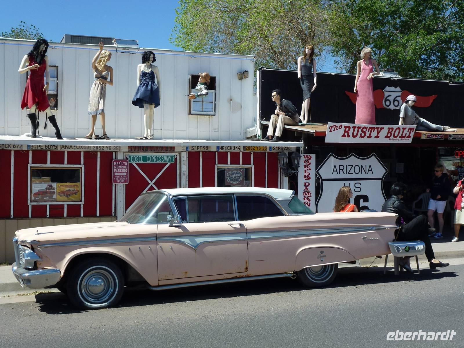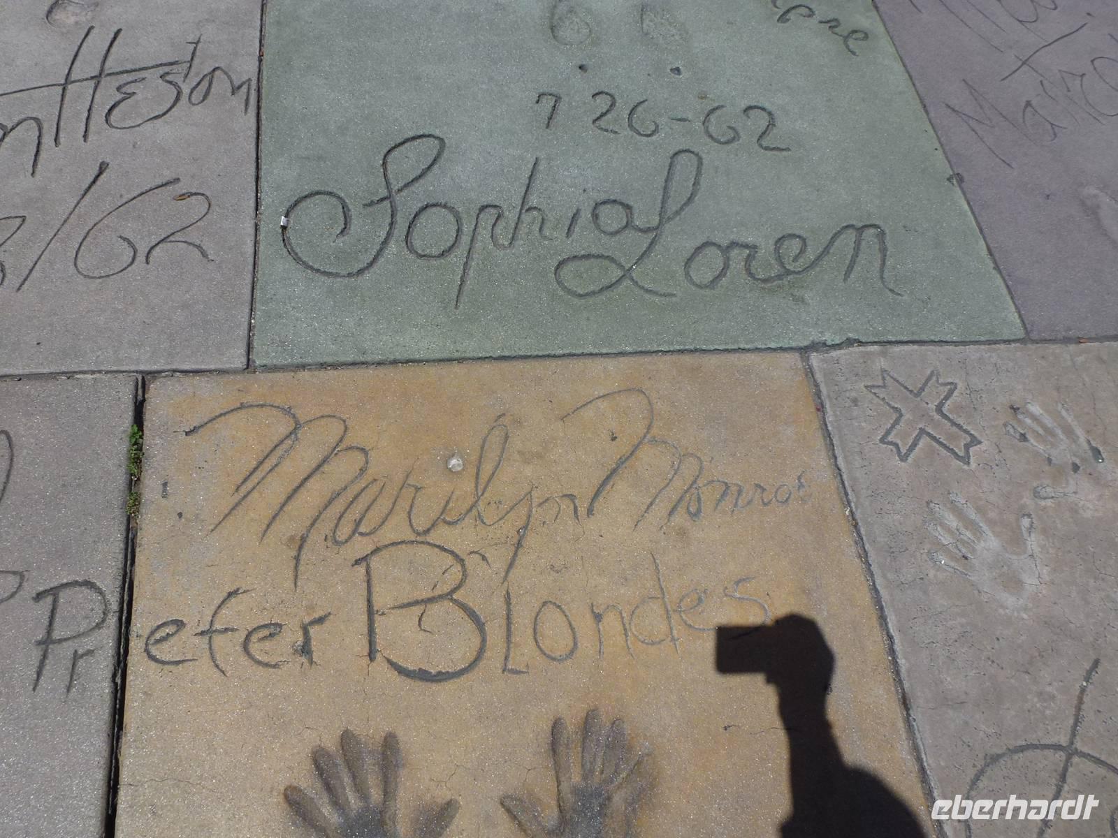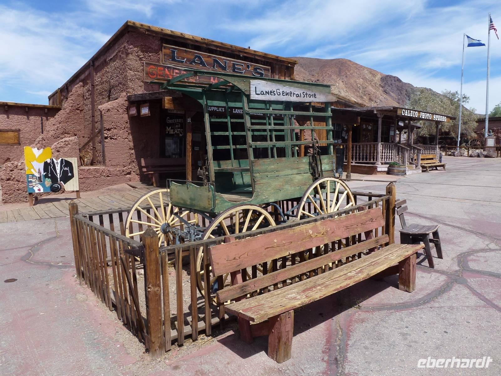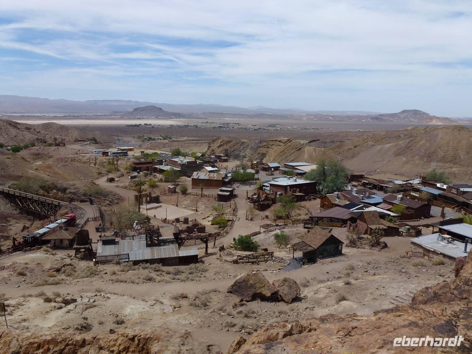 Auf geht es in den Sunshine State Kalifornien, obwohl wir gestern im Death Valley Nationalpark ja den Bundesstaat bereits schon mal erreicht hatten. Wir durchfahren heute Teile der Mojave-Wüste und unser erster Stopp findet in der Western-Geisterstadt Calico statt. Hier haben wir 1 Stunde Zeit und können in das Wild-West-Leben des vergangenen Jahrhunderts eintauchen. Neben vielen Gebäuden aus dieser Zeit, die alle begehbar sind, bietet die Stadt eine kleine Eisenbahn, den Besuch der alten Silber-Mine oder auch die Möglichkeit zum Goldwaschen. Zuerst laufen wir aber mitten in eine echte Schiesserei. die glücklicherweise am Ende glimpflich ausgeht. Wir erkunden die alte Schule und suchen nach passenden Andenken, bevor wir unseren Weg durch die Mojave-Wüste und später die San Bernadino-Bergkette in Richtung der "Welthauptstadt des Filmes" fort. Gegen 14 Uhr erreichen wir Los Angeles und bevor wir auf unserer Stadtrundfahrt das erste Mal aussteigen, erleben wir eine kleine Schrecksekunde. Angeblich soll unser Fahrer Don einer anderen Verkehrsteilnehmerin den Spiegel abgefahren haben. Niemand im Bus hat was gesehen und auch am Bus sind keine Spuren zu erkennen. Dies stellt auch der hinzugerufene Polizist fest und Don kann normal weiterfahren. Wir sind inzwischen in Hollywood gelandet und suchen auf dem Walk of Fame unsere Lieblingsstars. Insgesamt geht es in Hollywood oder zumindest vorm historischen Grauman's Theater sehr hektisch zu, so dass wir unsere nächste Station auf der Rundfahrt - den Rodeo Drive in Beverly Hills - als sehr beruhigend empfinden. Wir erreichen das Wohngebiet über den Sunset Boulevard und fühlen uns ein bisschen wie Stars beim Window-Shoppen in dem Gebiet, wo sonst nur die Reichen und Bekannten einkaufen gehen. Als letzten Ausstiegspunkt auf der Fahrt hat sich Janny für die Olvera Street entschieden, das Gebiet in Los Angeles Downtown, wo die Stadt gegründet wurde. Anschließend checken wir in unserem Luxushotel im Zentrum der Stadt ein. Nur ein kurzer Stopp und schon geht's weiter in Richtung Abendessen in einem marokkanisch anmutenden Restaurant, wo uns ein ganz vorzügliches Steak erwartet. Aber bevor wir in den Genuss des Fleisches kommen, zeigt uns Janny erst noch einmal L.A. von oben. Mit dem Lift im Hotel Westin Bonaventure gelangen wir ins Drehrestaurant im 35. Stock des Hauses, wo wir fantastische Ausblicke auf die Stadt genießen. Nach dem leckeren Abendbrot - wo wir im Übrigen zufällig auf eine andere Eberhardt-Reisegruppe treffen - halten wir nochmals für zwei Fotostopps auf dem Weg zum Hotel. Das war Los Angeles im Schnelldurchlauf, denn morgen geht es schon weiter...