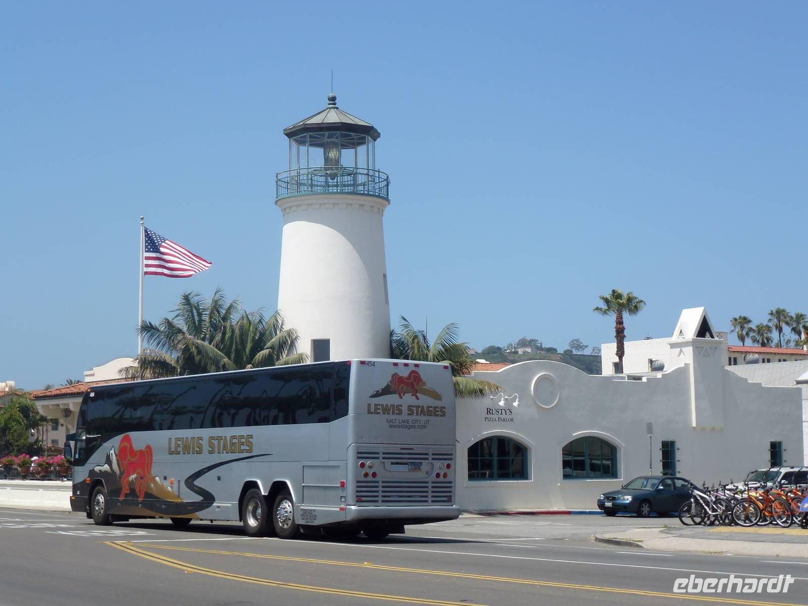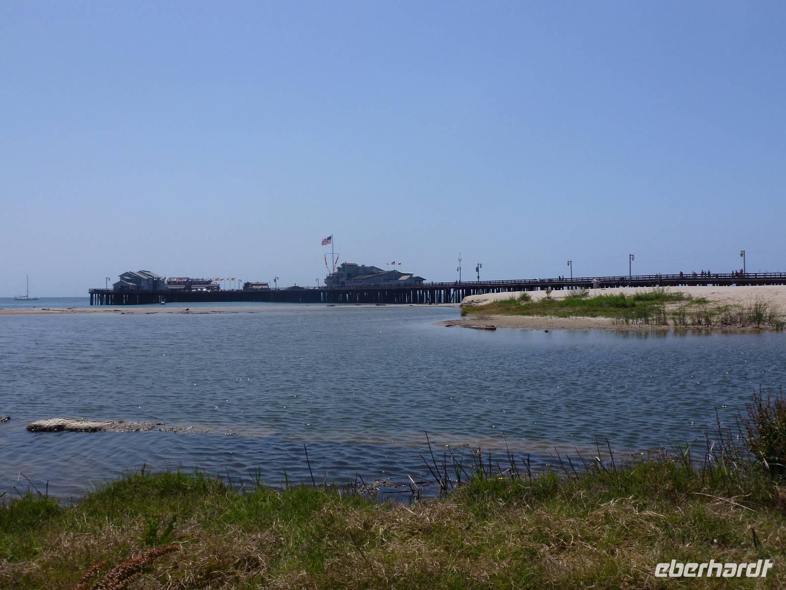 Nach dem Frühstück verabschieden wir uns von Los Angeles, wobei unser Weg beim Erstkontakt mit einem Highway-Stau in Richtung Pazifik leicht verzögert wird. Irgendwann sehen wir zum ersten Mal die breiten Sandstrände der Filmstadt und die Wellen des Pazifiks. Über die vor allem wegen der Zweitwohnsitze der Stars & Sternchen bekannten Vororte LA's Santa Monica und Malibu Beach - hier können wir jetzt sogar behaupten, wir waren in Malibu shoppen... auch wenn es nur Lebensmittel waren - fahren wir nach Santa Barbara. Die Wolken, die uns am Morgen noch in Los Angeles begrüßten, sind inzwischen verflogen und so halten wir bei blauem Himmel Ausschau nach der Brandung und ob wir vielleicht den einen oder anderen Rettungsschwimmer á la Baywatch erkennen können. Im Wasser tummeln sich übrigens nur Surfer, zum Baden hat sich noch niemand gefunden. Der nächste Halt findet dann in Santa Barbara statt. Hier haben wir ausreichend Freizeit, um die Sonne zu genießen, die Füße in den Pazifik zu stecken oder zu Mittag zu essen. Wir schießen Bilder, wandeln auf der Seebrücke und freuen uns über Sonnenstrahlen bei einer leichten Meeresbrise. Anschließend geht es zurück auf den Highway 101, der hier Pacific Coast Highway heißt. Wir stoppen noch einmal auf unserer Rekordetappe, bevor wir unseren heutigen Übernachtungsort Monterey erreichen. Die Stadt lebte einst vom Fischfang und der Herstellung von Ölsardinen und war sogar mal Hauptstadt Kaliforniens (aktuell ist dies übrigens Sacramento). Ein wenig Freizeit nach dem Hotelbezug und dann geht es ab ins Restaurant Crazy Horse, wo uns ein leckerer Salat, wie bereits vor 6 Tagen gewählt Lachs oder Rinderbraten und ein Eis erwarten. Nach der Rückkehr ins Hotel beginnen die ersten mit Koffer packen, da der morgige Tag nochmal richtig voll gepackt ist und kaum Zeit bleiben wird...
