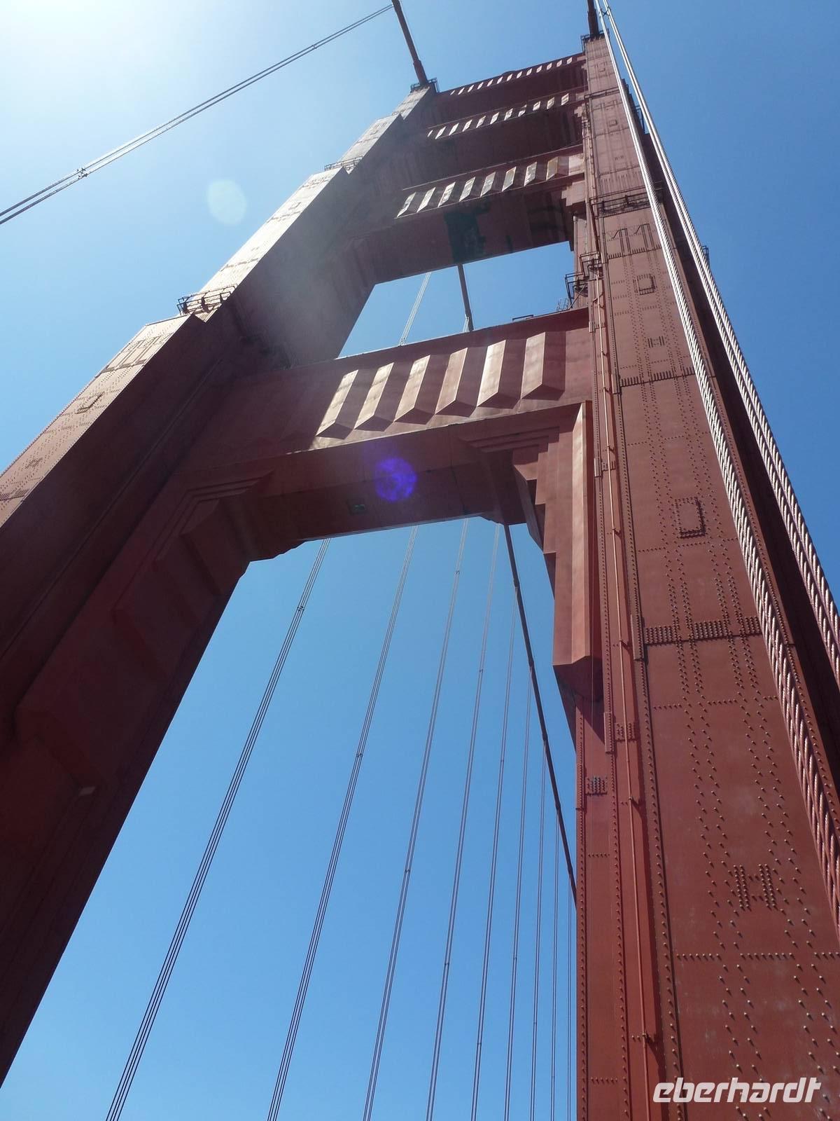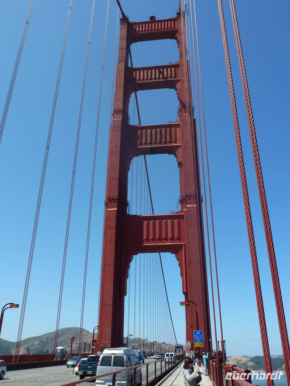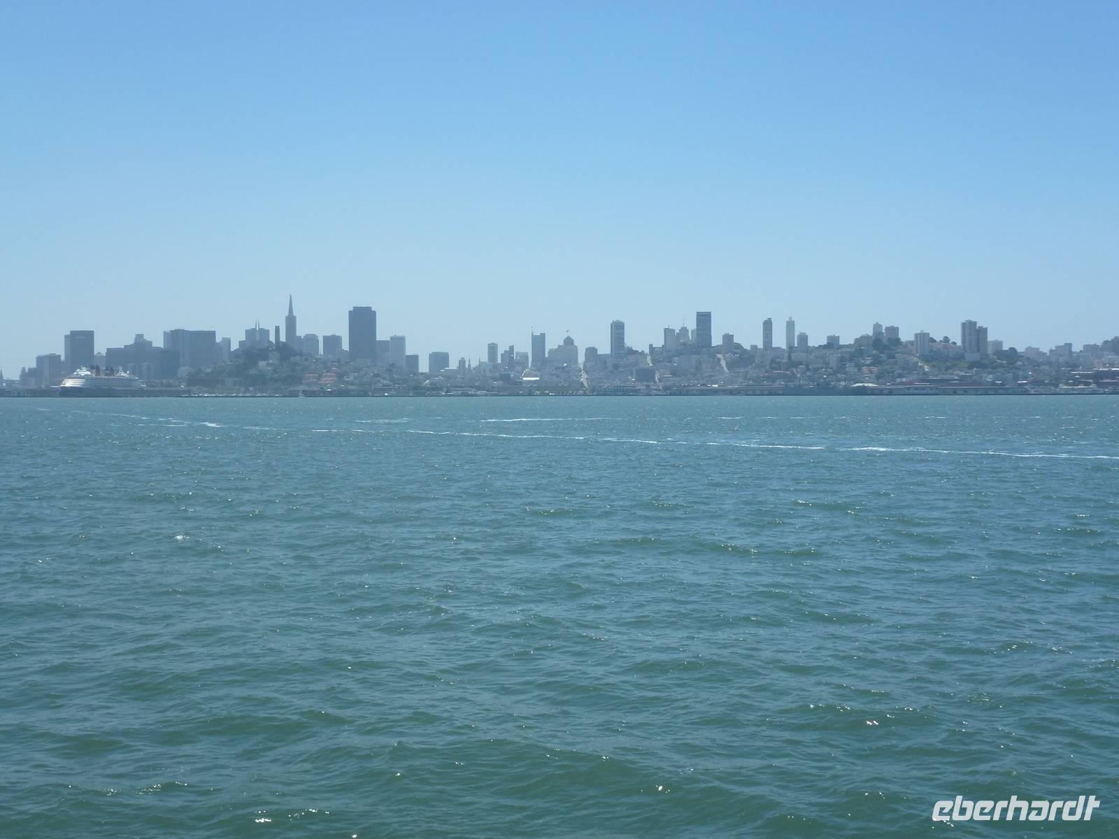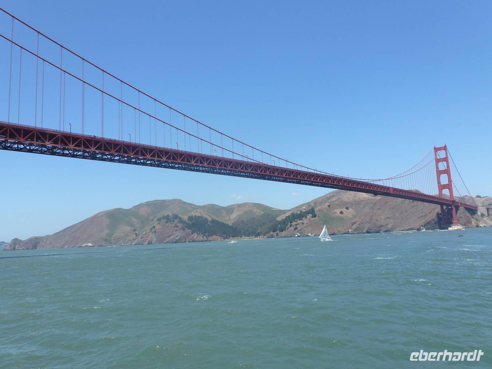 Gegen Ende der Reise drehen wir besichtigungstechnisch noch einmal so richtig auf. Volles Programm bis in die späten Abendstunden erwartet uns und das heißt zuerst mal zeitig aufstehen und zeitig frühstücken... Beim Frühstück fühlen wir uns heute sehr sicher, schließlich werden wir von einer ganzen Kompanie US-Soldaten „bewacht". Unseren Tag beginnen wir dann mit der Fahrt auf dem 17-Mile-Drive, einer Privatstraße an der Pazifikküste. Hier im Gebiet zwischen Monterey und Carmel war mal ein gewisser Clint Eastwood Bürgermeister und heute ist es ein Paradies für Golfer. Fünf Golfplätze - teilweise sogar als Ausrichter für die US Open - wurden in die Landschaft eingepasst und vor der Kulisse der wildromantischen Küste lässt es sich sicherlich gut golfen. Wir interessieren uns aber mehr für die Landschaft und den Bird Rock, wo wir Kormorane und herum tollende Seehunde beobachten können. Vorbei am Drehort für Alfred Hitchcocks „Die Vögel" fahren wir dann zurück nach Monterey und genießen die Ausblicke vom Ocean View Boulevard bis wir das ursprüngliche Zentrum der Stadt, Cannery Row, erreichen. In den 50er und 60er Jahren stand die Ölsardinen-Industrie im Mittelpunkt Montereys und entlang des Hafens entstanden Dutzende von Verarbeitungsfabriken, die heute allerdings größtenteils ungenutzt leer stehen. John Steinbeck, der Autor von „Jenseits von Eden" hat die Geschichte der Stadt in seinem Buch „Die Straße der Ölsardinen" beschrieben. So jetzt bleibt aber keine Zeit, wir müssen die restlichen 100 Meilen von insgesamt 700 zwischen Los Angeles und San Francisco hinter uns bringen, damit wir auch alle Highlights zu sehen bekommen... Noch schnell ein paar „...flowers in your hair..." und die „...zerrissenen Jeans..." angezogen und wir können mit Udo Jürgens im Kopf und Scott McKenzie im Radio nach San Francisco rollen. Unterwegs passieren wir Silicon Valley, die Geburtsstätte von Unternehmen wie Google, Ebay oder Microsoft, und die berühmte Stanford University. Ein bisschen Stau und kurz vor dem Mittag haben wir die Stadt erreicht. Zuerst geht es zur einstündigen Bootsfahrt mit Umrundung der Gefängnis-Insel Alcatraz und Fahrt unter die Golden Gate Bridge.Unverzüglich starten wir danach mit der Stadtrundfahrt, die uns zu den berühmten Sehenswürdigkeiten wie Union Square, Transamerica-Pyramide und Chinatown führt. Dann ein absolutes Highlight für uns, die Golden Gate Bridge. Wir bekommen etwas Zeit, die drei Kilometer lange Brücke zu überwandern und dieses erhebende Gefühl zu genießen. Inzwischen wird es mit der geplanten Freizeit langsam knapp, aber diese Gruppe will alles mitnehmen was geht und so stoppen wir auf dem Weg zum Hotel noch an einer Station der berühmten Cable Cars. Die Gruppe nutzt die Gelegenheit und bewältigt die Strecke zum Hotel mit dem bekannten Wahrzeichen der Stadt, während uns Janny schon im Hotel eincheckt. Es wird eine gemütliche Fahrt, denn das berühmte Aufspringen ist nicht mehr erlaubt... Ein wenig Freizeit für ein paar letzte Einkäufe udn Entdeckungen bleibt dann aber doch noch, bevor es zum Abendessen am berühmten Pier 39 im Neptunes Palace geht. Standesgemäß gibt es zum Abschied Lachs oder Riesengarnelen und apropos Abschied - leider müssen wir heute schon Don, unserem Fahrer good bye sagen, er wird morgen nicht mehr dabei sein. Er hat uns immer sicher gefahren und wir hatten viel Spaß mit ihm. Für unsere Gruppe ist der Abend nach dem Essen aber noch nicht vorbei, denn ALLE haben noch eine ganz spezielle Lichterfahrt durch San Francisco gebucht. Zwei Limousinen erwarten uns am Restaurant und mit Limousinen meine ich die Stretch-Versionen eines Hummers, die uns durch die Lichter der Stadt über die Bay Bridge nach Treasure Island chauffieren. Dort angekommen genießen wir den fantastischen Blick auf die beleuchtete Skyline von San Francisco und ein Glas Sekt und stoßen auf eine gelungene Reise an. Noch einmal mit Scott McKenzies "San Francisco" im Ohr geht es leider und etwas wehmütig ins Hotel und langsam neigt sich unsere Erlebnistour dem Ende zu.