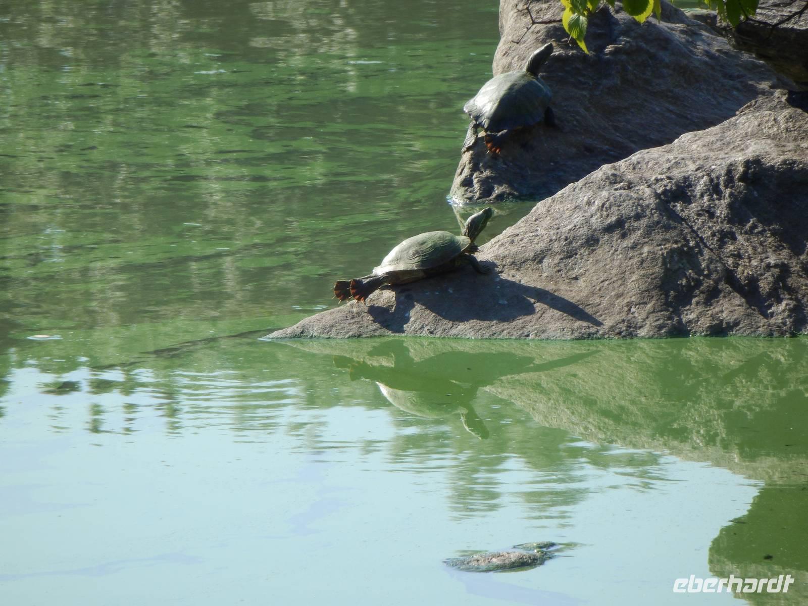 Nach einem amerikanischen Frühstücksbuffet empfing uns Hans zur Stadtrundfahrt durch die spannende Metropole. Manhattan zeigte sich mit blauem Himmel und 28 Grad. Wir fuhren mit unserem Bus die 8 Avenue entlang des Central Parks in den Norden Manhattans. Auf dem Weg stiegen wir in der Grünen Lunge der Stadt - dem Central Park - aus und besuchten das bekannte Lenon Denkmal. Bei einem kleinem Spaziergang gelangten wir an einen wunderschönen Teil des Parks - direkt an einen See mit toller Aussicht auf die Wolkenkratzer. Wir sahen auch die niedlichen Bewohner des Sees - die Schnappschildkröten, welche sich in der Sonne aalten. Nach vielen wundervollen Bildern, welche wir knipsen konnten, fuhren wir weiter in den Norden in den bekannten Stadtteil Harlem. Es ist ein wundervoller Stadtteil, den man unbedingt sehen muss. Es gibt über 300 Kirchen, wo man am Wochenende zu stimmungsvollen und leidenschaftlichen Gottesdiensten gehen kann. Dieser Teil Manhattans strahlt unheimlich viel Ruhe aus. Man findet hier die älteste Straße sowie das älteste Haus New Yorks. Dieses historische Bauwerk diente 1776 George Washington einige Wochen als Hauptquartier. Hans berichtete uns einiges: wer hätte gedacht, dass in Harlem mittlerweile nur noch 40 % dunkelhäutige Menschen leben.