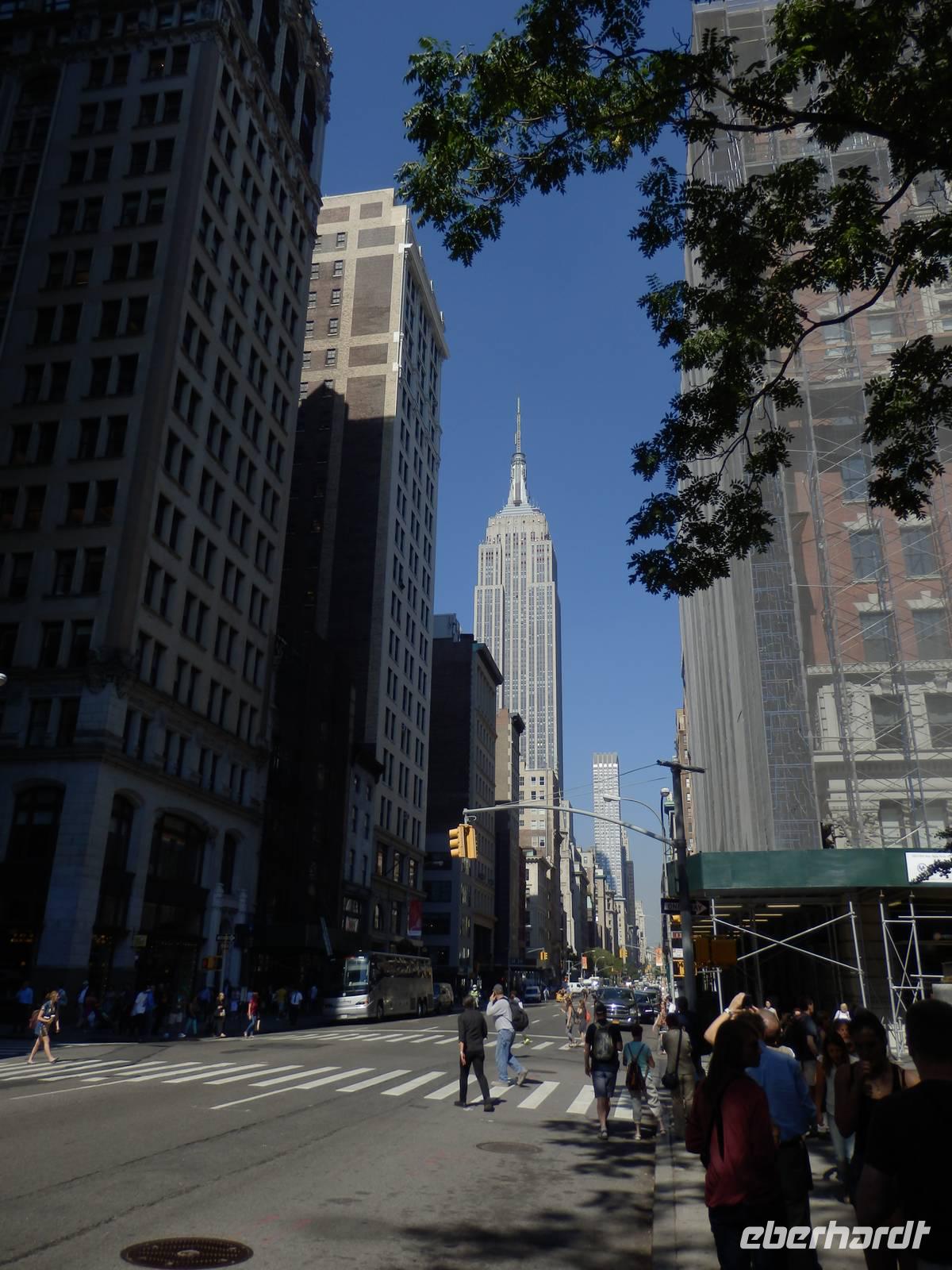 Am Flatiron Building, dem Bügeleisenhaus, hatten wir einen Fotostopp und konnten hier auch das Empire State Building sehr gut fotografieren. Mit so einem tollen blauen Himmel können die Bilder nur fantastisch werden.