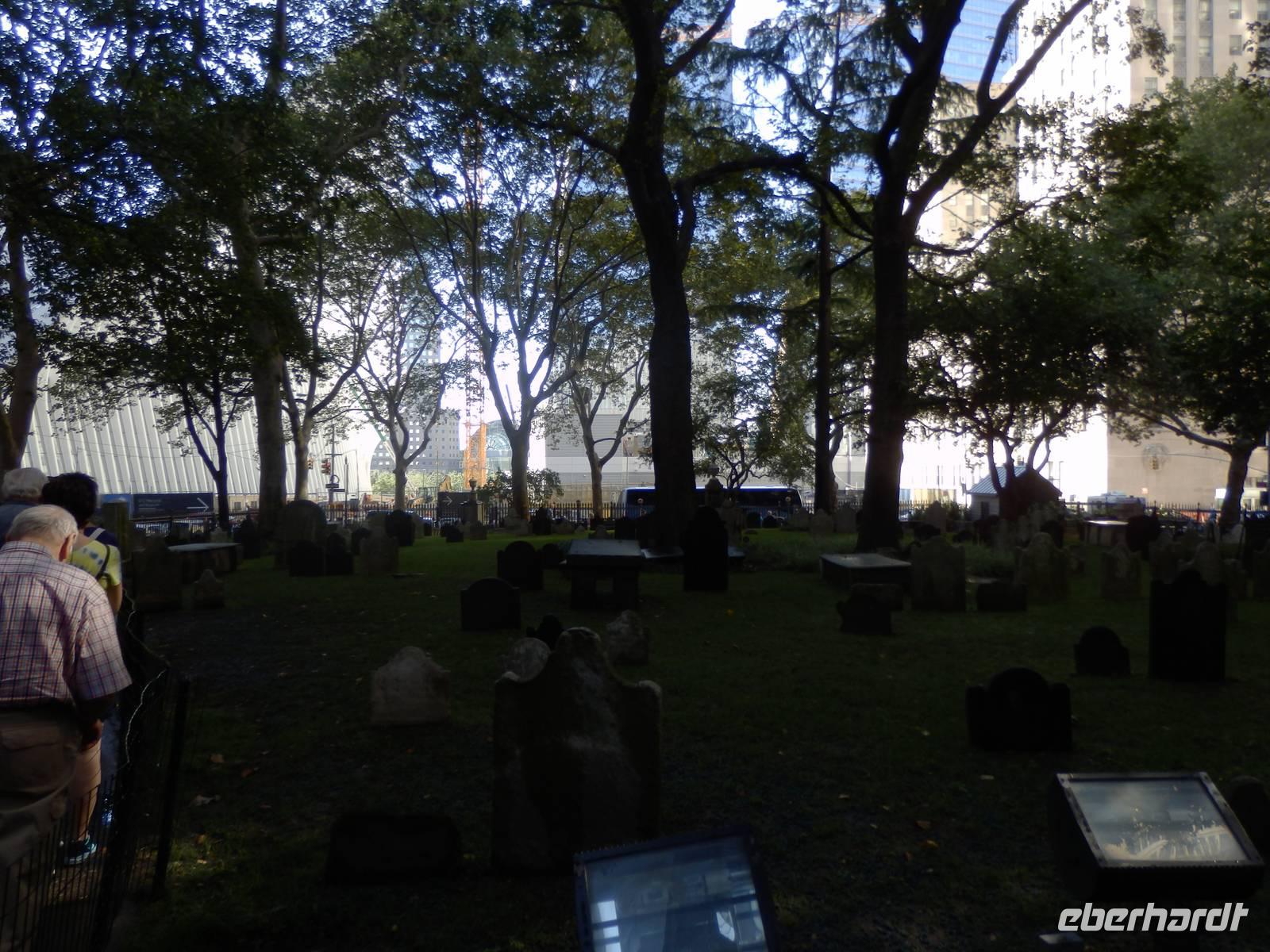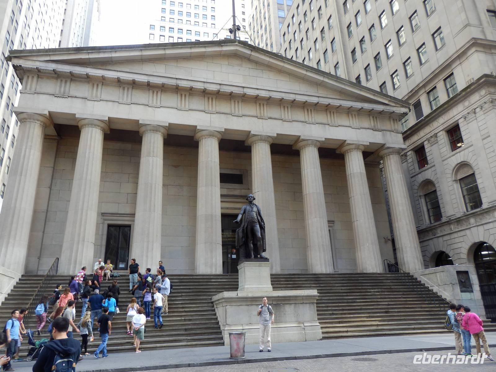 Unser Ausflug führte uns heute in den Süden Manhattans - zurück in den Financial District. Da dieser während der Stadtrundfahrt etwas zu kurz gekommen war, mussten wir diesen auf jeden Fall noch einmal besuchen. Mit der U-Bahn erreichten wir die Wall Street. Gemeinsam betrachteten wir die Börse sowie auch die Federal Hall, das erste Kapitolgebäude der Vereinigten Staaten von Amerika. Die davorstehende Statue von George Washington stand genau an der Stelle, wo auch der Präsident damals ernannt wurde. Weiter ging es zur Trinity Church - eine wirklich wunderschöne Kirche und eine der bekanntesten Kirchen New Yorks.