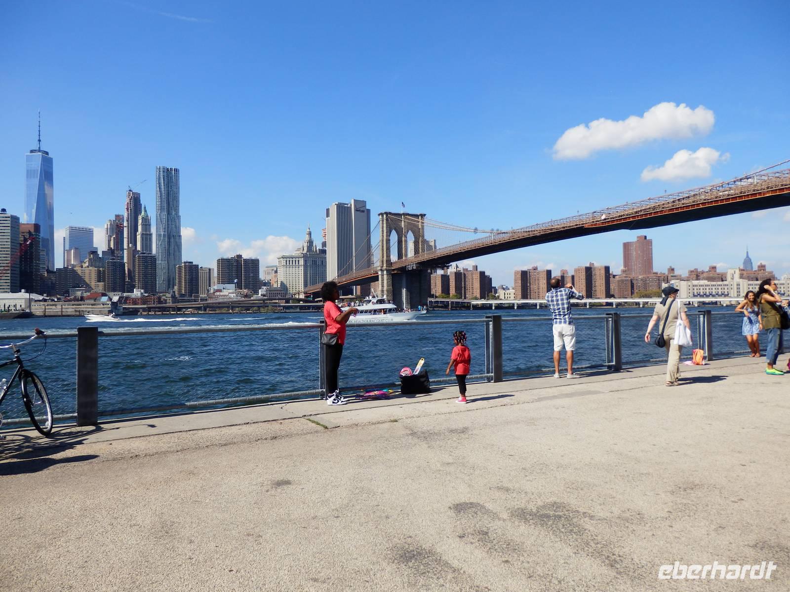 Mit der U-Bahn verliesen wir nun Manhattan und erreichten einen weiteren Stadtbezirk New Yorks - Brooklyn. Dieser Bezirk weist über 2,6 Millionen Einwohner vor und hat somit fast genauso viel wie Chicago. Unglaublich. In Brooklyn angekommen liefen wir zum Brooklyn Bridge Park. Hier gibt es die Brooklyn Bridge Icecream Factory mit dem besten Eis New Yorks. Natürlich musste dies probiert werden. Mit einem leckeren Eis oder auch einer vorzüglichen Zitronenlimonade erkundeten wir den Park. Die Aussicht auf die Skyline Manhattans machte einen sprachlos - es war wunderschön.