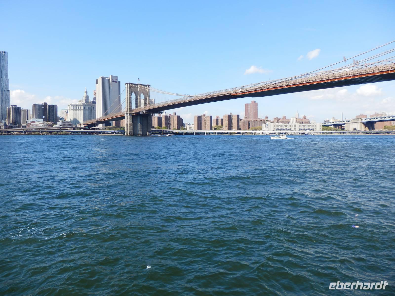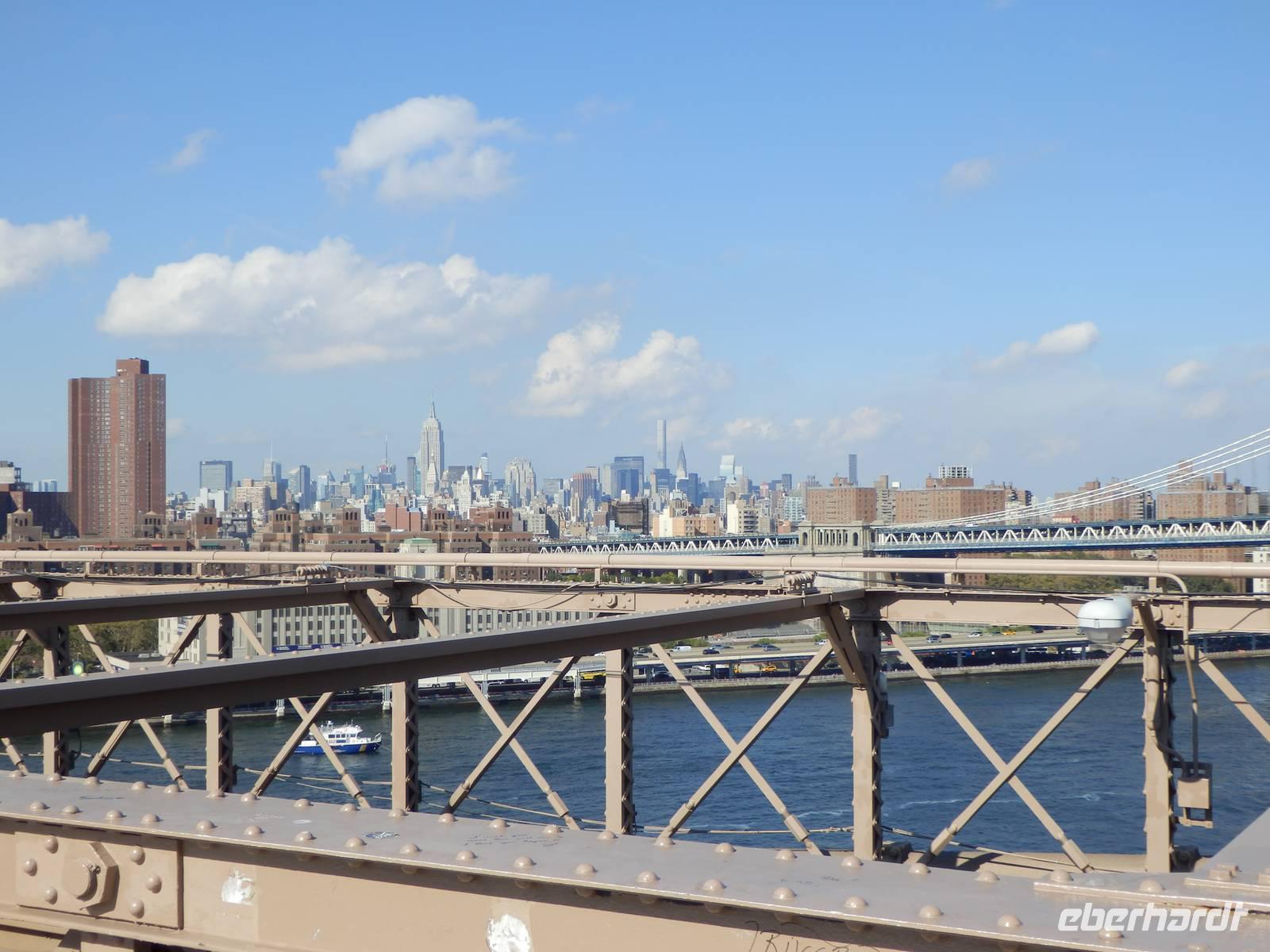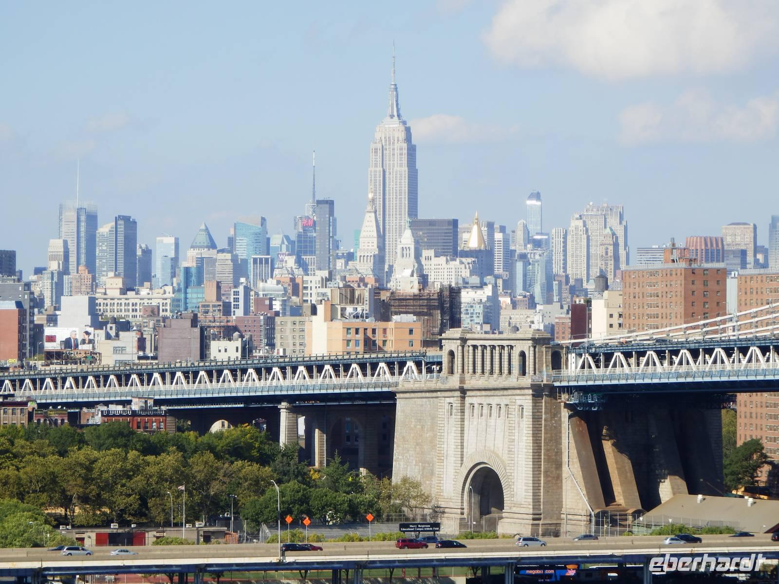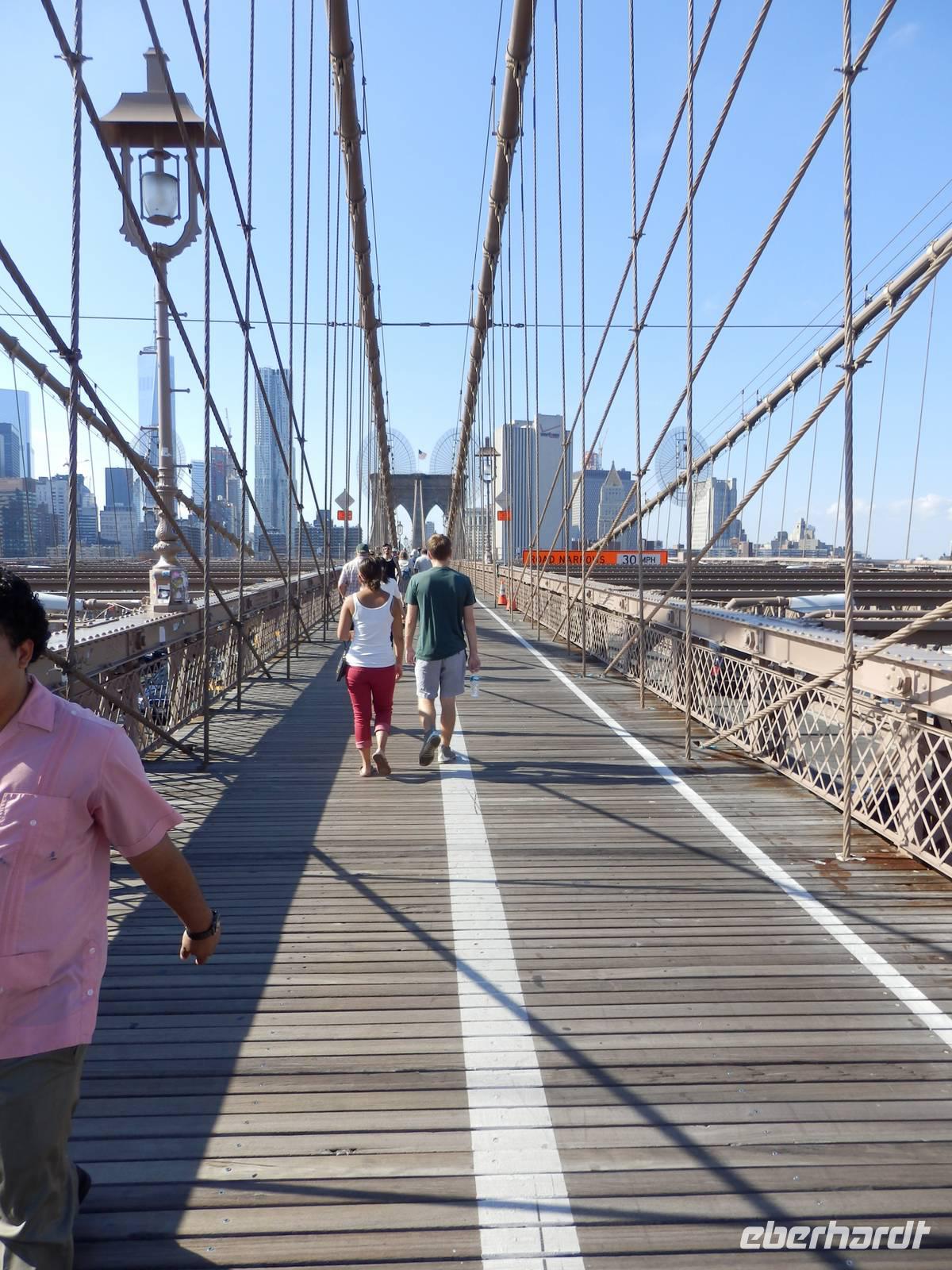 Wer in New York ist, muss über die Brooklyn Bridge laufen. Die fast zwei Kilometer lange Brücke verbindet Manhattan und Brooklyn. Der Spaziergang in Richtung Manhattan ist atemberaubend schön und wird mit wundervollen Fotomotiven der immer größer werdenden Skyline belohnt. In Manhattan angekommen sahen wir das Rathaus von New York sowie den