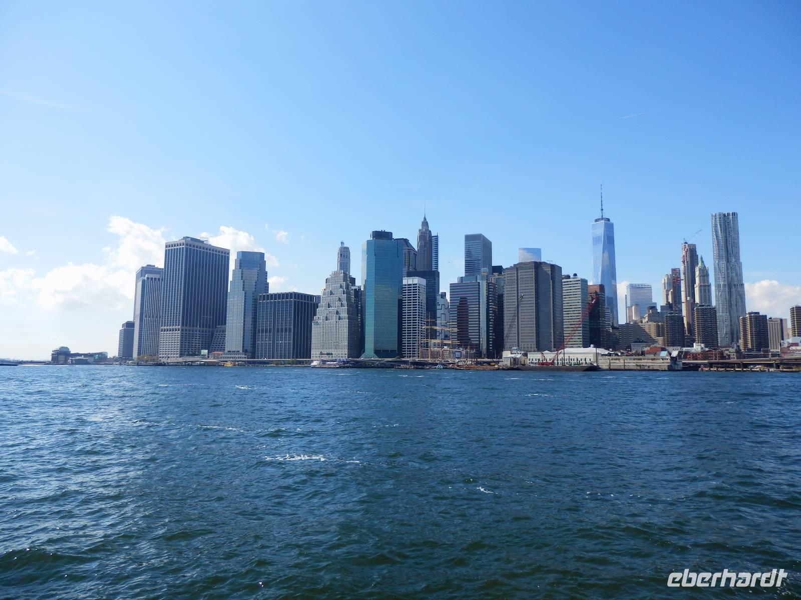 Nach den gewohnten Sicherheitskontrollen am Flughafen genossen wir einen ersten Snack im Flughafenrestaurant Cassis. Bei ersten Unterhaltungen lernten sich die Reisegäste näher kennen. Mit einer kleinen Verspätung hoben wir Richtung Frankfurt ab, wo uns noch zwei weitere Damen freudig erwarteten. Der Traum vieler Reisegäste schien wahr zu werden. Wir saßen im Flugzeug nach New York. Mit einem Airbus 380 flogen wir über den großen Teich und erreichten die Metropole nach ca. 8 Flugstunden. Leider streckte sich die Einreise in die USA sehr in die Länge. Aber auch dies sollte uns nicht aufhalten und die gute Laune nehmen. Unser örtlicher Reiseleiter Hans von Rittern empfing uns am Ausgang ganz herzlich und begrüßte uns in seiner Heimatstadt. Während der Busfahrt nach Manhattan erzählte er uns schon einiges Interessantes und Wissenswertes über die große Stadt mit ca. 9 Millionen Einwohnern und den 5 bekannten Stadtbezirken. Alle gehörten gespannt zu und freuten sich als die Skyline Manhattans zu erblicken war.