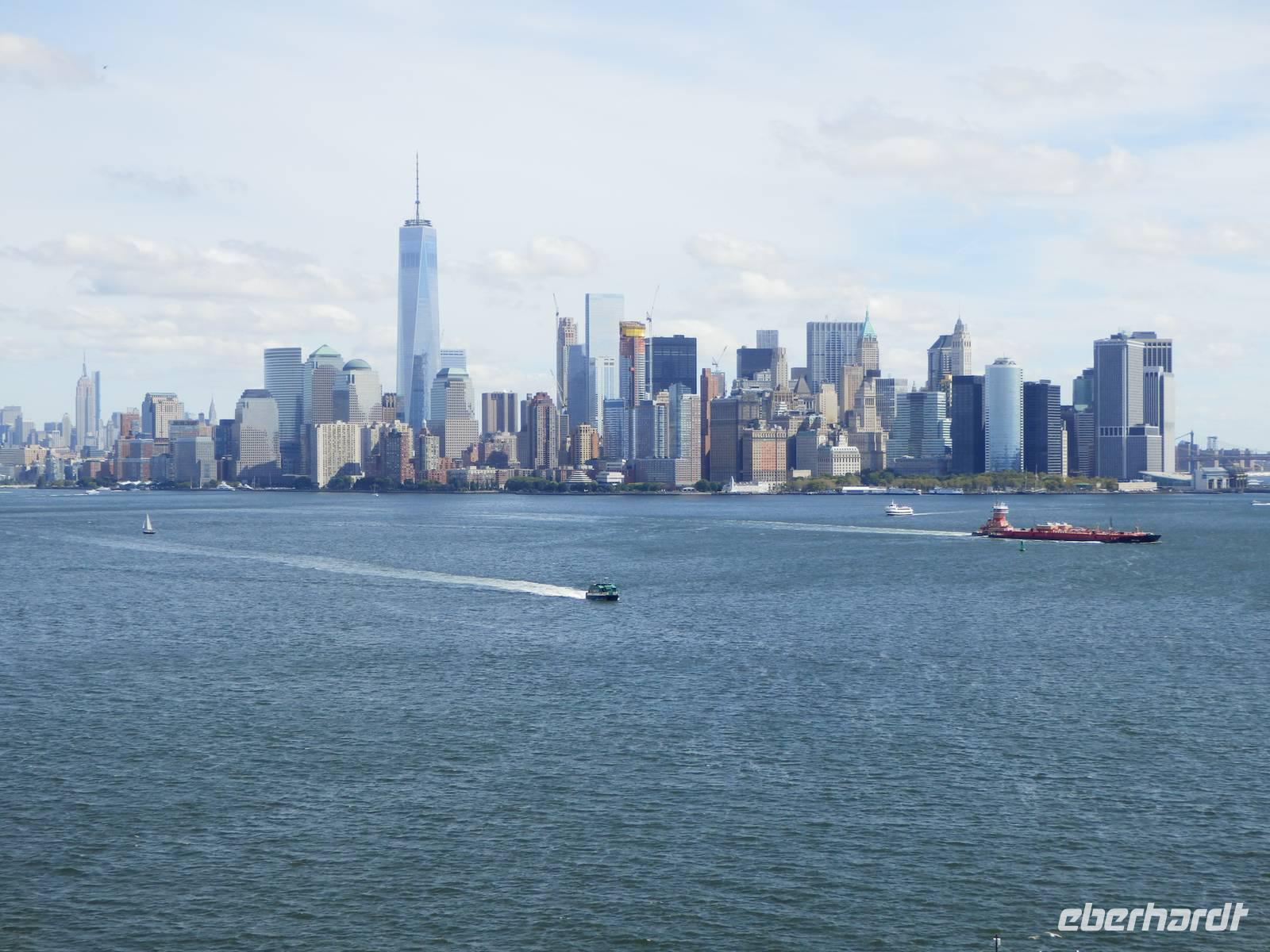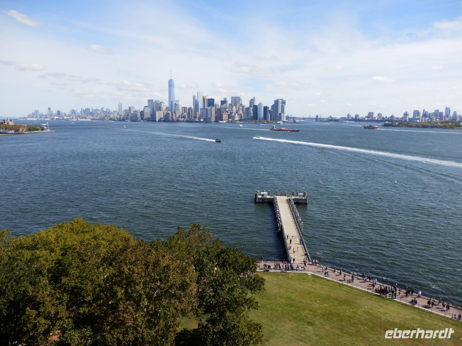 Der heutige Tag ging in den Süden Manhattans - in den Battery Park. Von hier gehen die Schiffe zur Freiheitsstatue und zum Einwanderermuseum. Wir freuten uns auf die weltbekannte Lady und bei wunderschönem Sonnenschein fuhren wir auf das Gelände von Liberty Island. Ausgestattet mit deutschen Audioguides konnte die Entdeckungstour beginnen. Wir hatten Tickets mit der Erlaubnis auf den Sockel zu gehen. Der Blick von der Freiheitsstatue war traumhaft und die Skyline wie immer gigantisch und unvorstellbar schön.