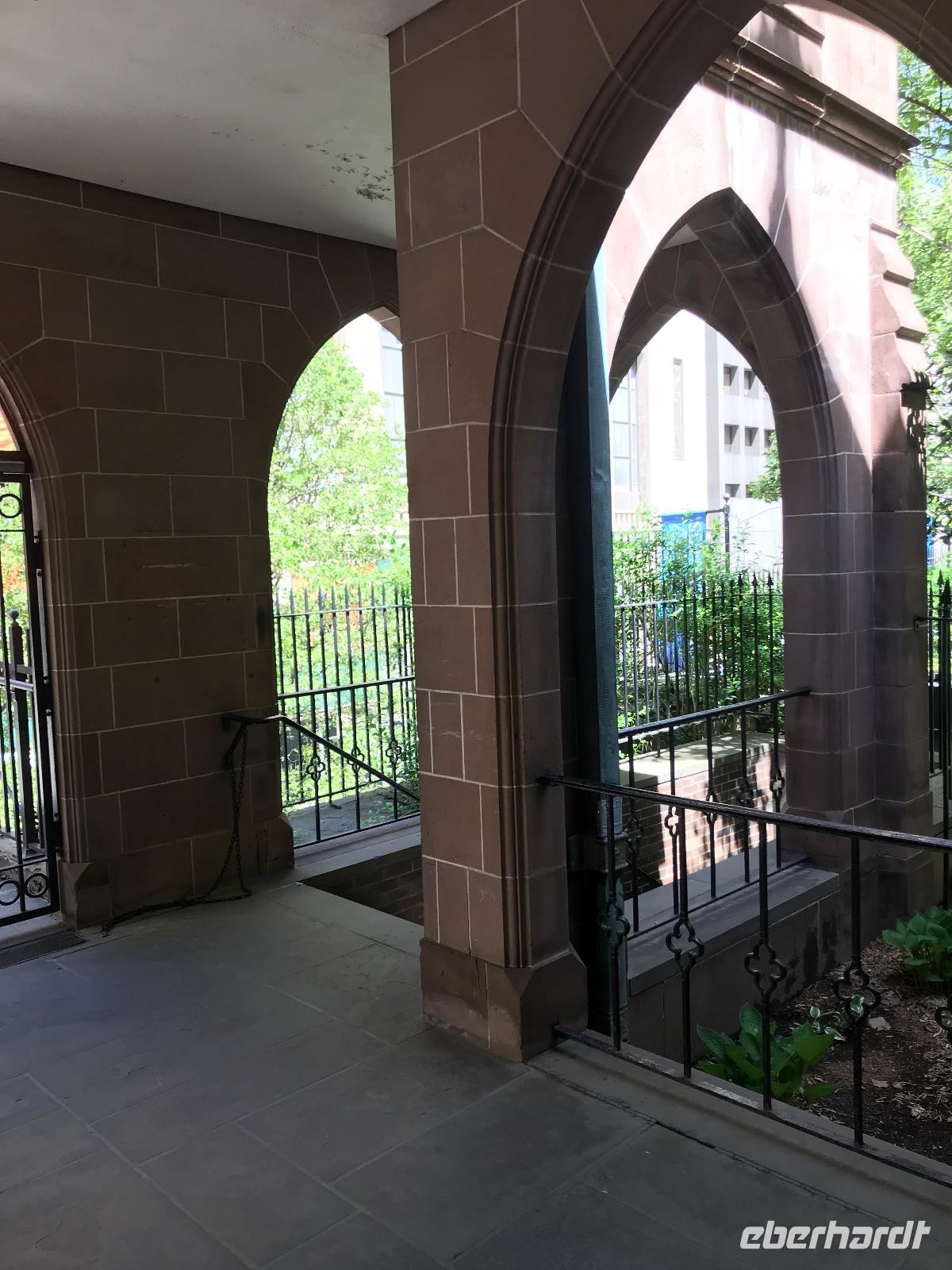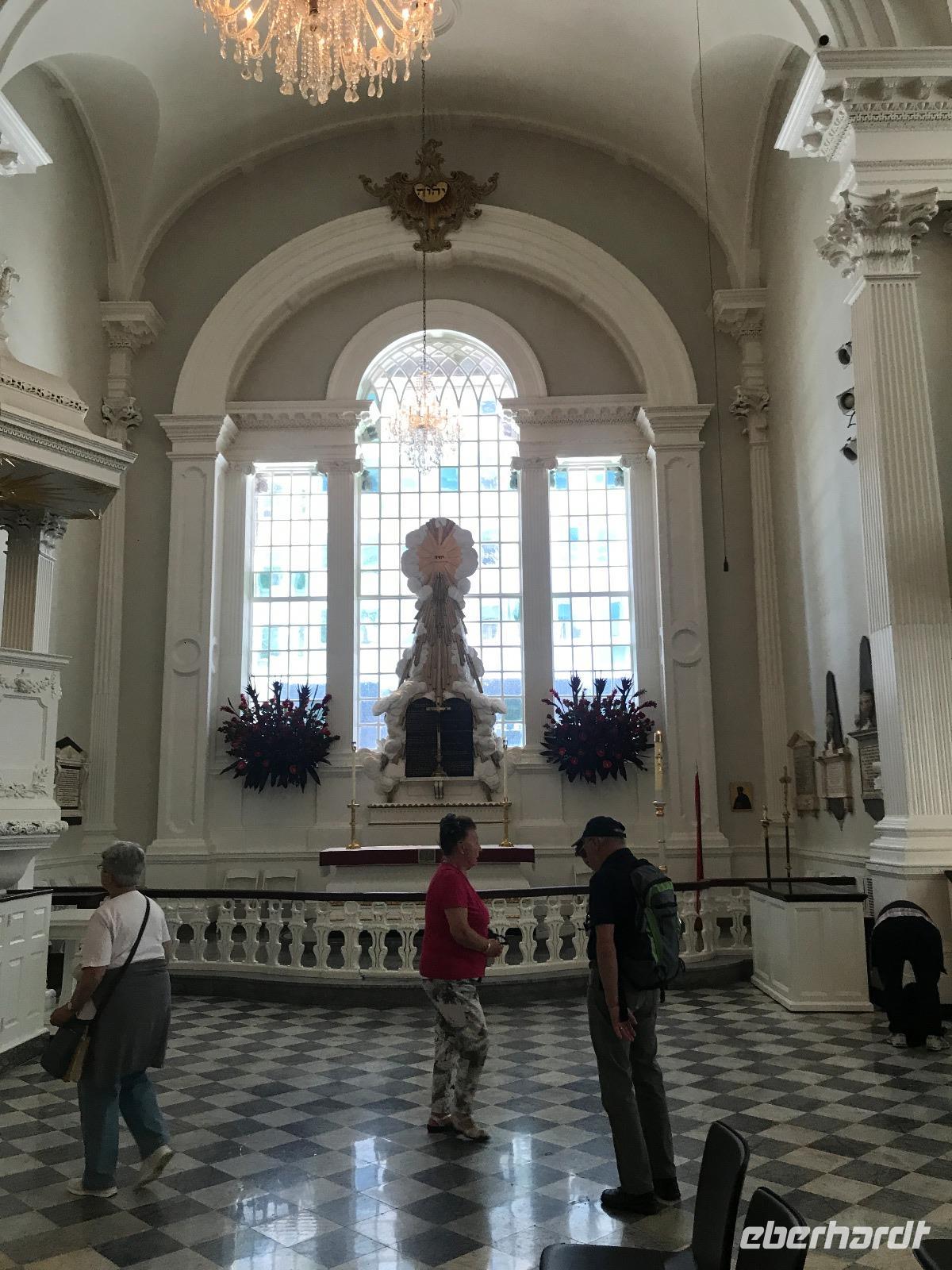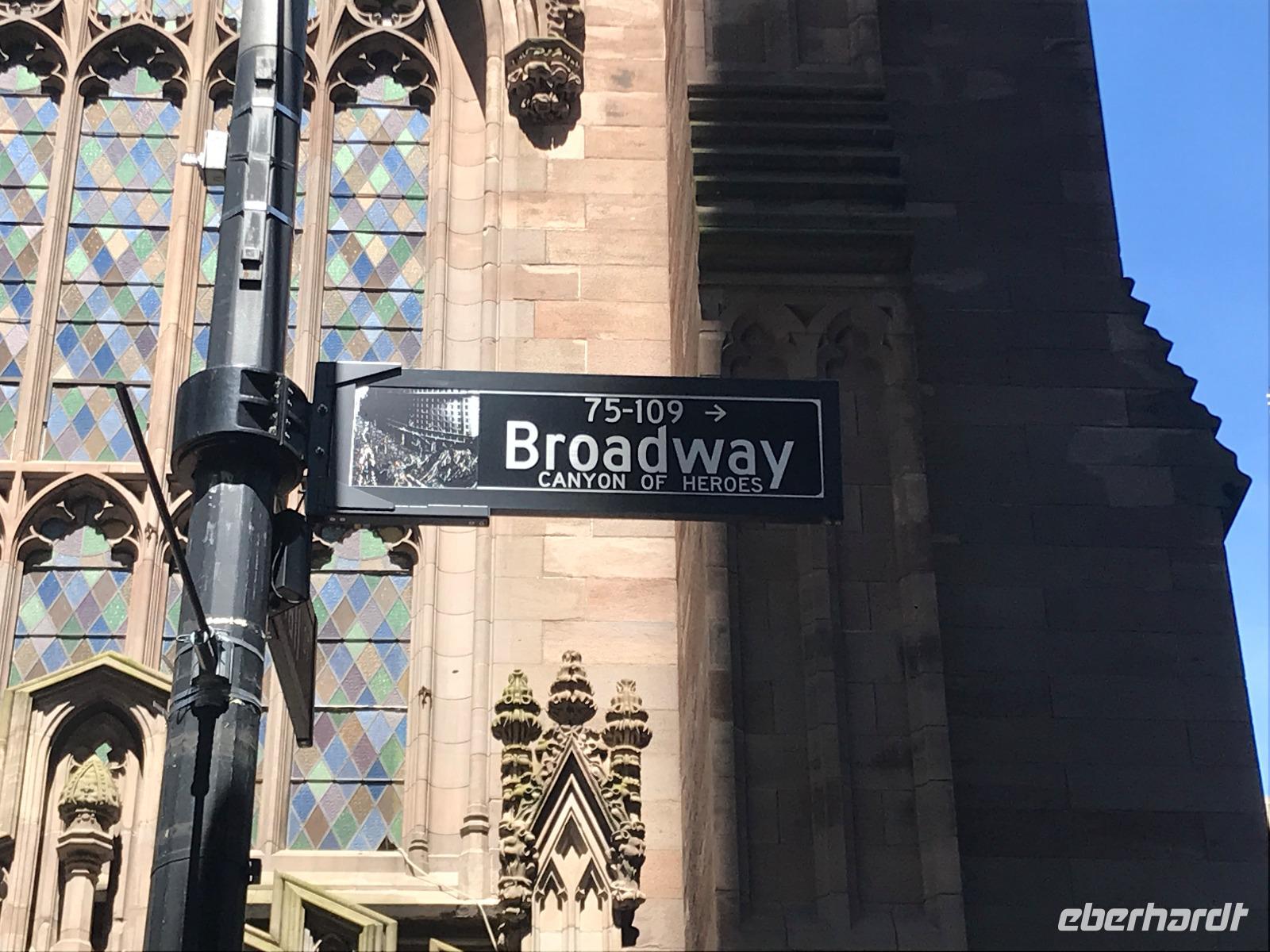 Unser Stadtrundgang führte uns weiter zur ältesten Kirche Manhattans, der St. Paul's Chapel, die wir besichtigten. Das kleine unscheinbare Gebäude aus dem 18. Jahrhundert versteckt sich am Broadway zwischen den Hochhäusern.