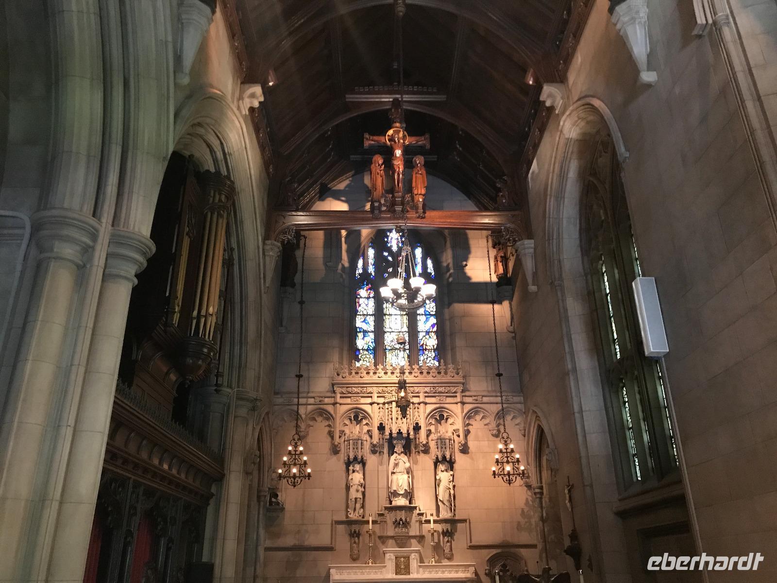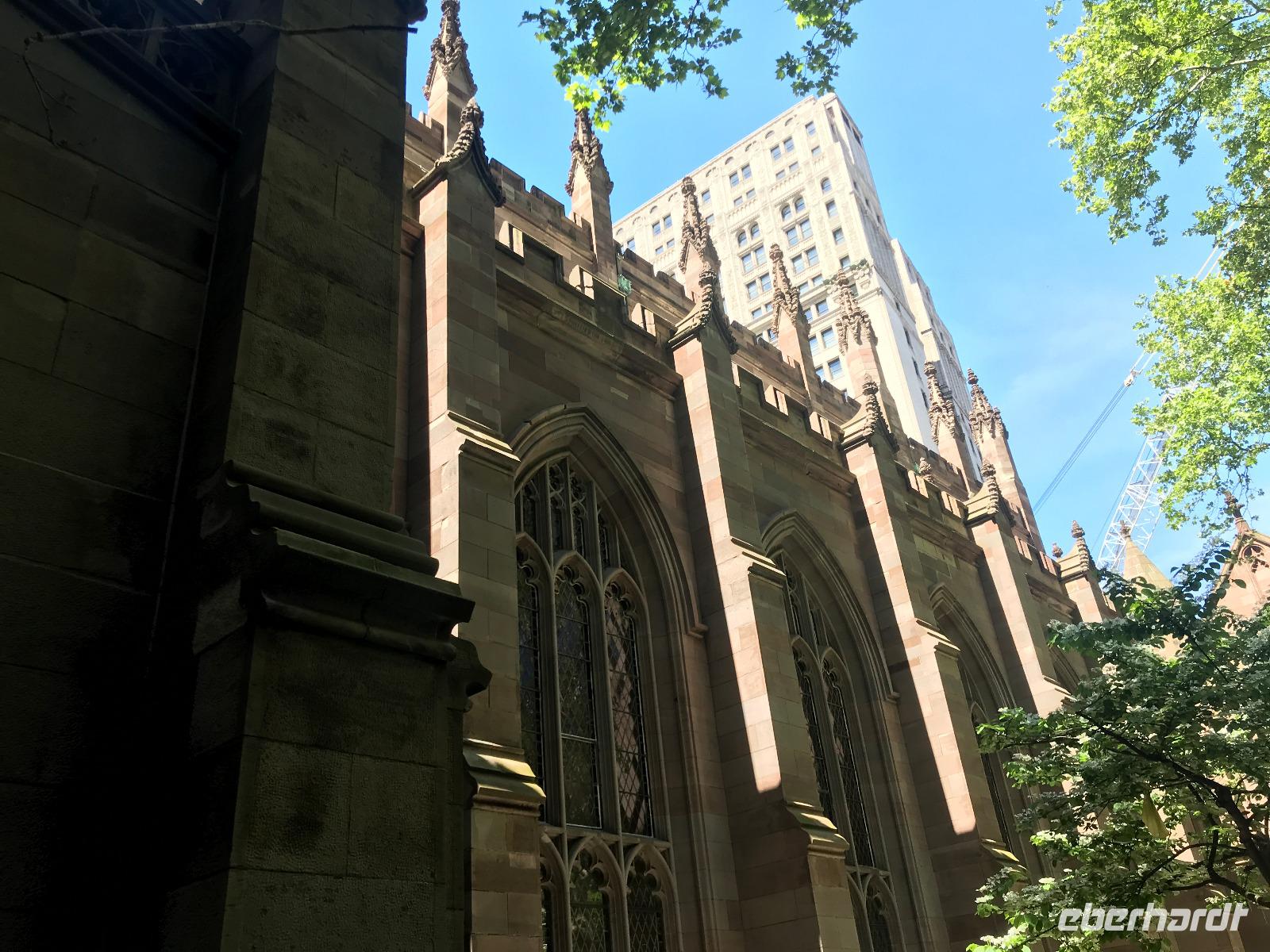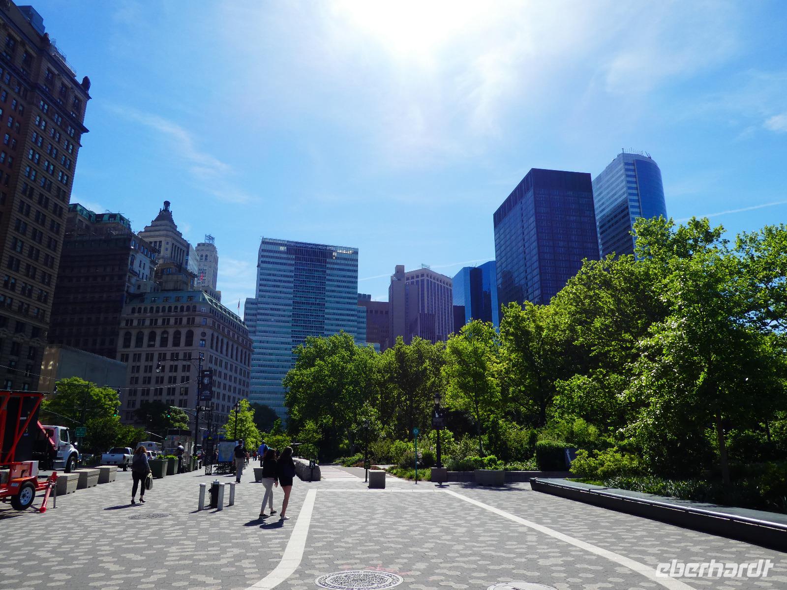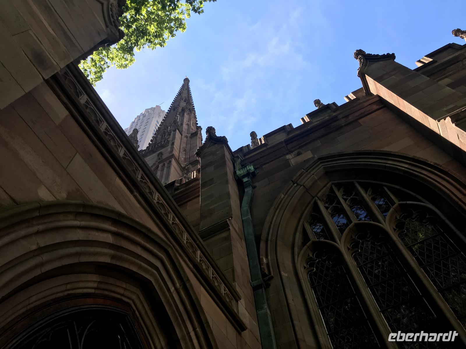 Unser Stadtrundgang führte uns weiter zur ältesten Kirche Manhattans, der St. Paul's Chapel, die wir besichtigten. Das kleine unscheinbare Gebäude aus dem 18. Jahrhundert versteckt sich am Broadway zwischen den Hochhäusern.