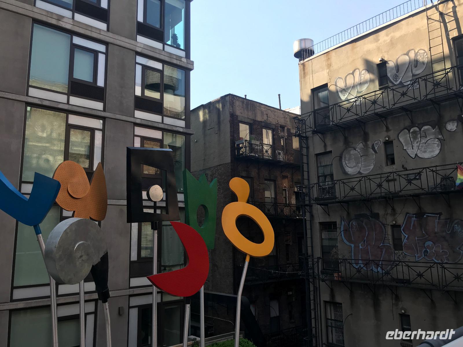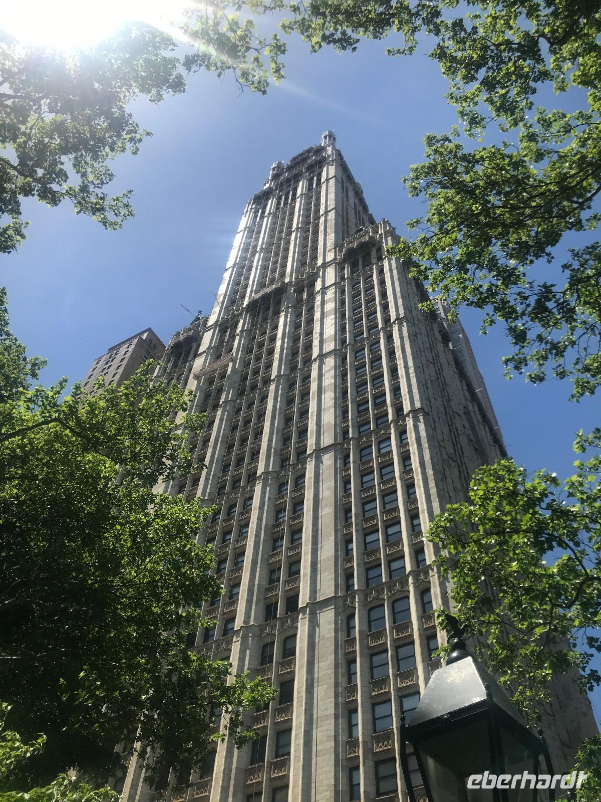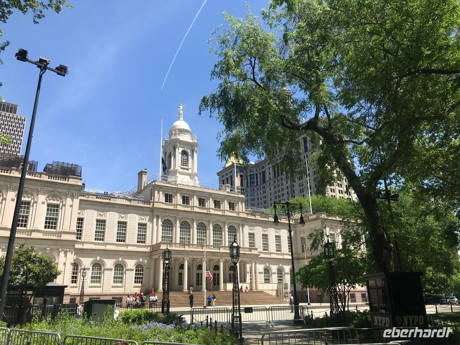 Weiter bewunderten wir das Woolworth Building, einst das höchste Gebäude der Welt (erbaut von 1913 bis 1930), bis es vom Bank of Manhattan Building abgelöst wurde. Auch das älteste noch genutzte Rathaus der USA, die New York City Hall, schauten wir uns an, bis uns der Bus abholte um zum Chelsea Markt fuhr. Dort verbrachten wir unsere Mittagspause. Der Chelsea Markt ist ein riesiger Food Court, der viele interessante internationale Essensstände bietet, unter anderem auch Deutsche Currywurst und Radeberger Bier.