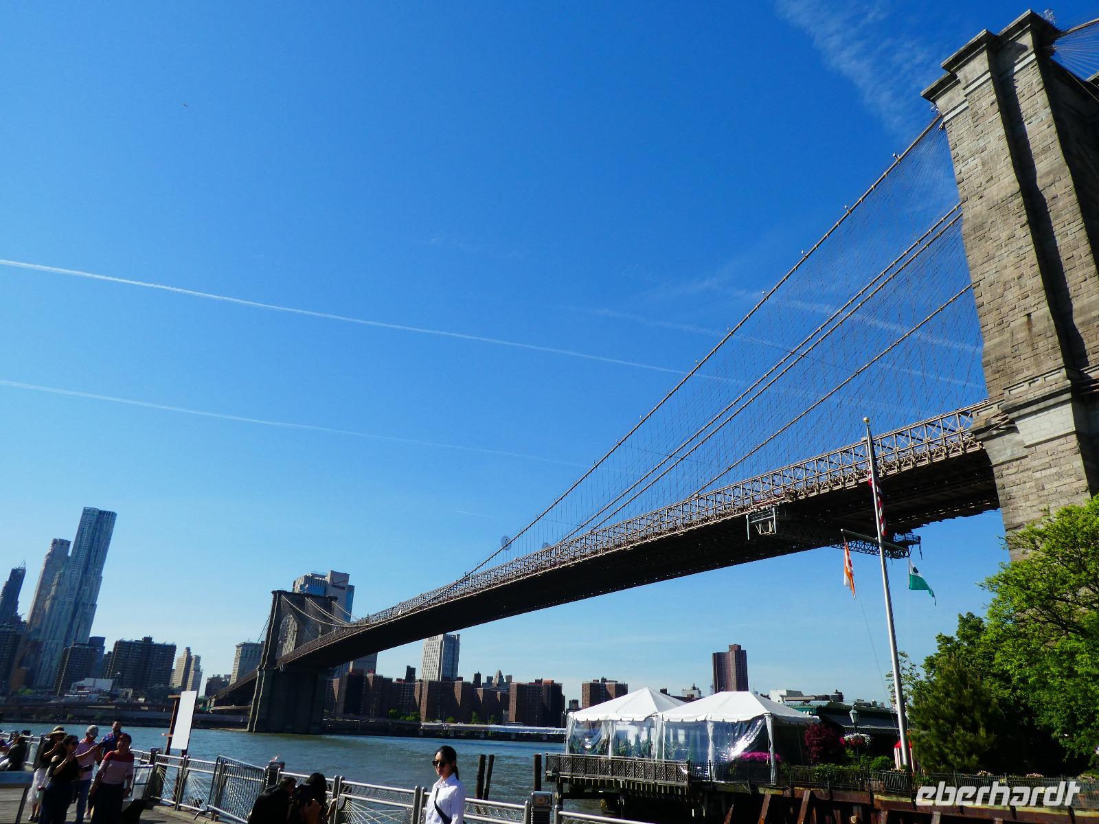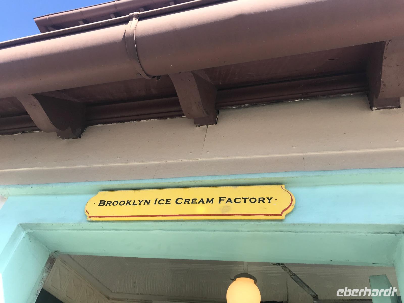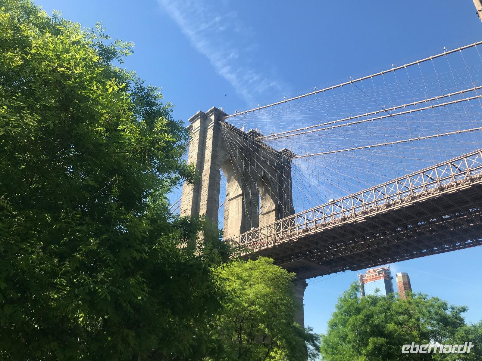 Nach einem kurzen, leisen Rundgang durch die New York Library, einer der größten Bibliotheken der Welt, wartete der Bus auf uns, um mit uns zum Brooklyn Bridge Park zu fahren. Bei herrlichen 26 Grad gab es eine kleine Eis-Erfrischung von der Brooklyn Ice Cream Factory, die angeblich das beste Eis New Yorks herstellen soll. Mit unserem Eis genossen wir den spektakulären Blick auf die Skyline Manhattans und die Brooklyn Bridge.