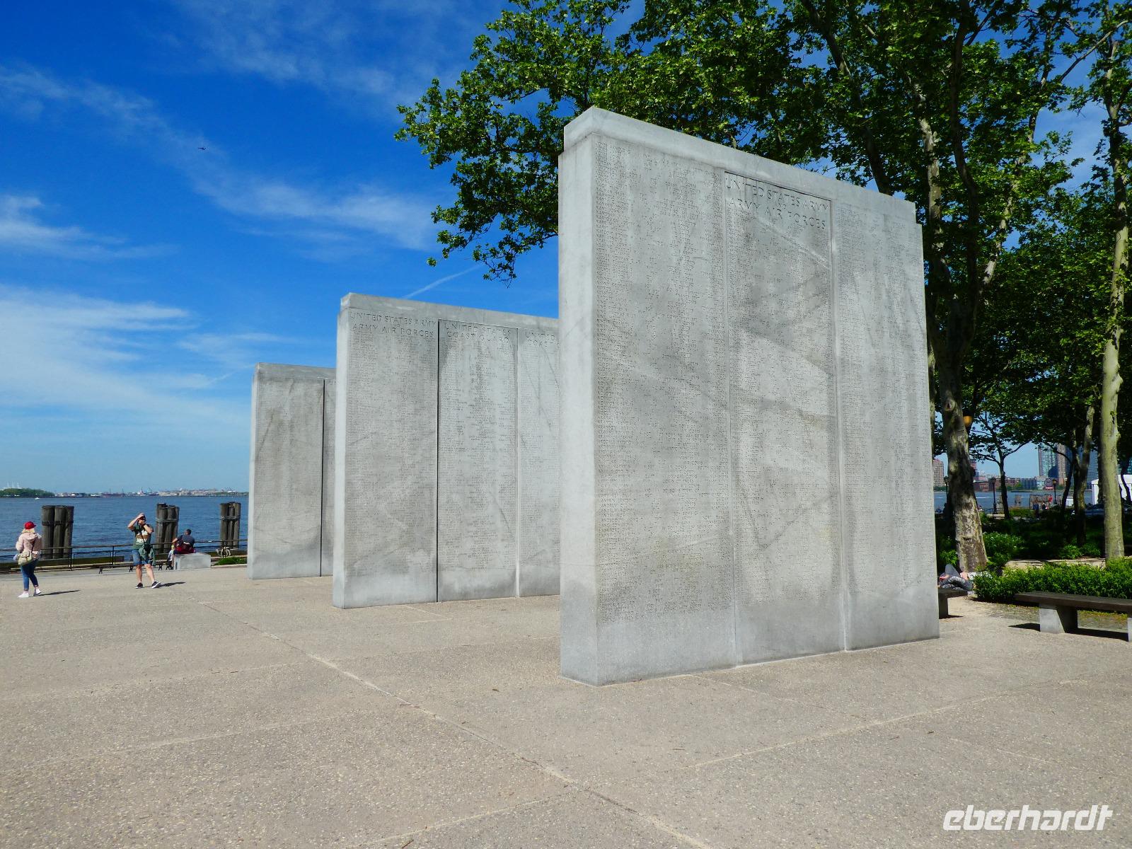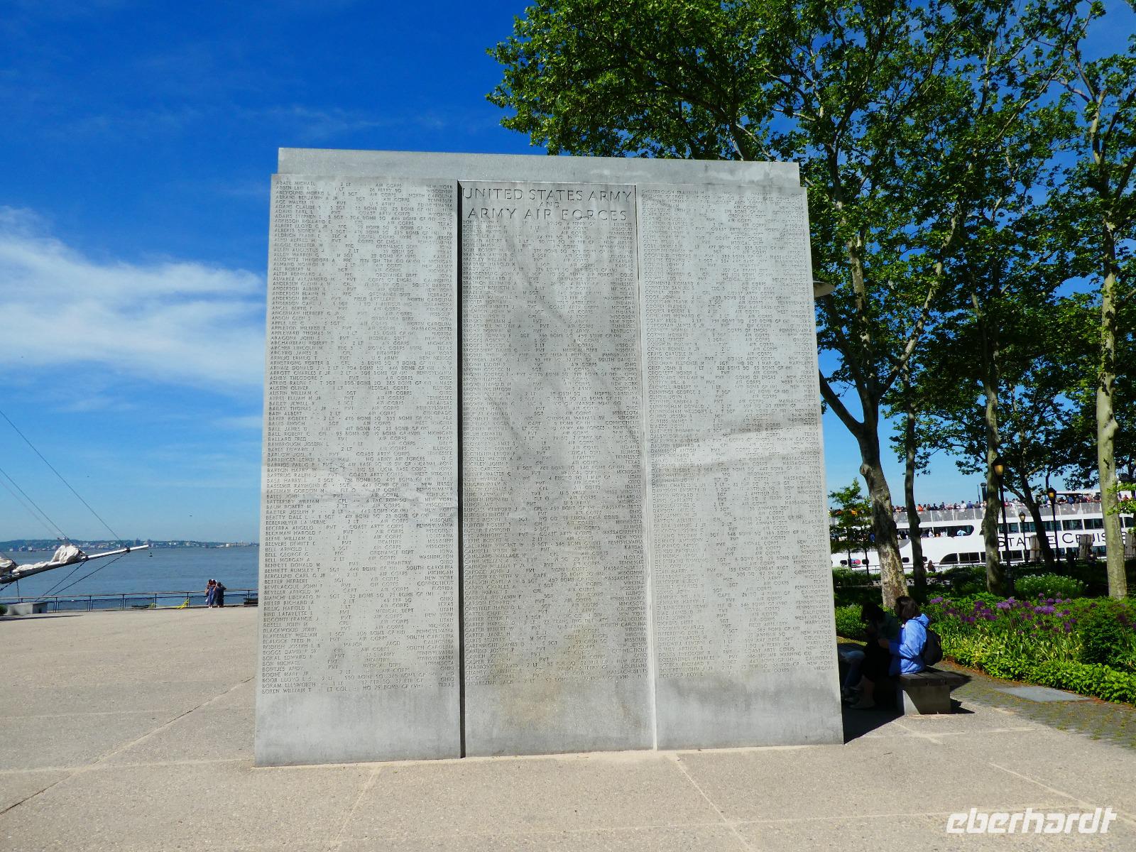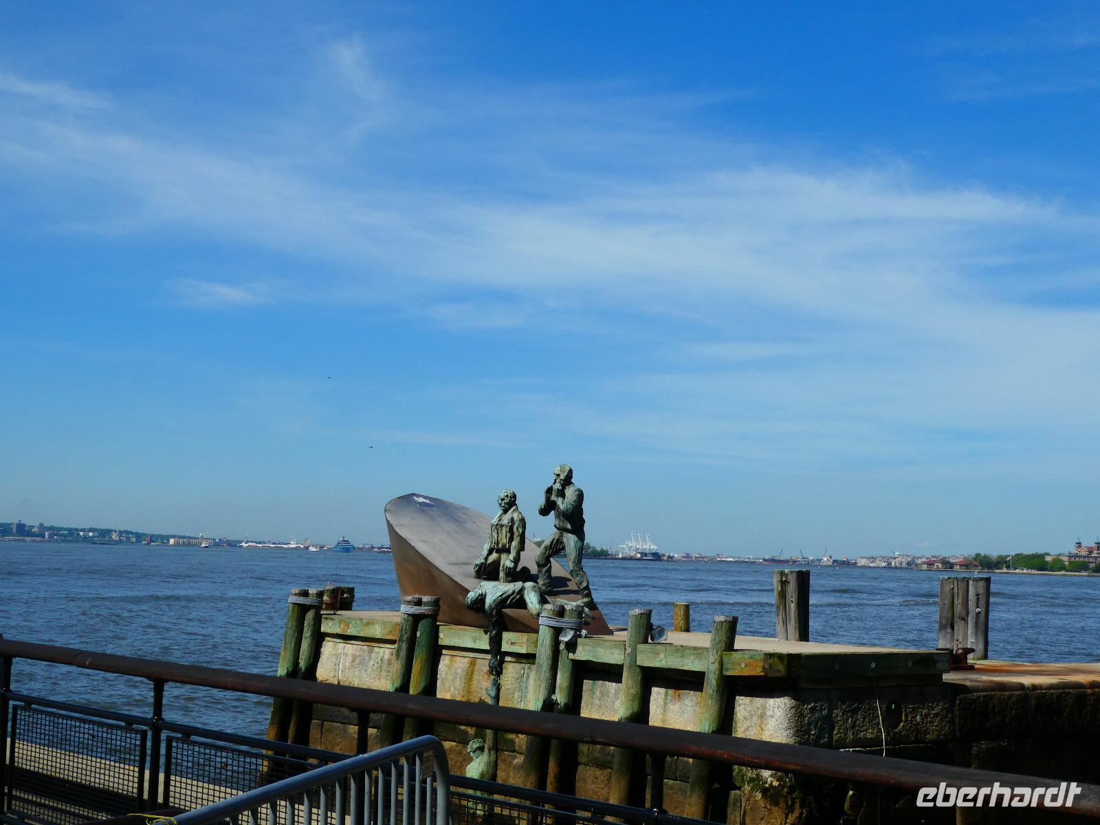 Halb acht startete der Tag mit einem typisch amerikanischen Frühstück - Eier, Speck und Toast. Kurt wartete bereits, um mit uns die Stadt zu erkunden. Mit dem Bus fuhren wir in den Süden Manhattans zum Battery Park. Dann ging es zu Fuß weiter, was in dieser Stadt wesentlich effektiver ist, wenn man einiges sehen möchte. Auch heute hatten wir wunderbares Wetter, was diesen Stadtrundgang perfekt machte. Wir spazierten entlang des Hudson-Ufers mit Blick auf die Freiheitsstatue und Ellis Island, vorbei am Amerikanischen Marine Memorial und weiter zum berühmten Wallstreet-Bullen, der mittlerweile Gesellschaft von einer kleinen eiserenen Lady bekommen hat. Eigentlich sollte sie nur kurz dem Bullen die Stirn bieten, als Geste zum internationalen Frauentag am 8. März. Aber die Genehmigungen wurden immer weiter verlängert, so dass sie wohl noch eine Weile da stehen wird. Wir gingen weiter zur Wallstreet und zum George Washington-Denkmal und lauschten gespannt Kurts Erzählungen.