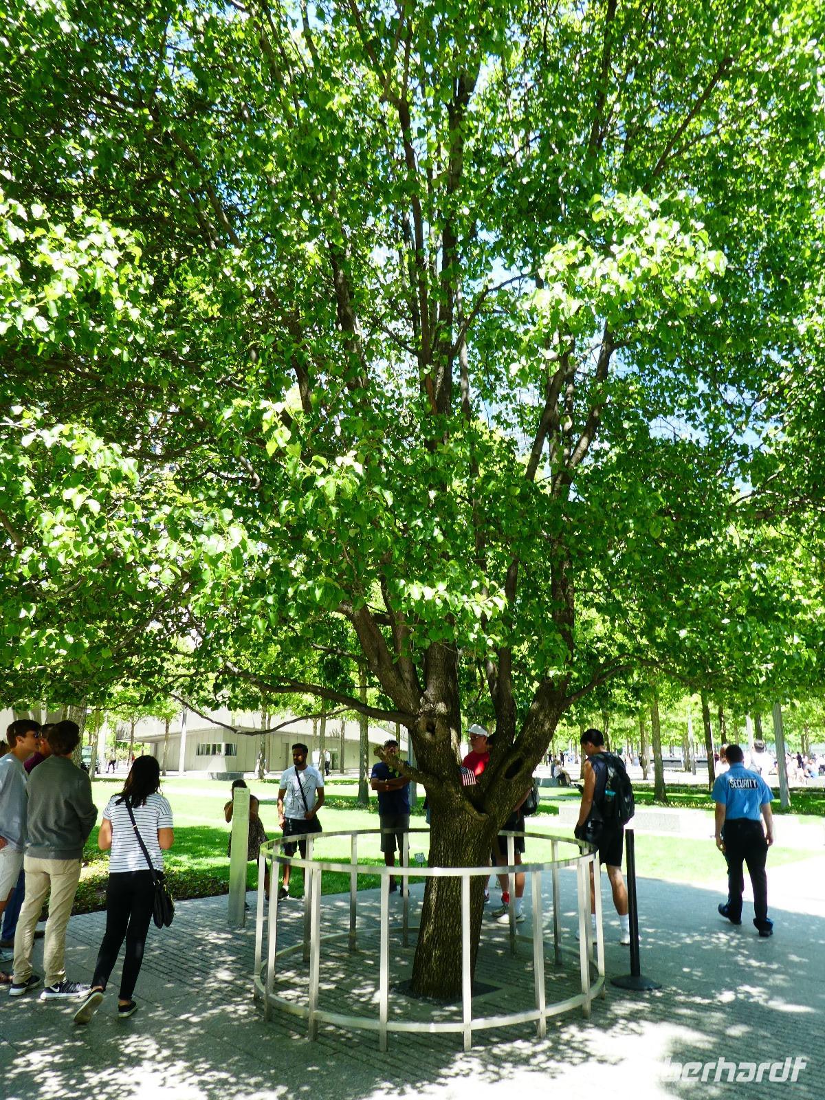 Am 9/11 Memorial Denkmal hatten wir Zeit, um uns die Becken und den Survivor Tree anzuschauen - er ist der einzige Baum, der den Anschlag auf das WTC überstand.