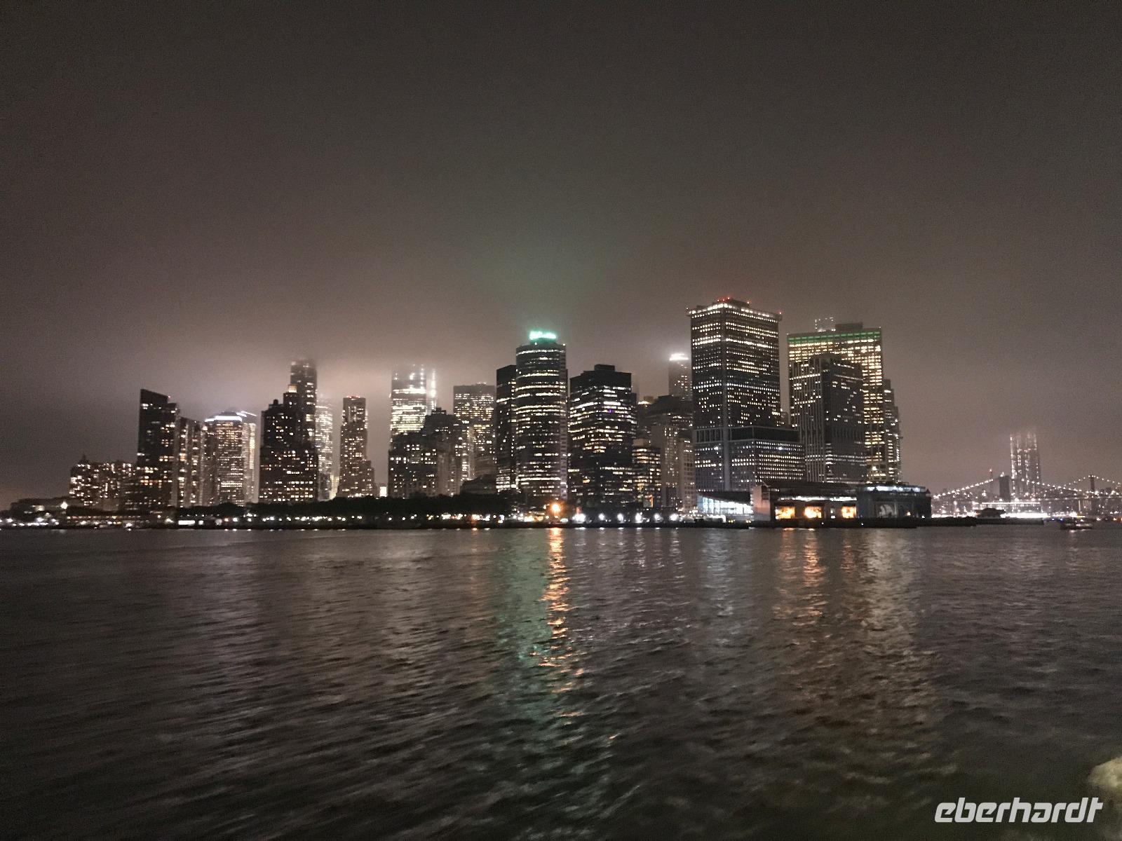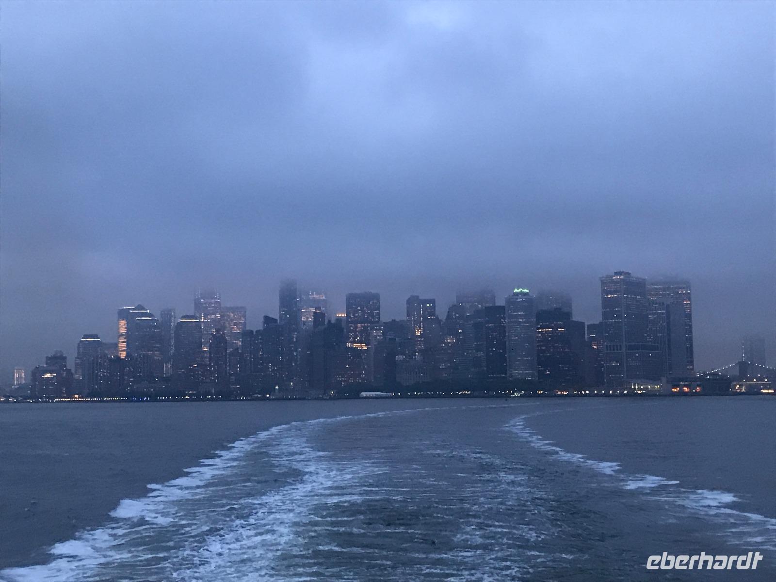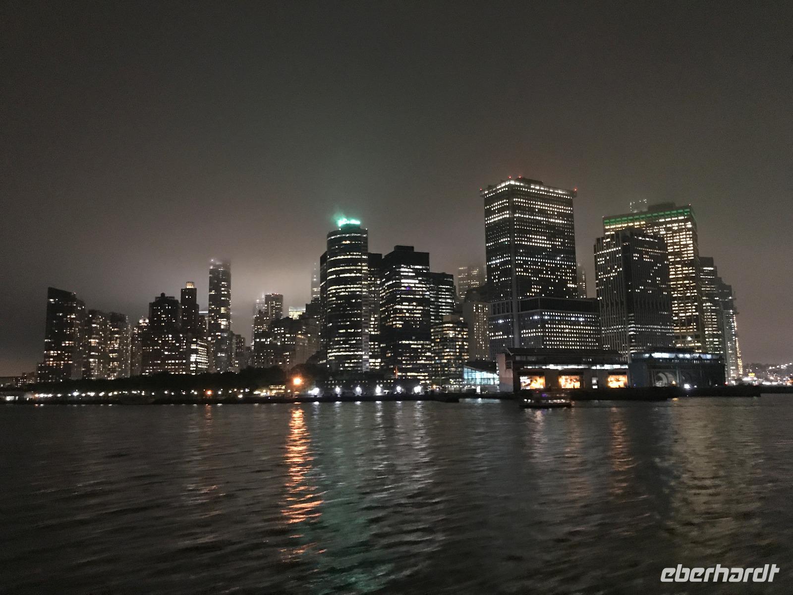 Für den Nachmittag sagte uns der Wetterbericht Regen voraus, weshalb wir kurzerhand unser Programm änderten und mit der U-Bahn zuerst zur Highstreet fuhren, um nicht bei Regen die Brooklyn Bridge zu überqueren. Trotz einiger Regentropfen genossen wir den atemberaubenden Blick auf die Brooklyn Bridge und die Skyline. Nach unzähligen Fotos erreichten wir Manhattan und fuhren mit der U-Bahn zum Central Park. Leider wurde das Wetter nicht besser und so beschlossen einige Gäste, den Columbus Circus mit seinen Geschäften zu besuchen. Andere nutzen das schlechte Wetter, um dem legendären MOMA einen Besuch abzustatten. Ich spazierte mit den restlichen Gästen die 5th Avenue entlang, vorbei am Trump Tower, der St.Patrick's Cathedral und unzähligen Designerläden. Wir legten eine kleine Mittagspause ein, bevor es zurück zum Hotel ging. Da für diesen Abend kein Abendessen geplant war und einige Gäste Karten für den Broadway bzw. der Metropolitan Opera hatten, verabredeten wir uns mit einigen Reisegästen, um am Abend mit der Staten Island Ferry zu fahren und ein wunderschönes Fotomotiv der Skyline zu erhaschen. In der Dämmerung fuhren wir also mit der U-Bahn zum Batterypark, nahmen die kostenlose Staten Island Ferry und kamen aus dem Fotografieren nicht mehr heraus. In Staten Island angekommen, wechselten wir die Fähre und fuhren zurück nach Manhattan: Vor uns die wunderbare Kulisse der beleuchteten Freiheitstatue und Manhattans Skyline bei Nacht. Beeindruckt von dieser schönen Aussicht fuhren wir zurück ins Hotel und freuten uns aus den nächsten Tag.