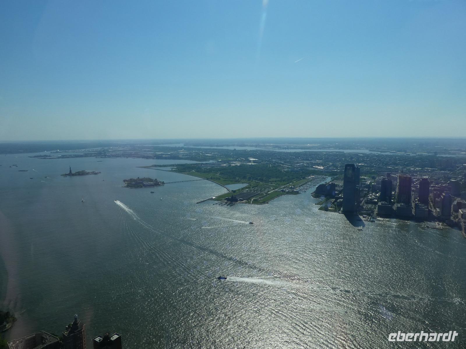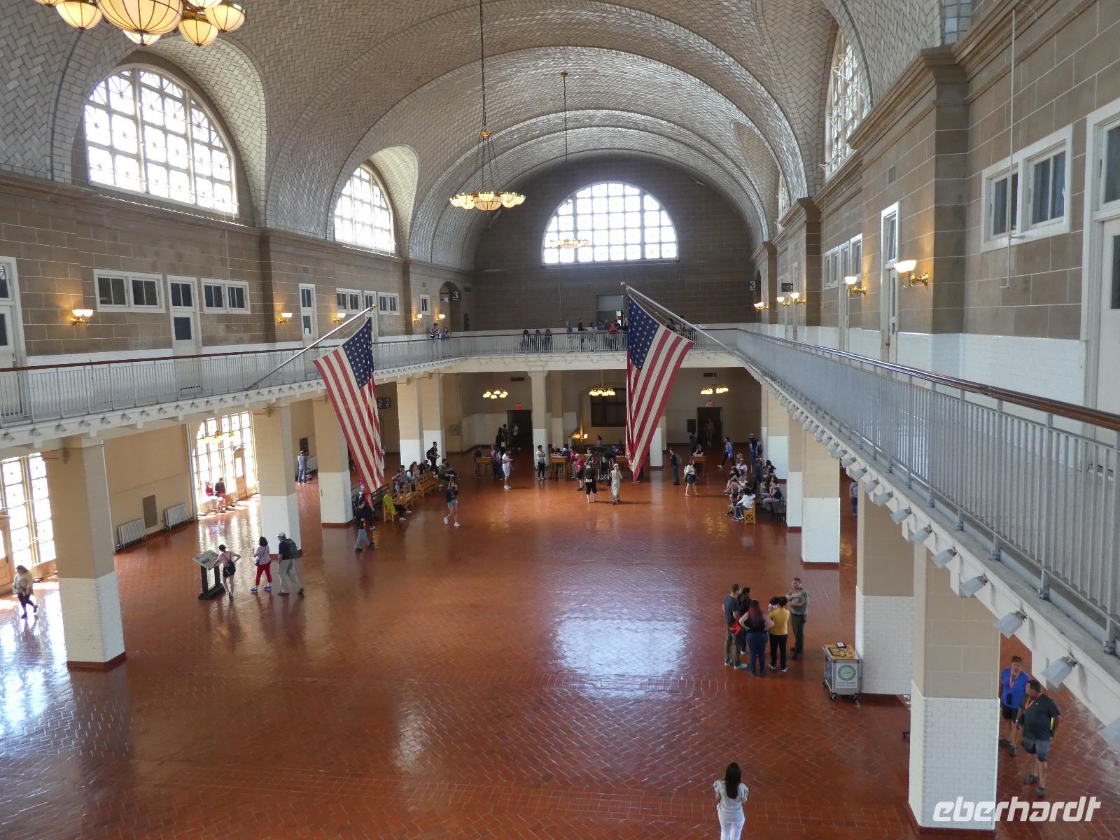 Heute meinte es das Wetter wieder gut mit uns. Bei strahlendem Sonnenschein und 27 Grad fuhren wir nach dem Frühstück wieder zum Battery Park, um von da die Fähre zur Freiheitsstatue zu nehmen. Dort angekommen, hatten wir genügend Zeit, um die Eiserne Lady von innen und auch von außen zu bewundern. Weiter ging es mit der Fähre nach Ellis Island, dem Einwanderer-Museum. Von hier aus versuchten zahlreiche Ankömmlinge Anfang des 20. Jahrhunderts, ihren amerikanischen Traum zu verwirklichen. Wir besichtigen die Eingangshalle, in der alle Einwanderer registriert wurden. Zum Mittag gab es typisch amerikanischen Burger mit Wahnsinnsblick auf die Skyline Manhattans. Zurück in Manhattan fuhren wir zum Hotel.